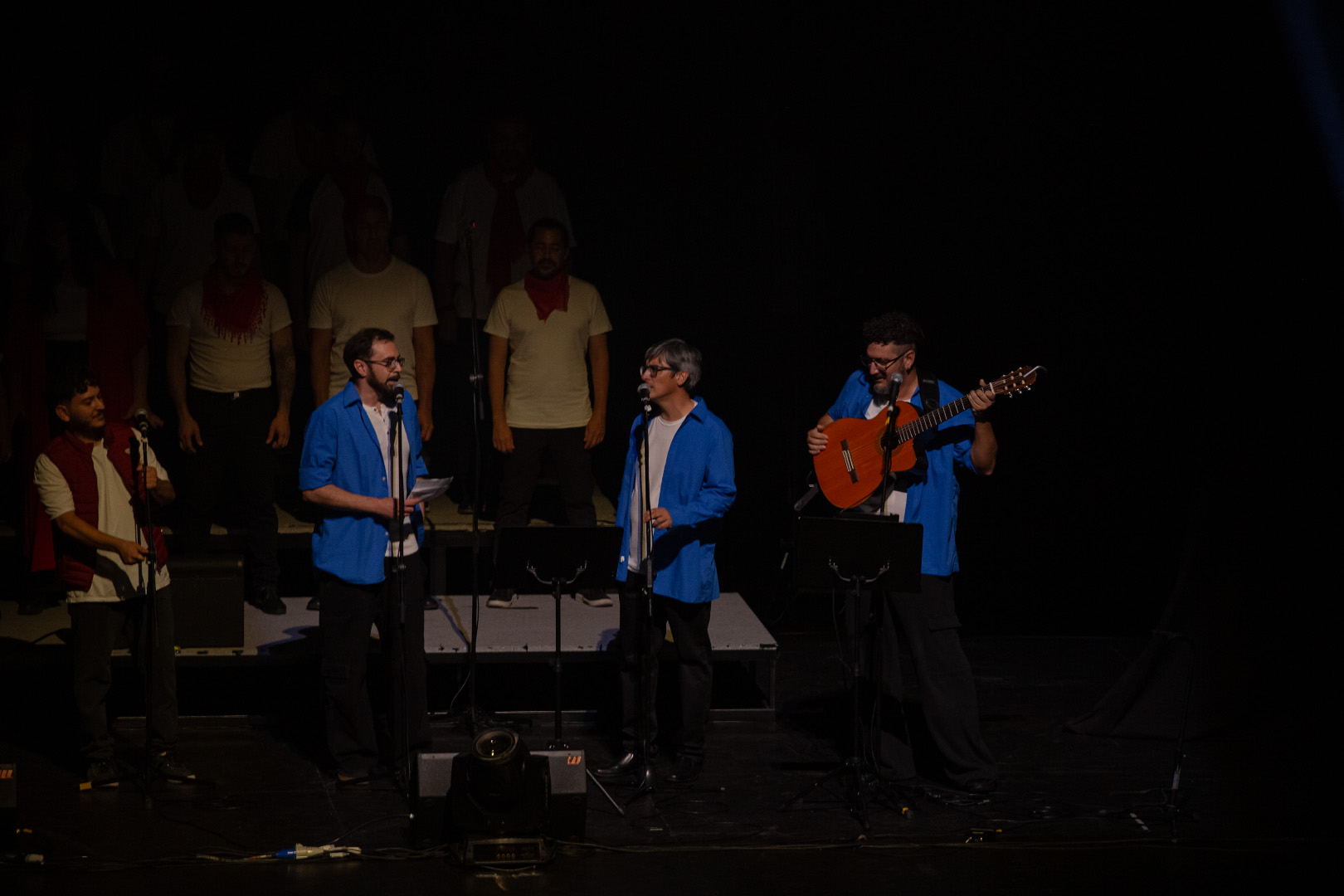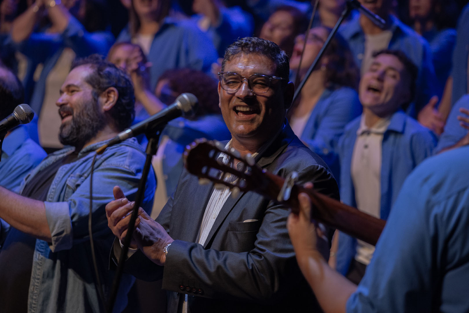 El show abrió con ‘Trinchera’, interpretada por las potentes cuerdas de Rocío, una de las voces destacadas del Coro ULP. Luego, su director, Alejandro Moretti, compartió con el público el detrás de escena del grupo: una esencia que combina emociones, talento, fuerza y humanidad, y que arrasa en el escenario como una verdadera marea. Entre risas y complicidad, los integrantes presentaron su versión de ‘La guerrilla de la Concordia’, uno de los sellos sonoros de la agrupación.