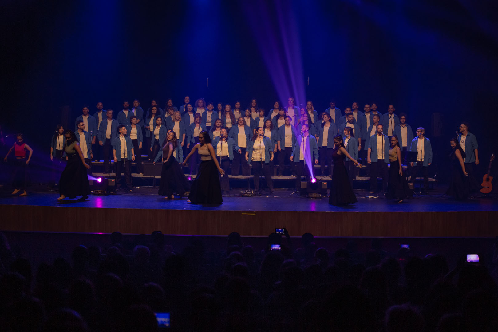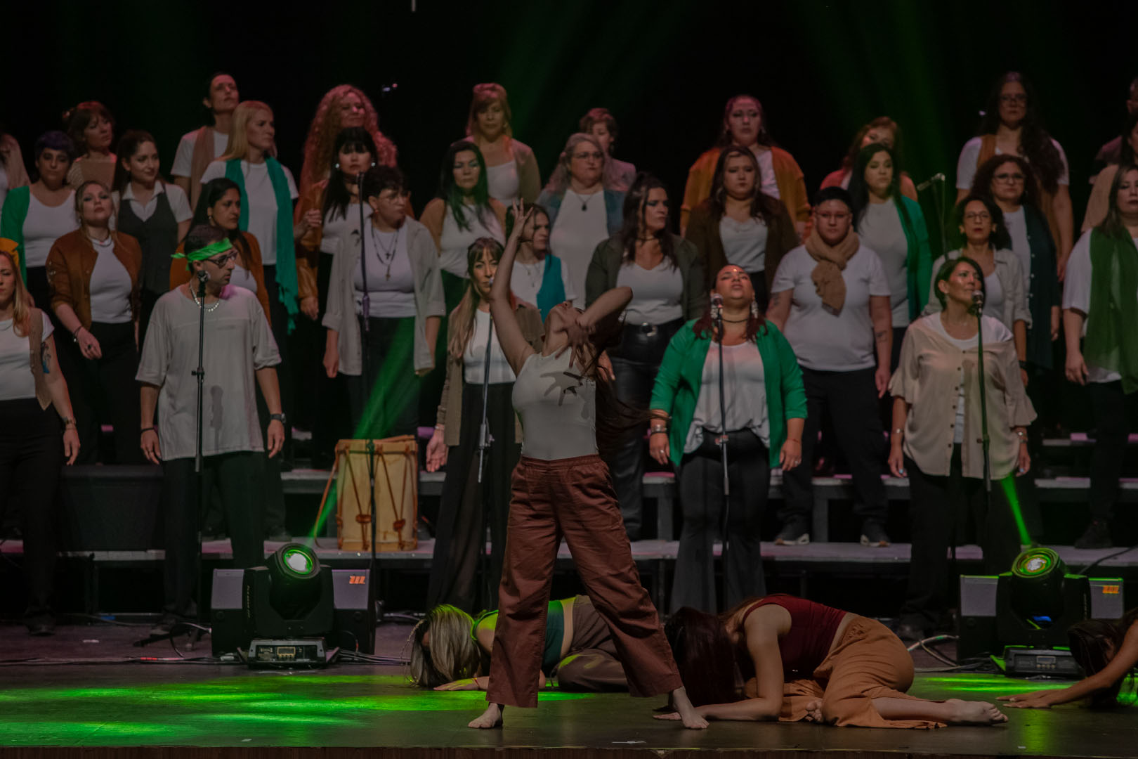 El coro de la Universidad de La Punta se presentó en el imponente escenario del espacio cultural. Con bailarines y murgas invitadas, participaron más de 100 artistas.