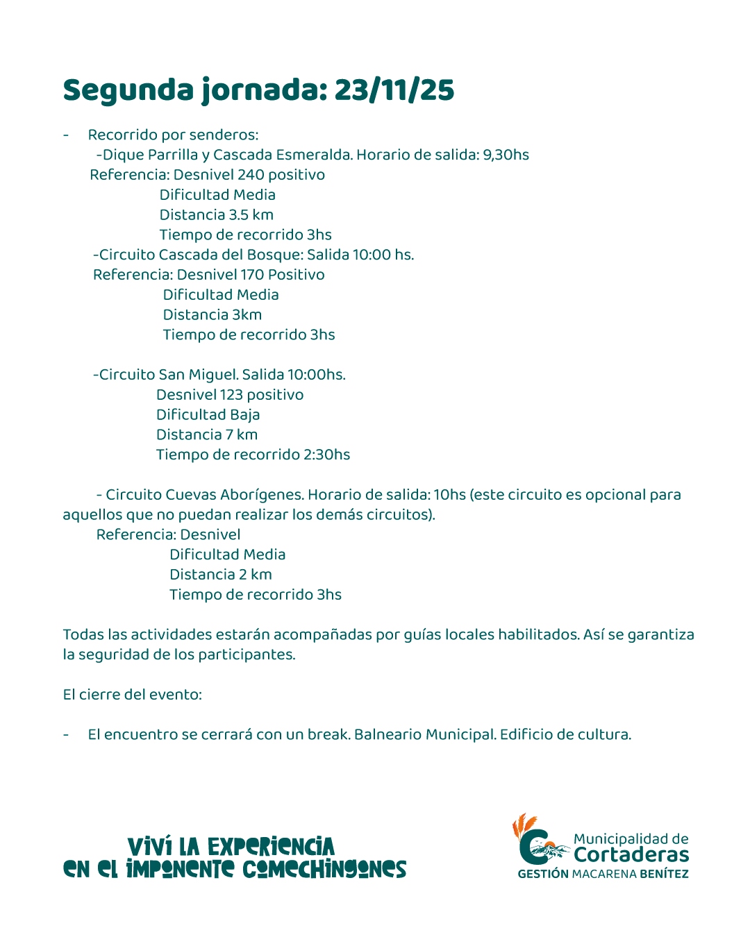 El evento es organizado por la secretaría de Turismo y Cultura y cuenta con la participación de guías habilitados de la provincia de San Luis, emprendedores locales y autoridades municipales, garantizando un encuentro seguro, enriquecedor y orientado a la promoción del patrimonio natural de Cortaderas.