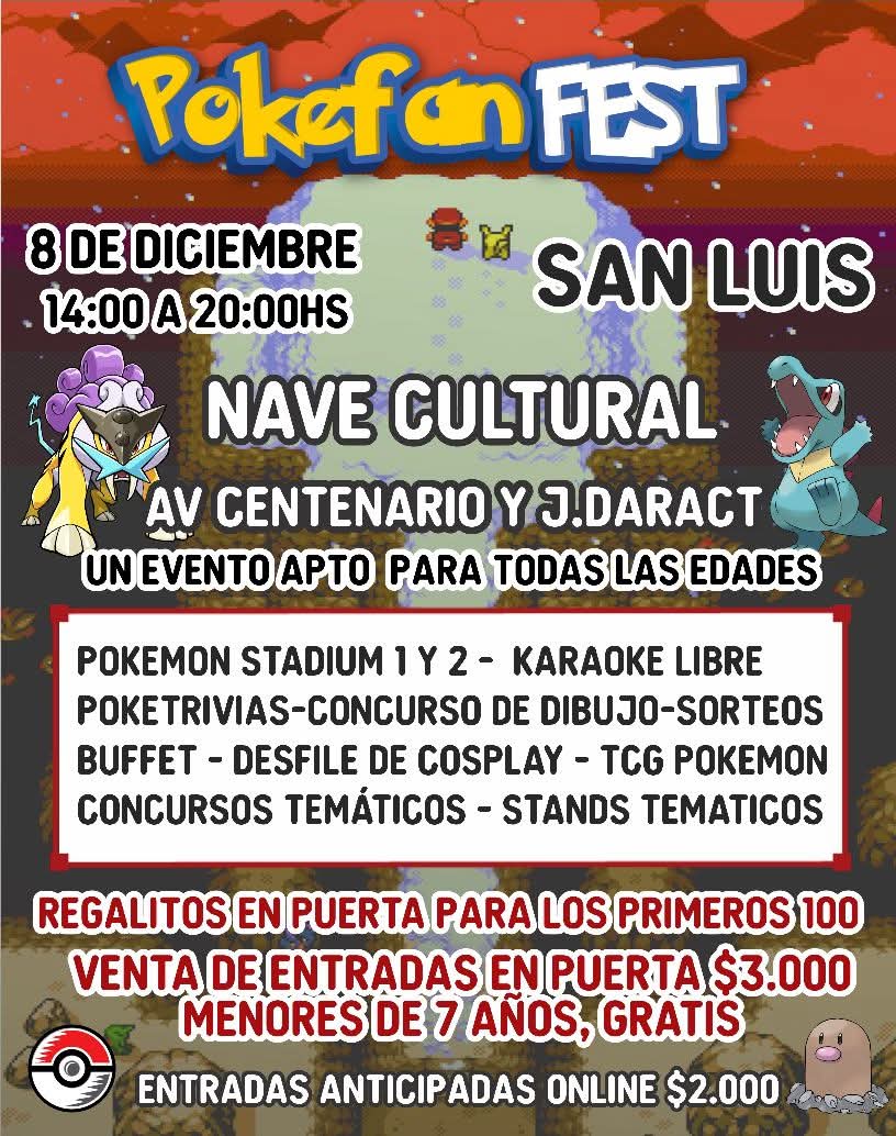 La ciudad capital será escenario de una jornada única para fanáticos de todas las generaciones: la Pokefan Fest, un evento dedicado al universo Pokémon que se realizará el 8 de diciembre, de 14:00 a 20:00, en la Nave Cultural, ubicada en avenida Centenario y Justo Daract.