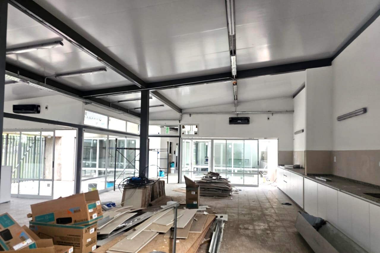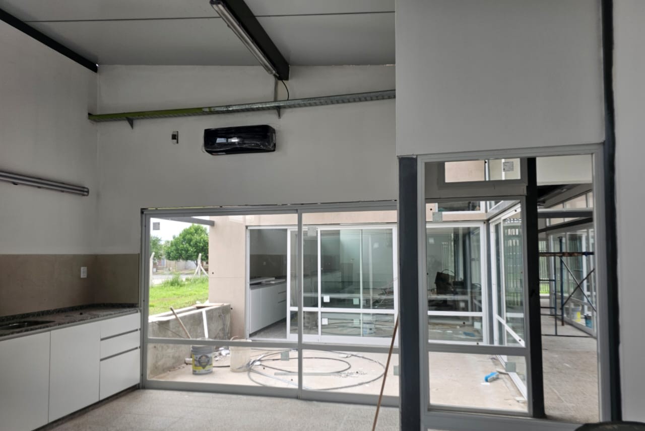 En el interior del establecimiento, la instalación de muebles de cocina y mesadas está prácticamente finalizada. Tanto las paredes como los cielorrasos ya están terminados y pintados. Las instalaciones eléctricas están ejecutadas y las luminarias LED colocadas. También se montaron los equipos de aire acondicionado y las carpinterías interiores de aluminio y vidrio, incluyendo puertas corredizas y ventanas hacia el patio interno.