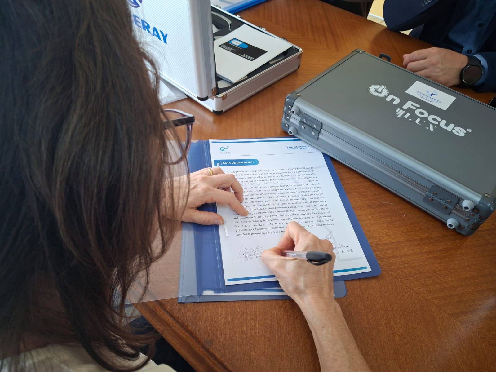 La entrega se formalizó en el despacho de la ministra de Salud, Teresa Nigra. En representación de la Asociación de Anestesiología San Luis participaron su presidenta, Natalia Sosa; Sandra Arroyo, de Relaciones Humanas y Asistencia Institucional; Esteban Gómez, secretario de Hacienda; y demás integrantes de la entidad.