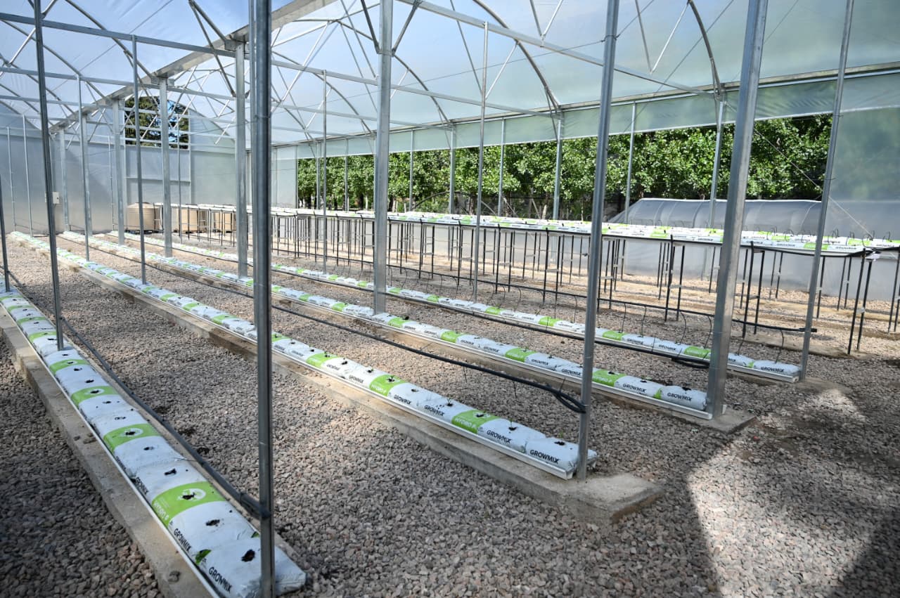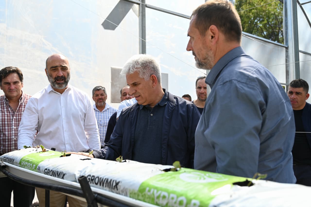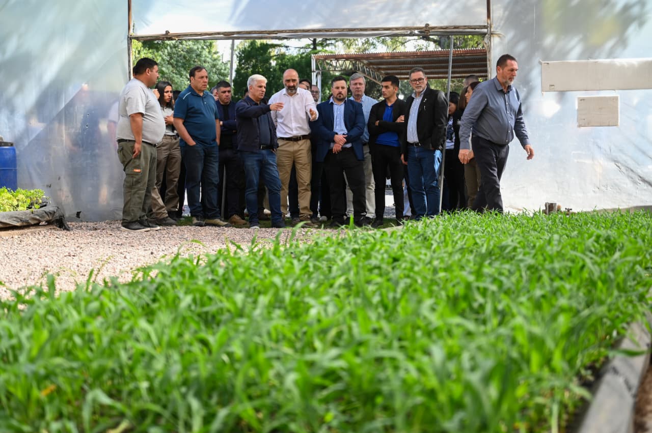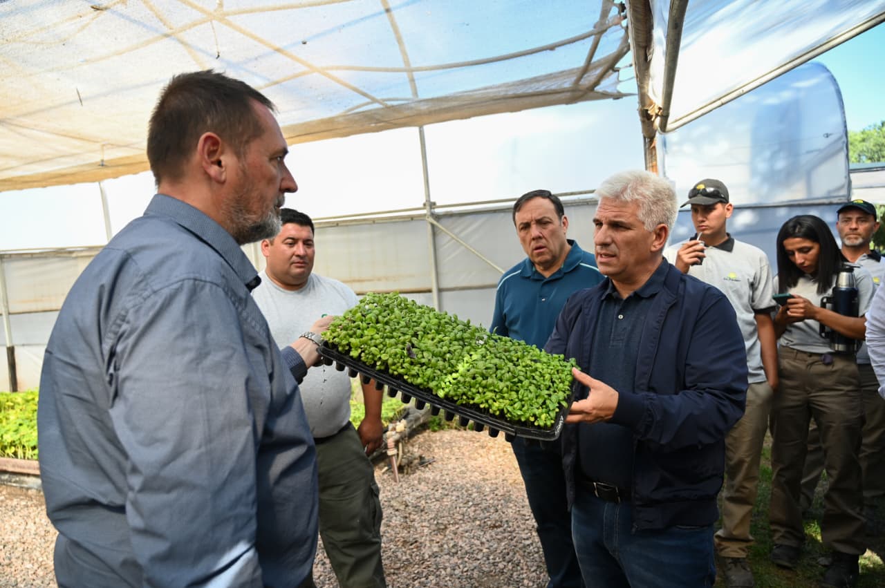 Acompañado de las autoridades, el Gobernador recorrió las instalaciones. Durante la visita, se observaron las cámaras de gestación, los invernaderos de maduración y rustificación, el área hidropónica, el invernadero de plantas de interior, la sala de enmacetado y el sombráculo con maya antigranizo para frutales, donde se expuso la producción a campo abierto.
