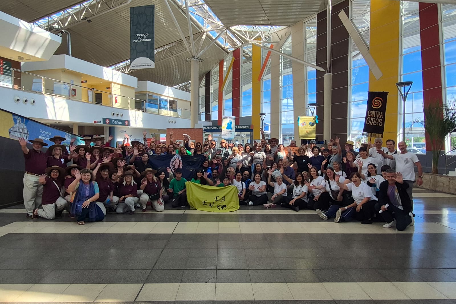 El viernes, la energía cambió de la mano del folklore. La explanada principal de la EDIRO se vistió de fiesta y alegría con una colorida intervención de baile a cargo de los participantes del Encuentro Nacional de Folklore en San Luis, organizado por la Asociación de Raíces Puntanas. El improvisado escenario, enmarcado por los comercios, las boleterías y el movimiento de pasajeros que iniciaban el fin de semana largo, se llenó de vida. Por más de una hora, los bailarines contagiaron el ritmo cuyano, congregando a más de 200 personas que no solo disfrutaron del espectáculo, sino que también se animaron a bailar.