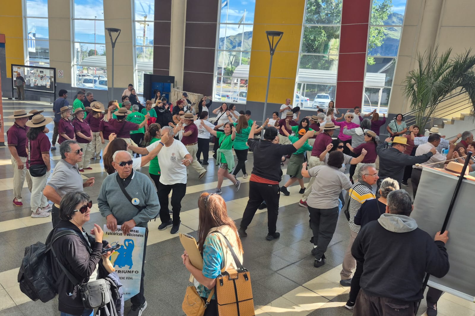 El viernes, la energía cambió de la mano del folklore. La explanada principal de la EDIRO se vistió de fiesta y alegría con una colorida intervención de baile a cargo de los participantes del Encuentro Nacional de Folklore en San Luis, organizado por la Asociación de Raíces Puntanas. El improvisado escenario, enmarcado por los comercios, las boleterías y el movimiento de pasajeros que iniciaban el fin de semana largo, se llenó de vida. Por más de una hora, los bailarines contagiaron el ritmo cuyano, congregando a más de 200 personas que no solo disfrutaron del espectáculo, sino que también se animaron a bailar.