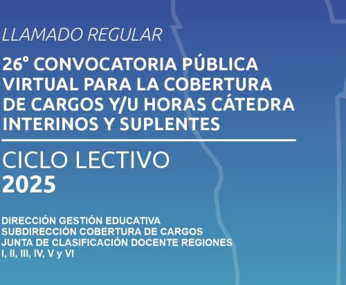 Publicaron la 26° convocatoria para la cobertura de cargos docentes y horas cátedra