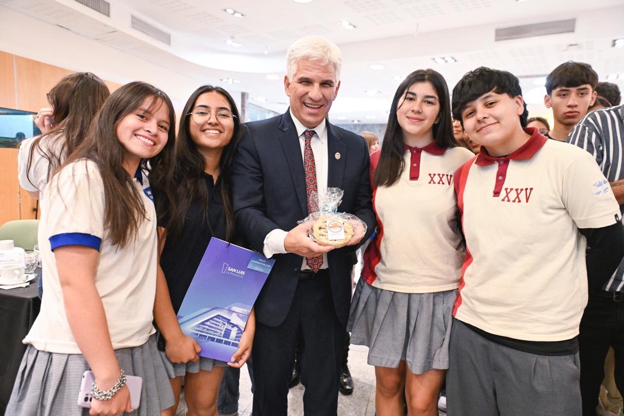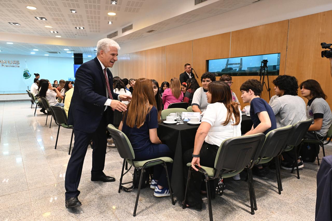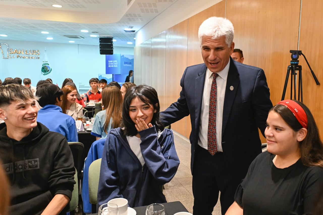 En un desayuno en Casa de Gobierno, el Mandatario provincial destacó el valor formativo y comunitario del cooperativismo escolar y anunció un aporte en especies para potenciar los proyectos productivos. Participaron estudiantes y docentes de las 20 cooperativas creadas en San Luis, Juana Koslay, Villa Mercedes, La Punta, Cortaderas, Tilisarao, Merlo y Villa de la Quebrada.