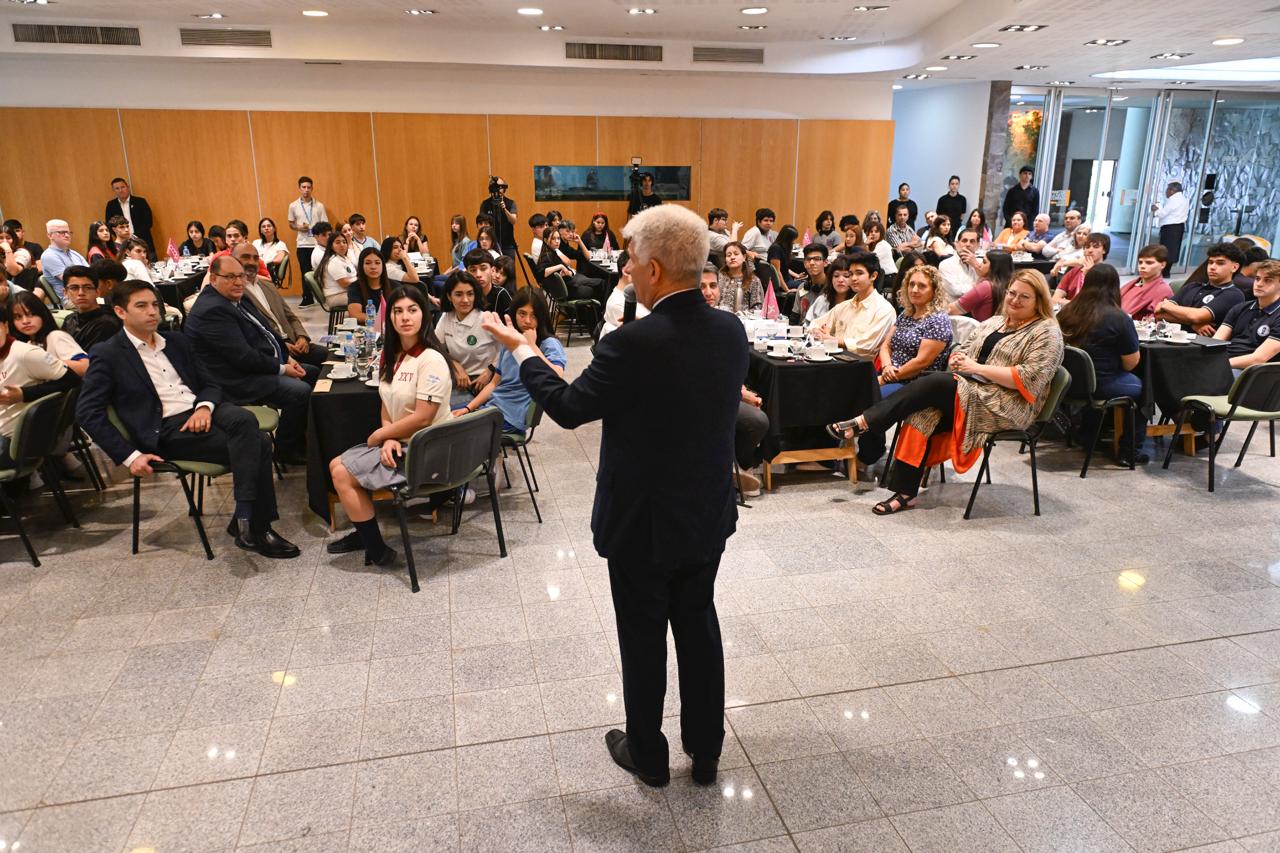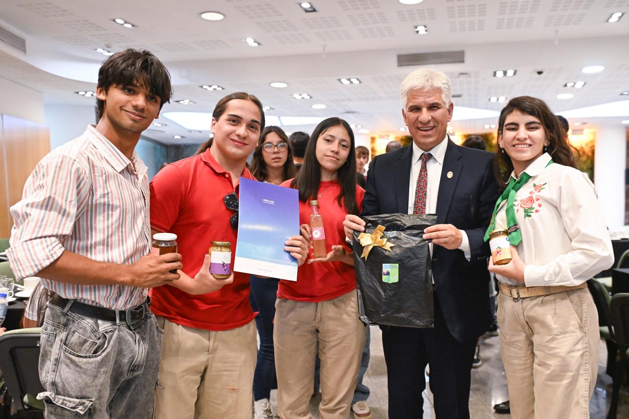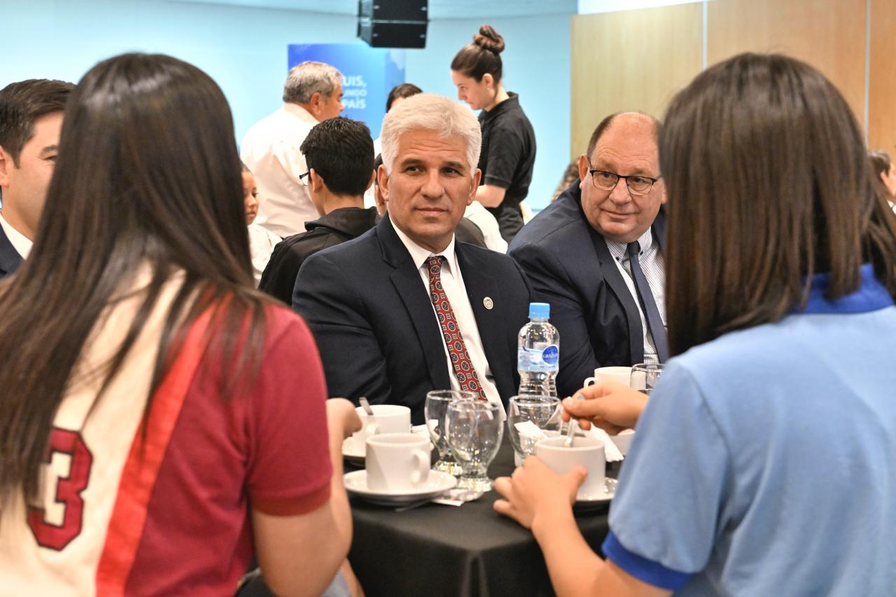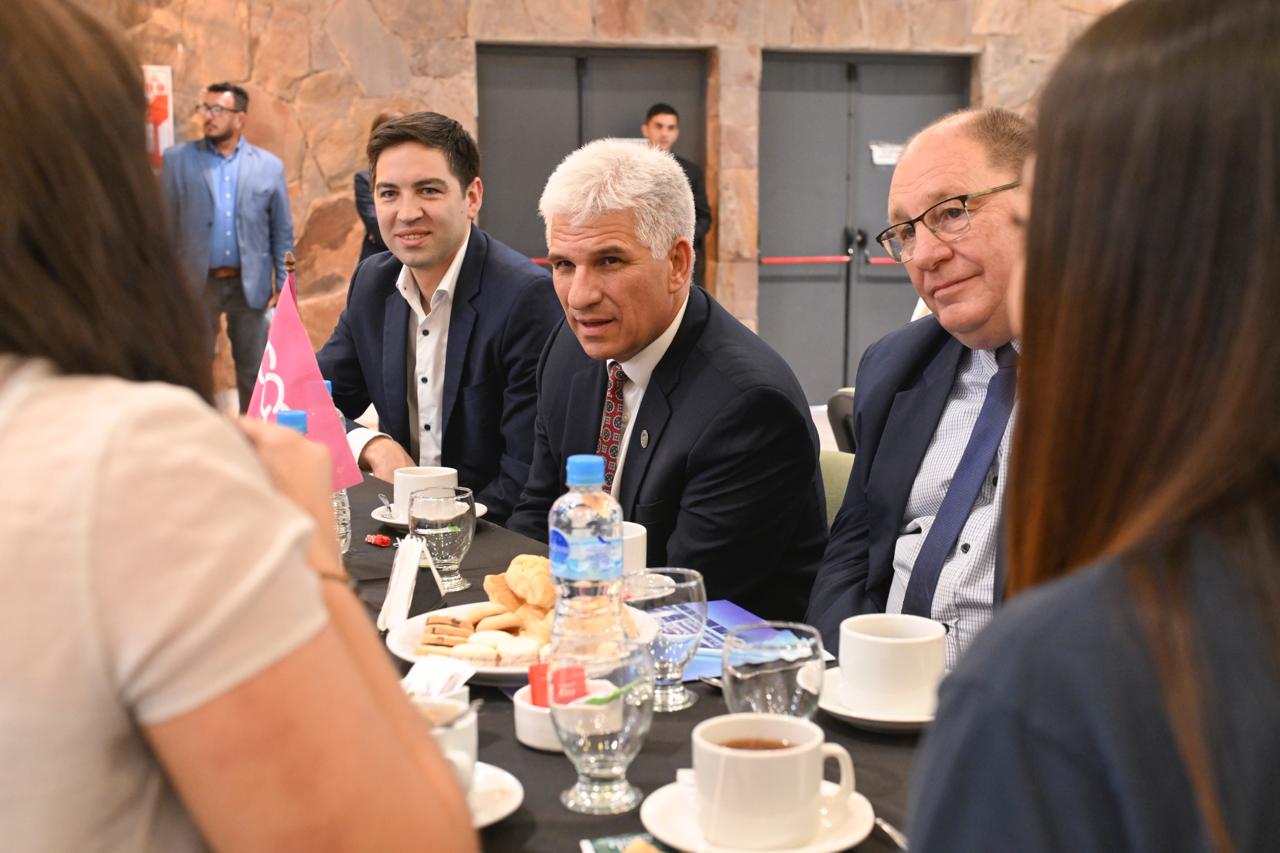 El desayuno se realizó en el Salón Blanco de Casa de Gobierno y contó con la participación de los ministros de Desarrollo Humano, Gustavo Bertolini; de Educación, Guillermo Araujo; y de Desarrollo Productivo, Federico Trombotto, en una señal del respaldo institucional que el Ejecutivo provincial le otorga a esta política educativa y productiva.