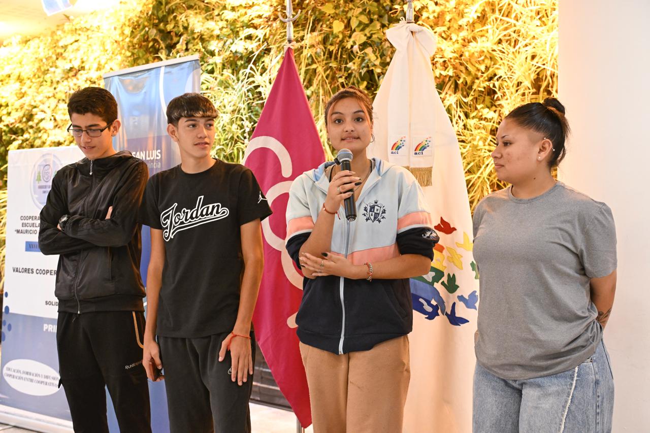 El Gobernador también subrayó que estos jóvenes se convertirán en “los primeros embajadores del cooperativismo en la provincia”, y recordó que esta modalidad no solo forma valores, sino que también abre oportunidades laborales: “Una cooperativa es como una empresa porque forma la cultura emprendedora, pero con un formato no individualista, sino colectivo, y es una alternativa real de trabajo hacia el futuro”.