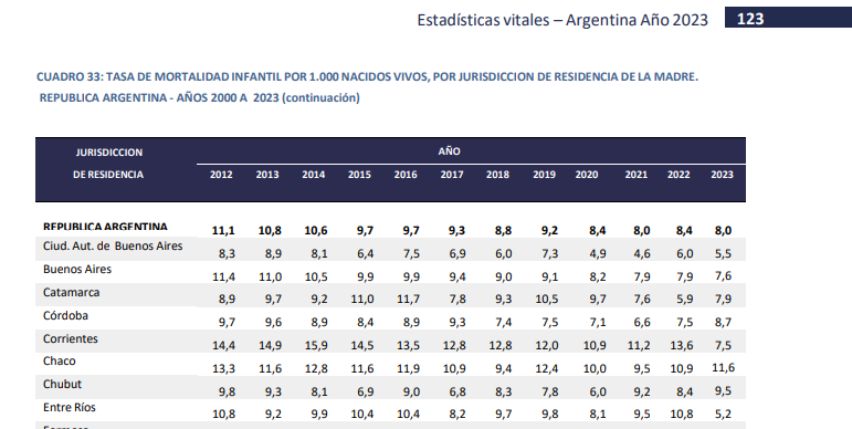 Un cuadro mal consignado en el Anuario de Estadísticas Vitales 2023 del DEIS alteró los rangos de mortalidad infantil de aproximadamente todas las provincias y generó interpretaciones erróneas en medios y organismos. San Luis reclamó la baja, corrección y republicación del documento.