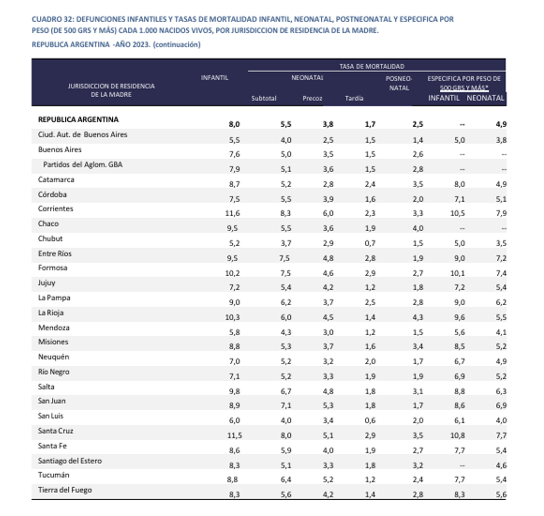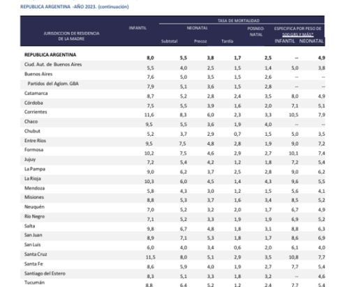 Un cuadro mal consignado en el Anuario de Estadísticas Vitales 2023 del DEIS alteró los rangos de mortalidad infantil de aproximadamente todas las provincias y generó interpretaciones erróneas en medios y organismos. San Luis reclamó la baja, corrección y republicación del documento.