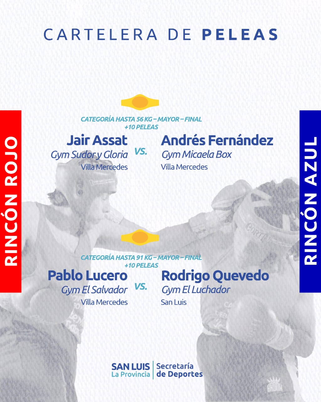Con respecto a las peleas que se verán este viernes por la noche, Medina precisó que serán cinco combates. “Estamos hablando de 10 boxeadores con mucha experiencia y mucha juventud, porque son chicos que ya están haciendo sus últimas peleas en el amateurismo. Tras esta final creo que la mayoría se va a retirar y va a pasar al profesionalismo. Una velada única, histórica. Aparte de ser libre y gratuita, en el Palacio de los Deportes va a haber chicos como Jair Assat, que todos lo conocemos, que ya ha peleado torneos argentinos en el amateurismo. El chico que pelea con él, Andrés Fernández, viene de pelear el Campeonato Argentino. También Isaías Aguilera que pelea con Camargo, dos chicos que han sido medallistas en los Juegos Evita. Es algo histórico, estos diez competidores que creo que van a brindar lo mejor”, remarcó.