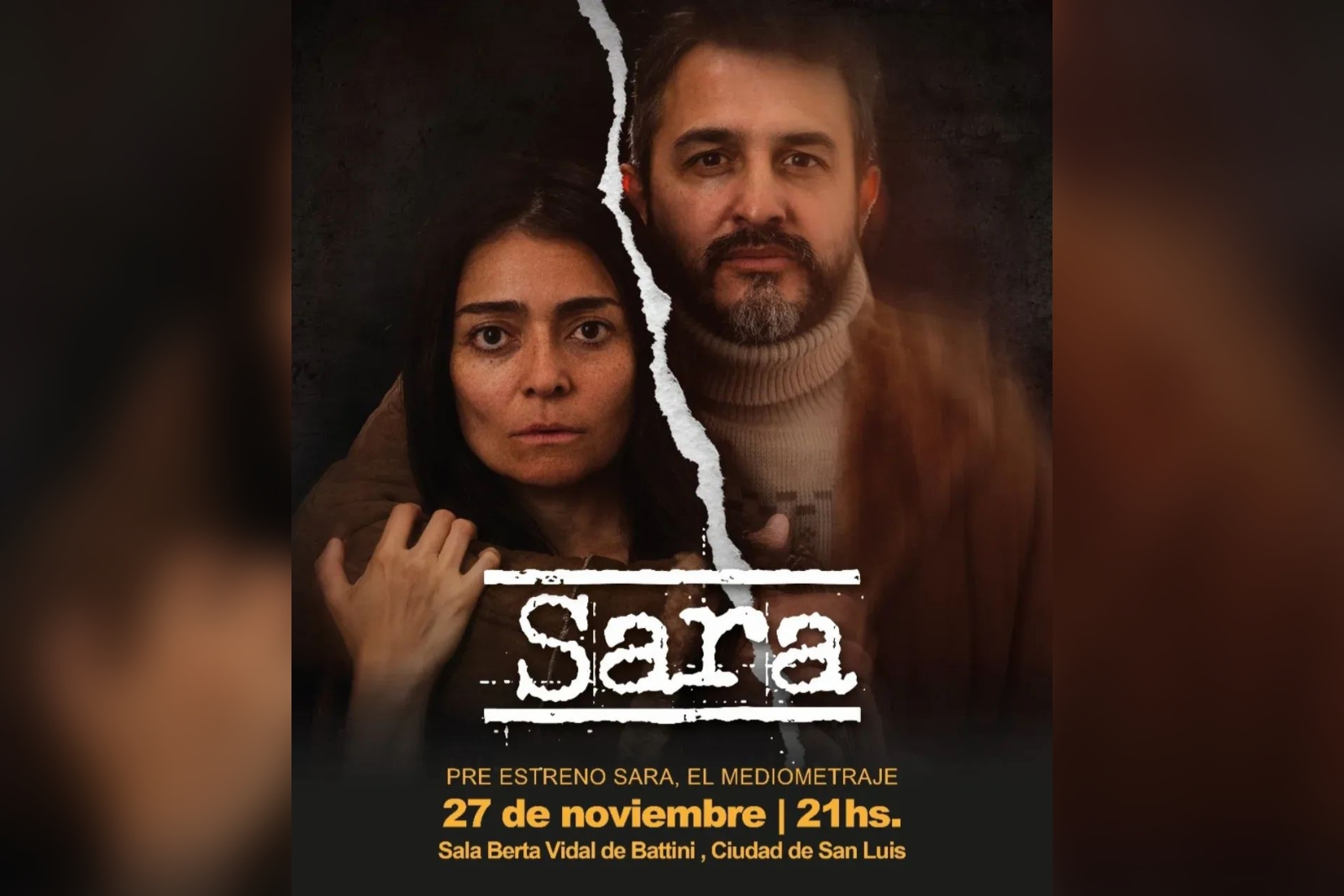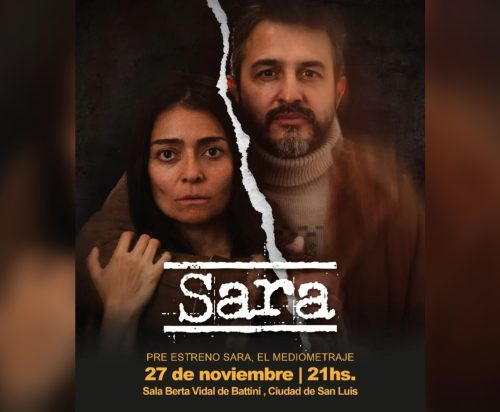 Este jueves 27, a las 21:00, la destacada producción local ‘Sara’, un mediometraje fue realizado de forma integral en San Luis con un gran equipo de actores, técnicos y realizadores locales, tendrá su preestreno en la Sala Berta Vidal de Battini del Centro Cultural Puente Blanco. Las entradas para la función tienen un valor de $6.000 y se deben reservar en el siguiente link.