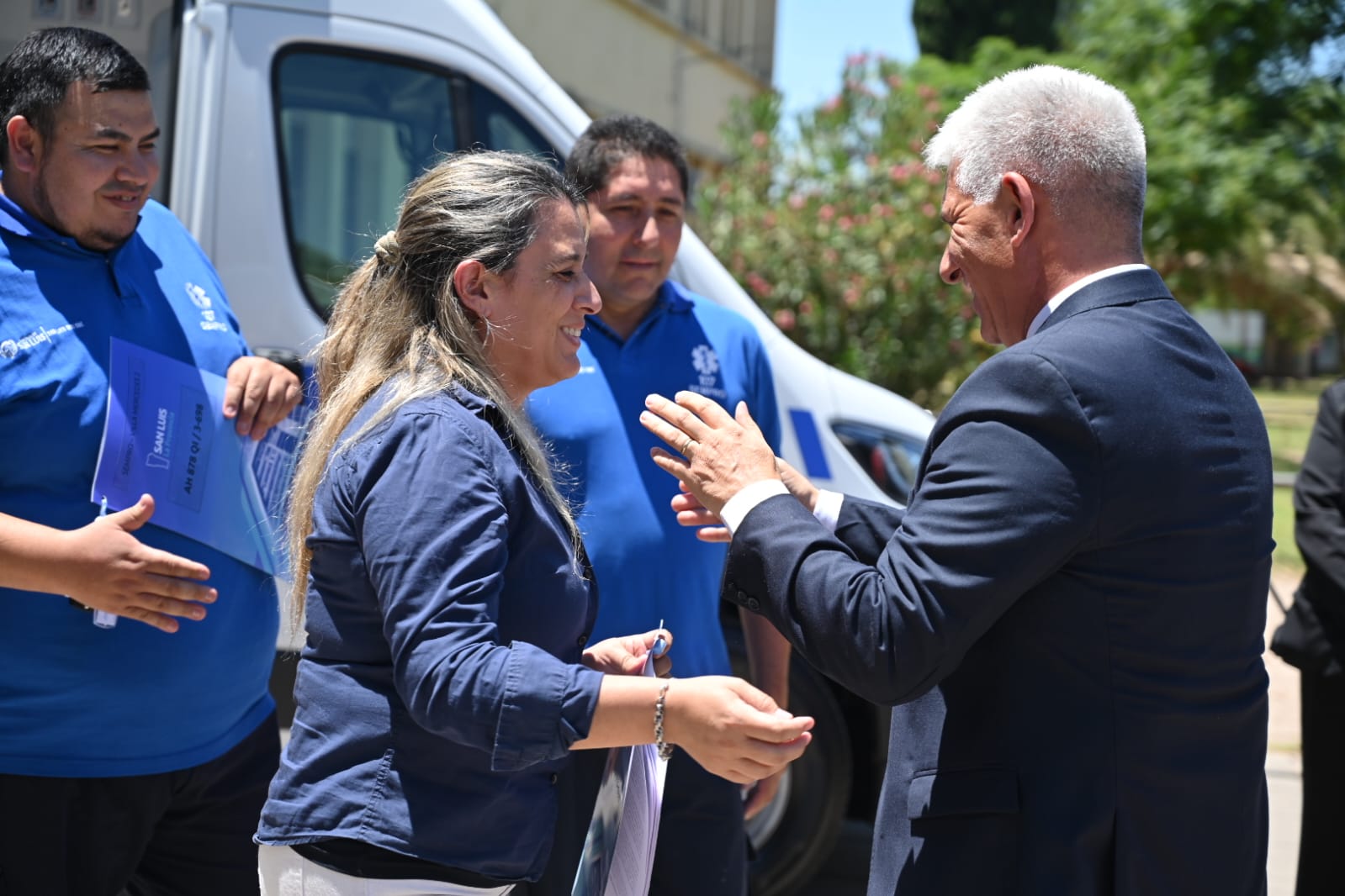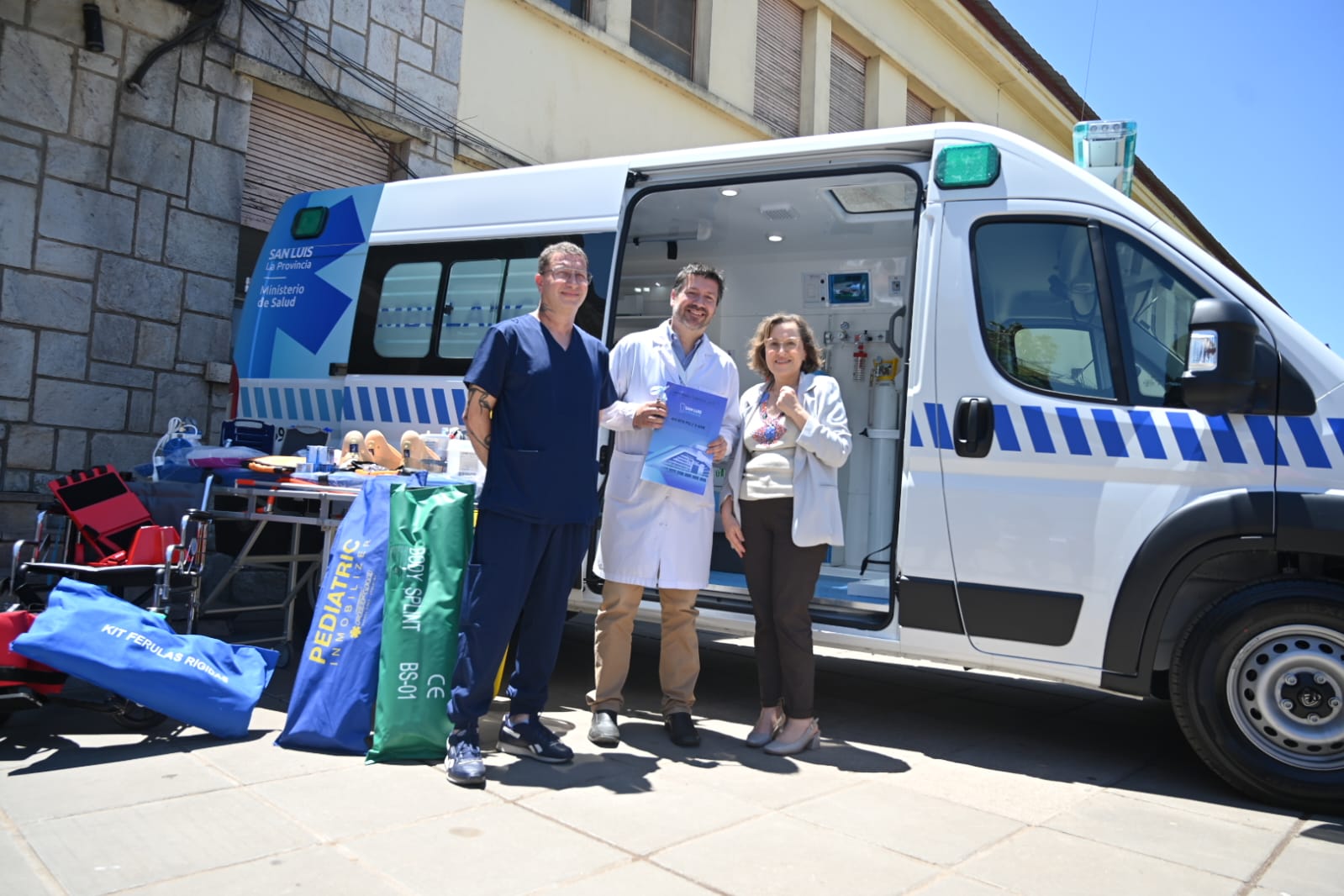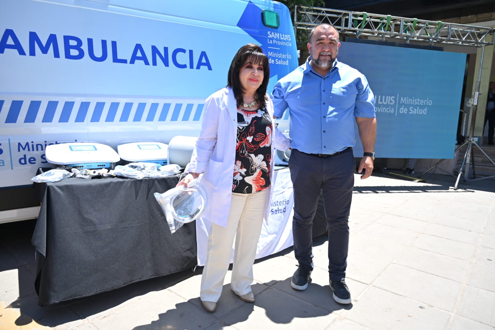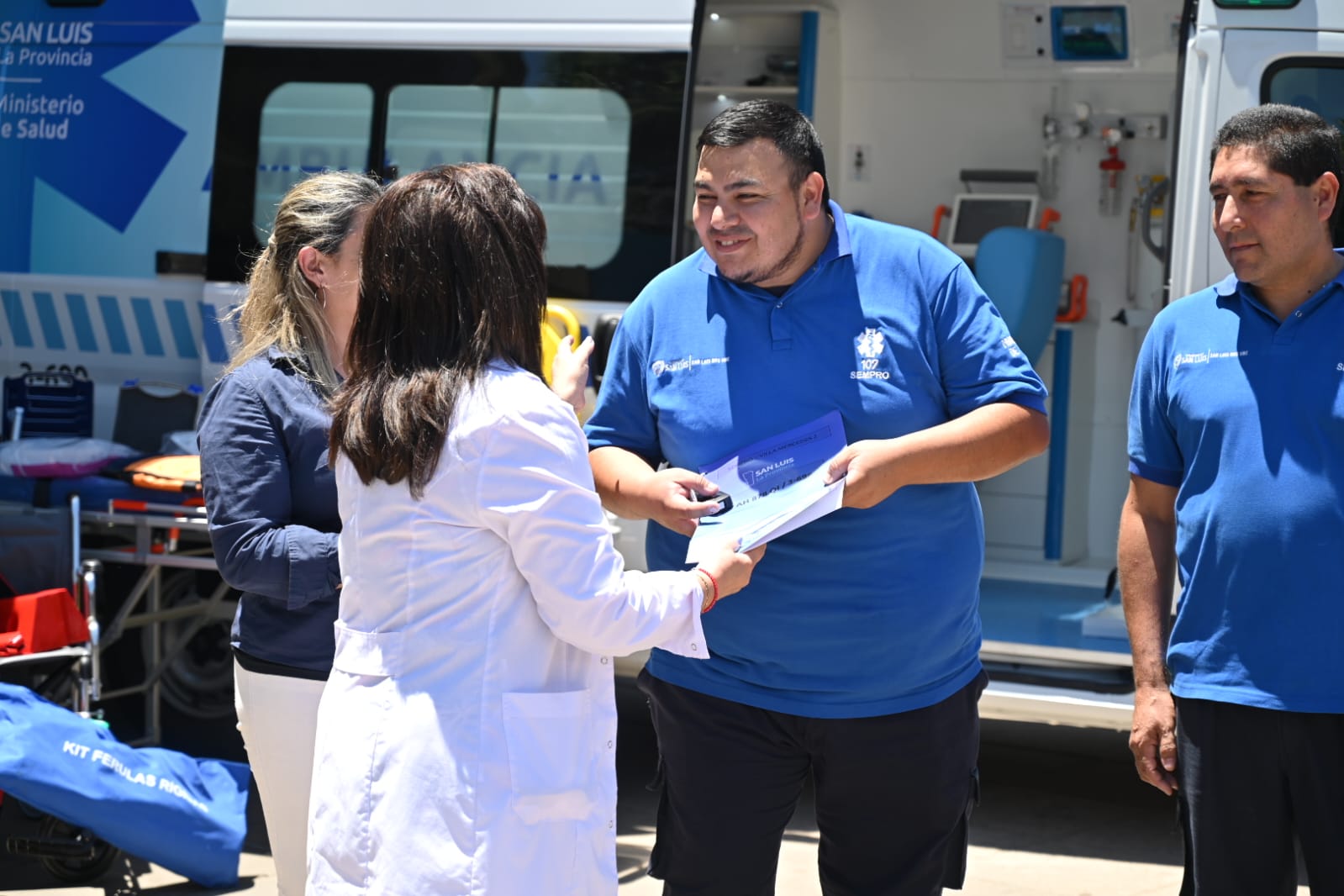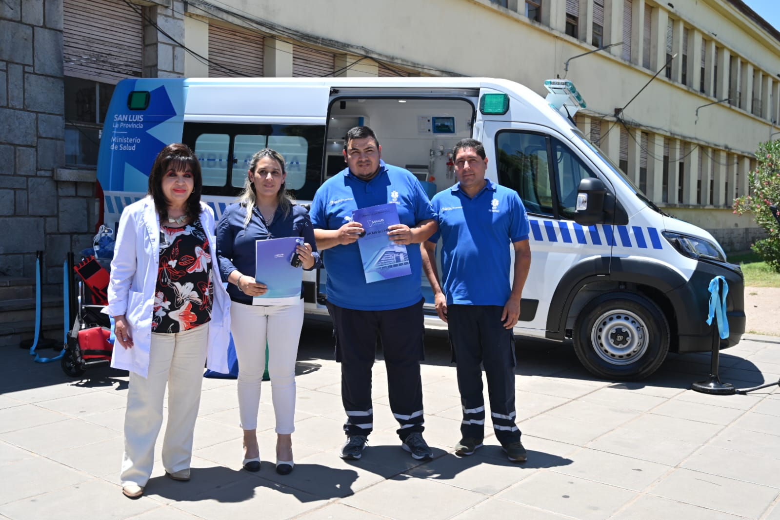 En el mismo acto se realizó la entrega de tres ambulancias de alta complejidad: una destinada a la Maternidad ‘Dr. Carlos A. Luco’ y dos al SEMPRO base Villa Mercedes. Las unidades forman parte de una compra total de 26 ambulancias adquiridas por el Gobierno provincial.