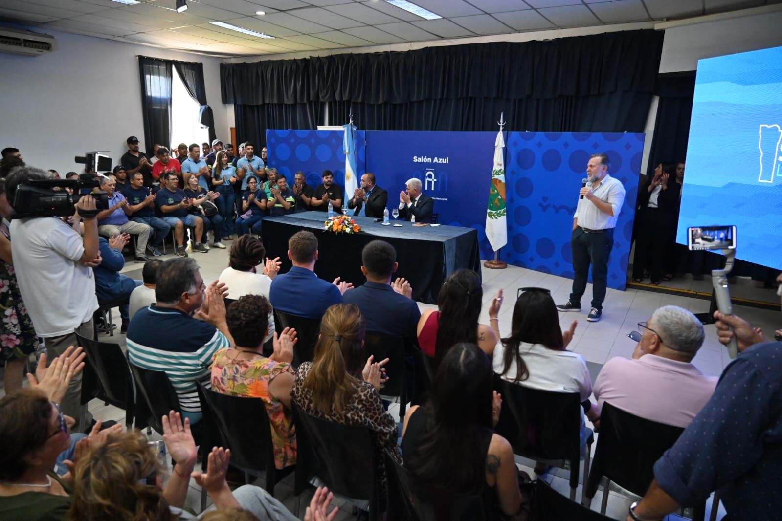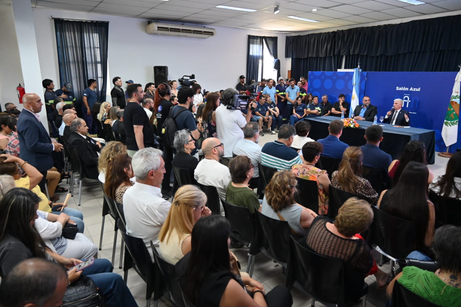 El acto se realizó en el Salón Azul municipal y concluyó con la firma del decreto de llamado a licitación para la primera etapa del plan, que combina obras subterráneas en el centro urbano con una transformación técnica integral de la planta de tratamiento.