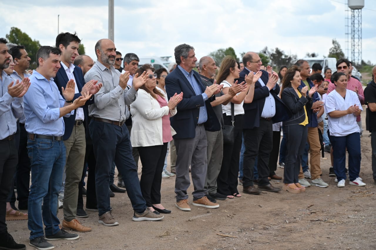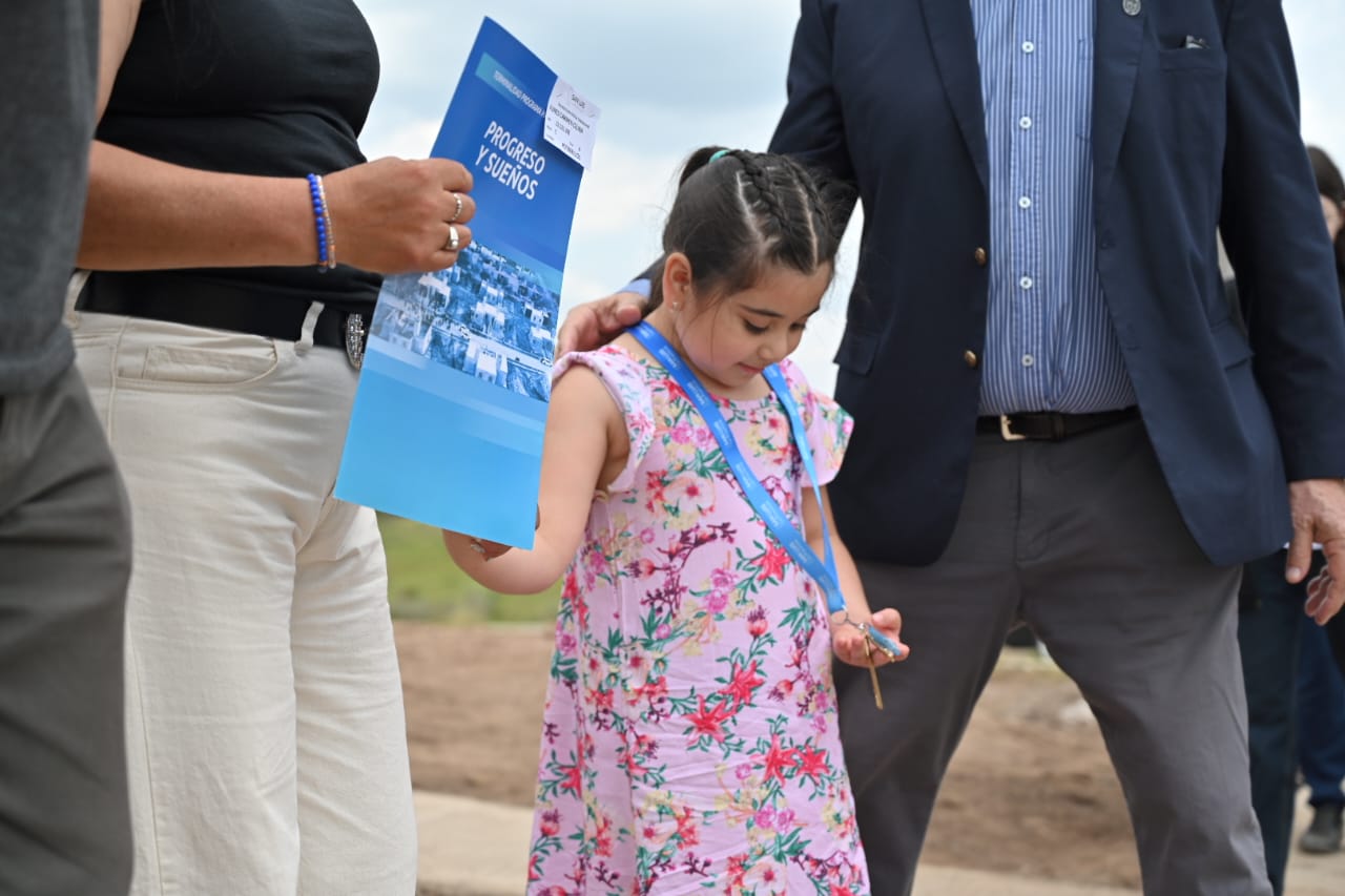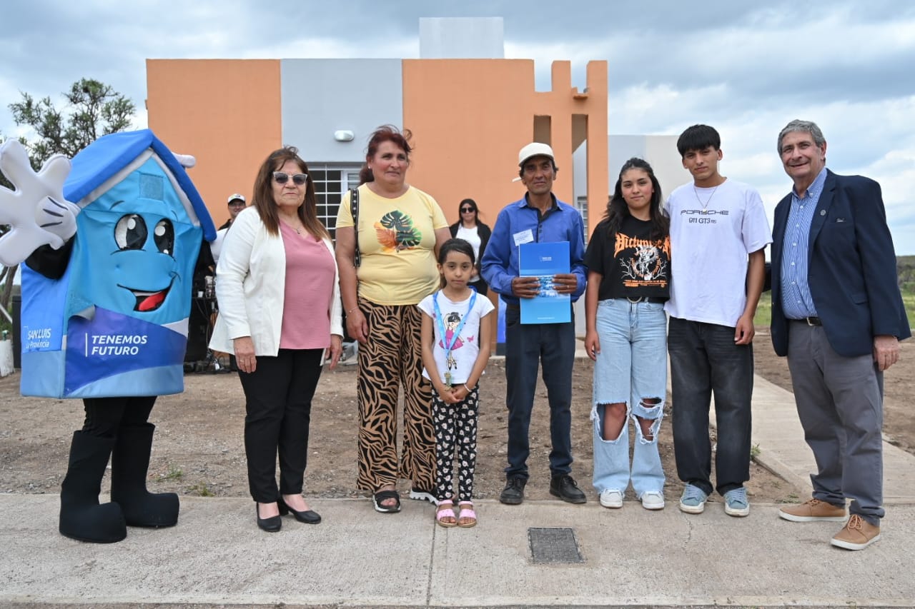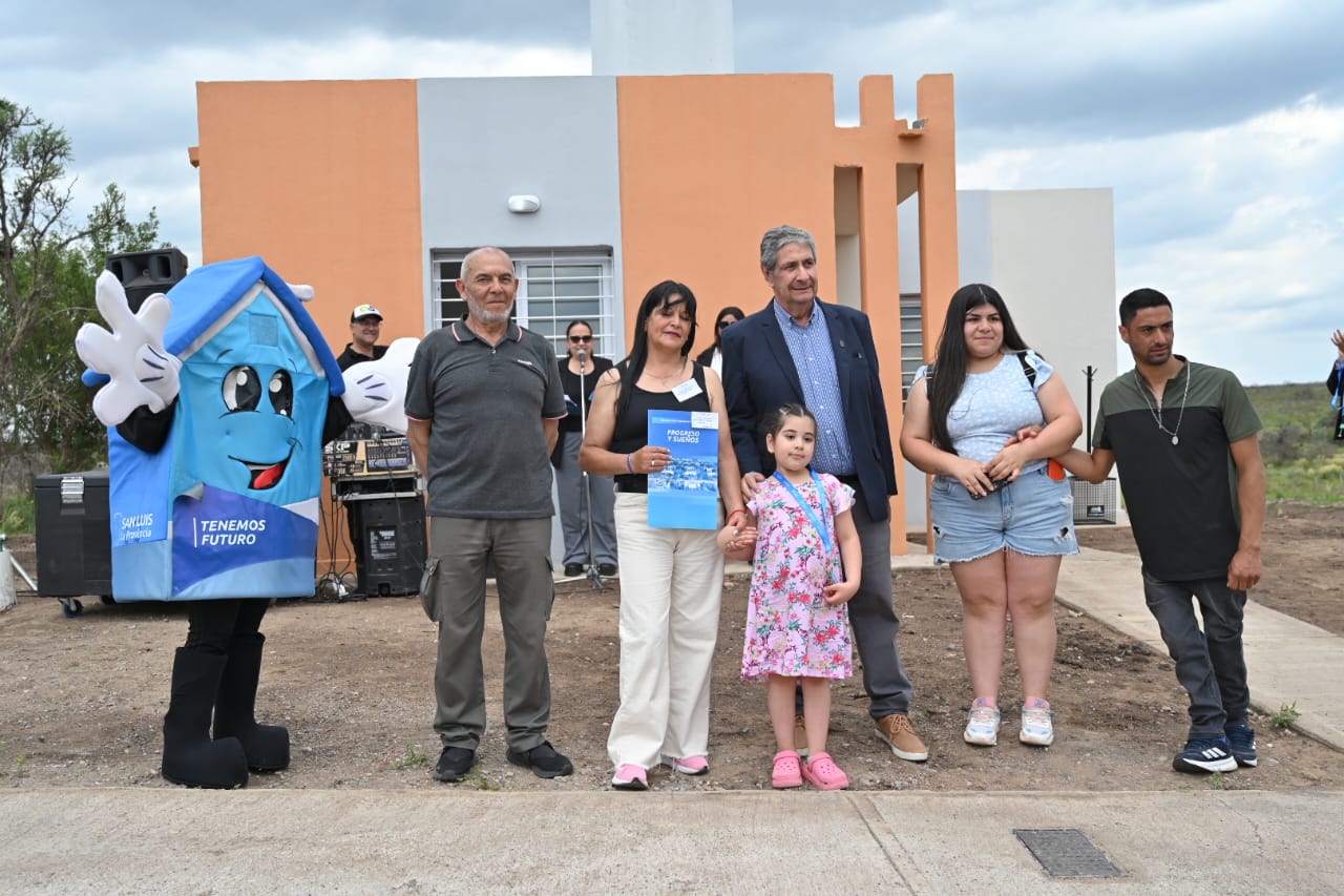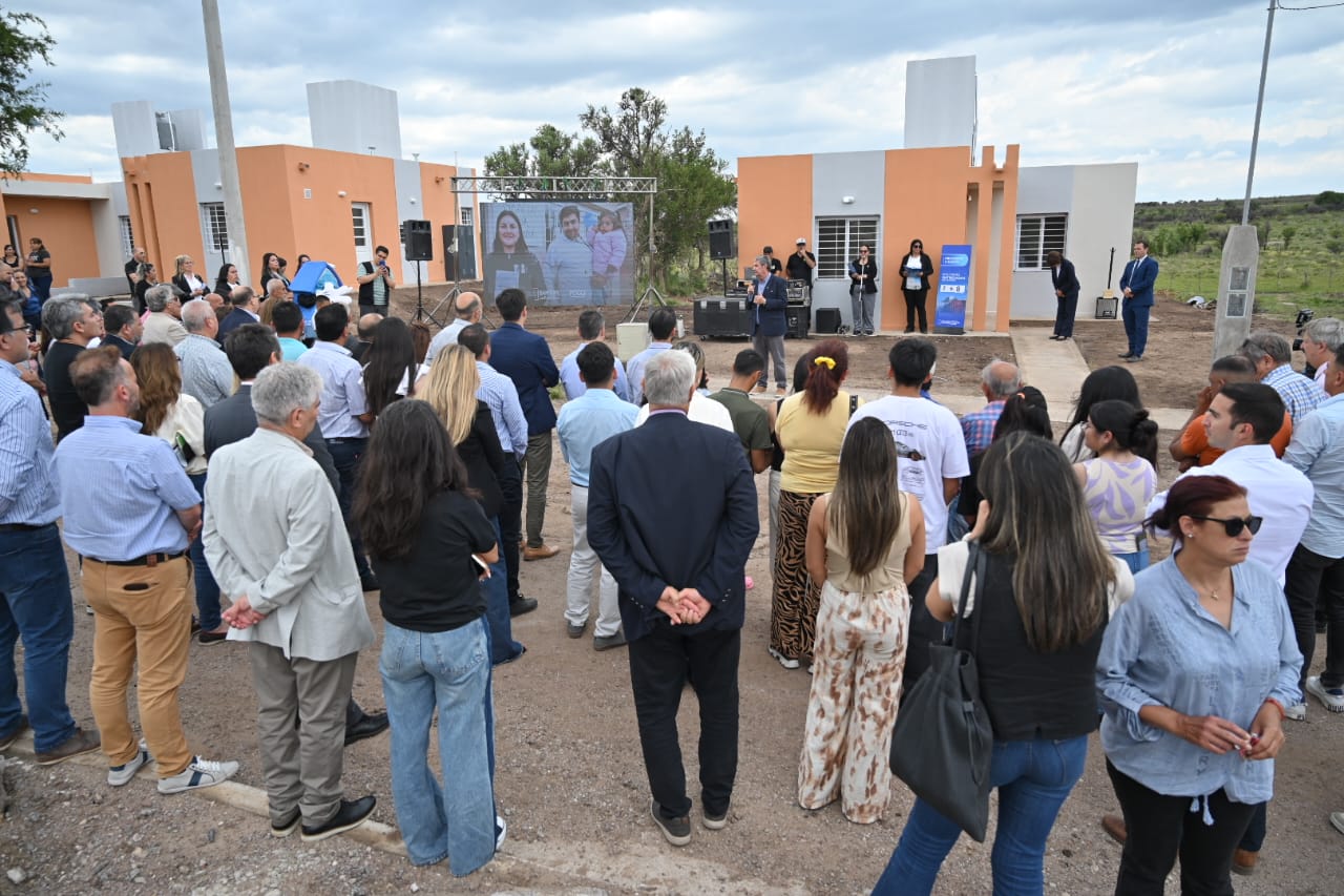 Se sumaron a este significativo momento para estos vecinos de Potrerillo el delegado organizador de la localidad, Facundo Quiroga; el secretario de Vivienda, Hugo Rossi; y los ministros de Desarrollo Productivo, Federico Trombotto, Desarrollo Humano, Gustavo Bertolini, y Educación, Guillermo Araujo. También docentes y estudiantes de la Escuela N°178 ‘José Inés Pedernera’ de Potrerillo, distante a unos dos kilómetros del punto donde están las nuevas casas.