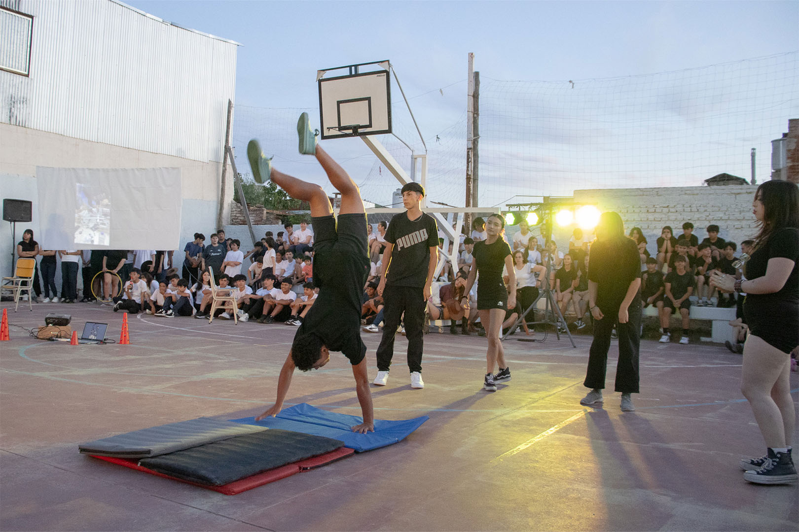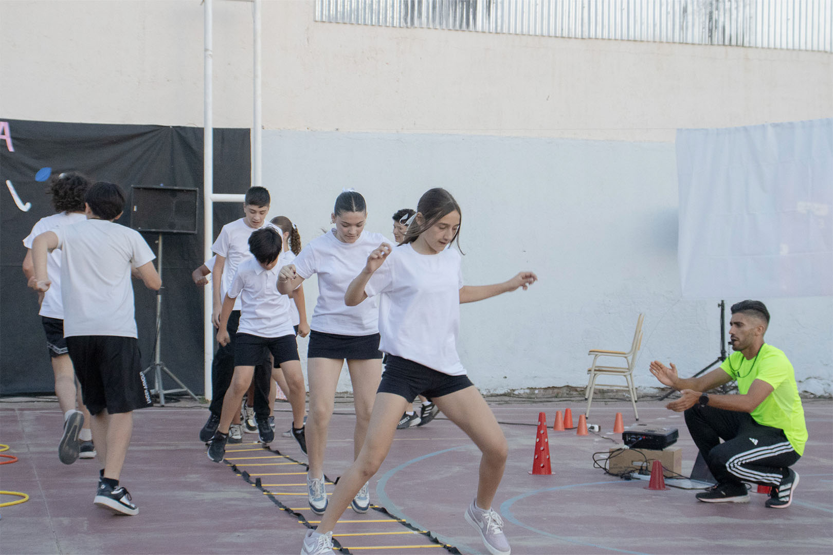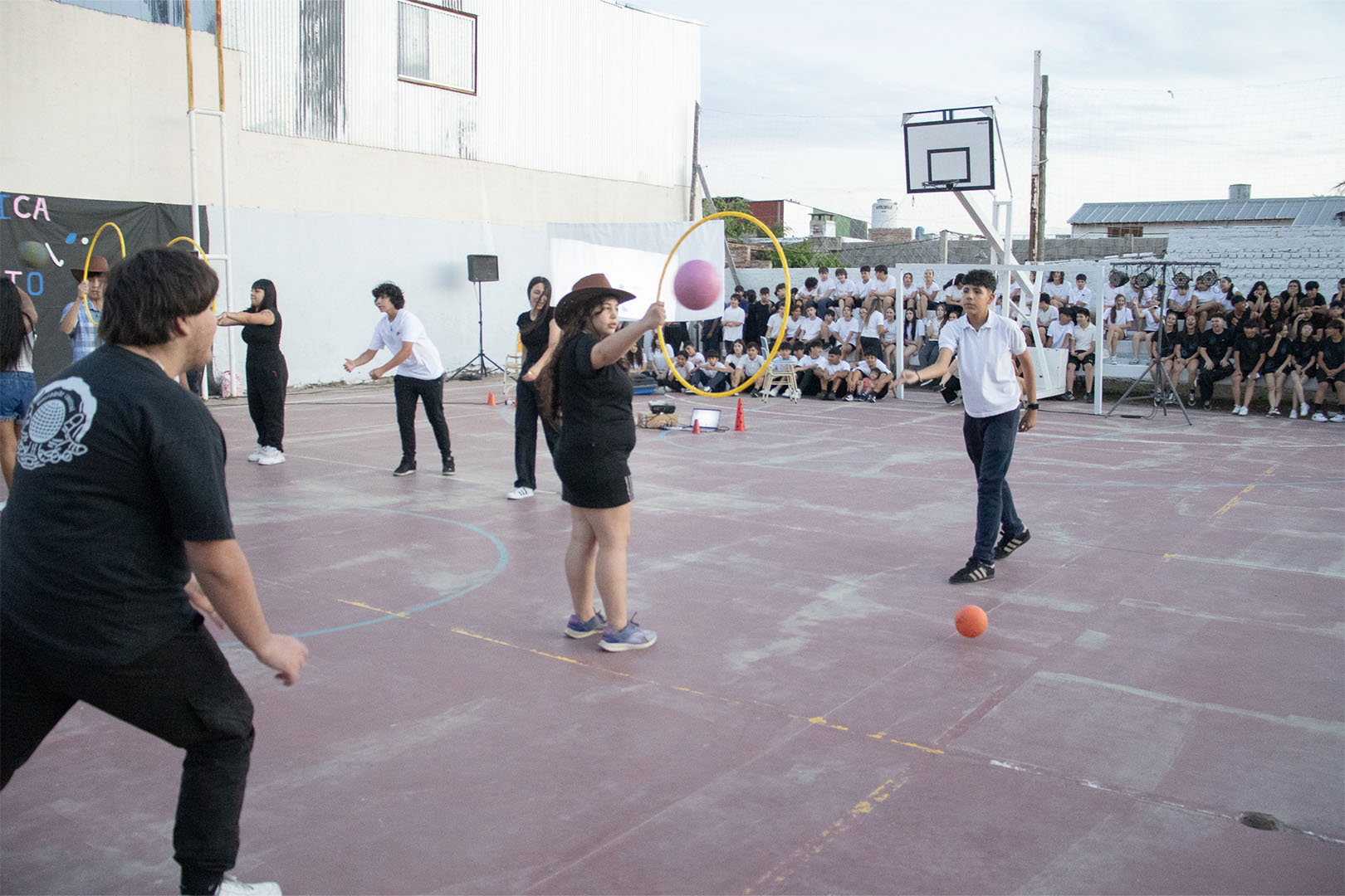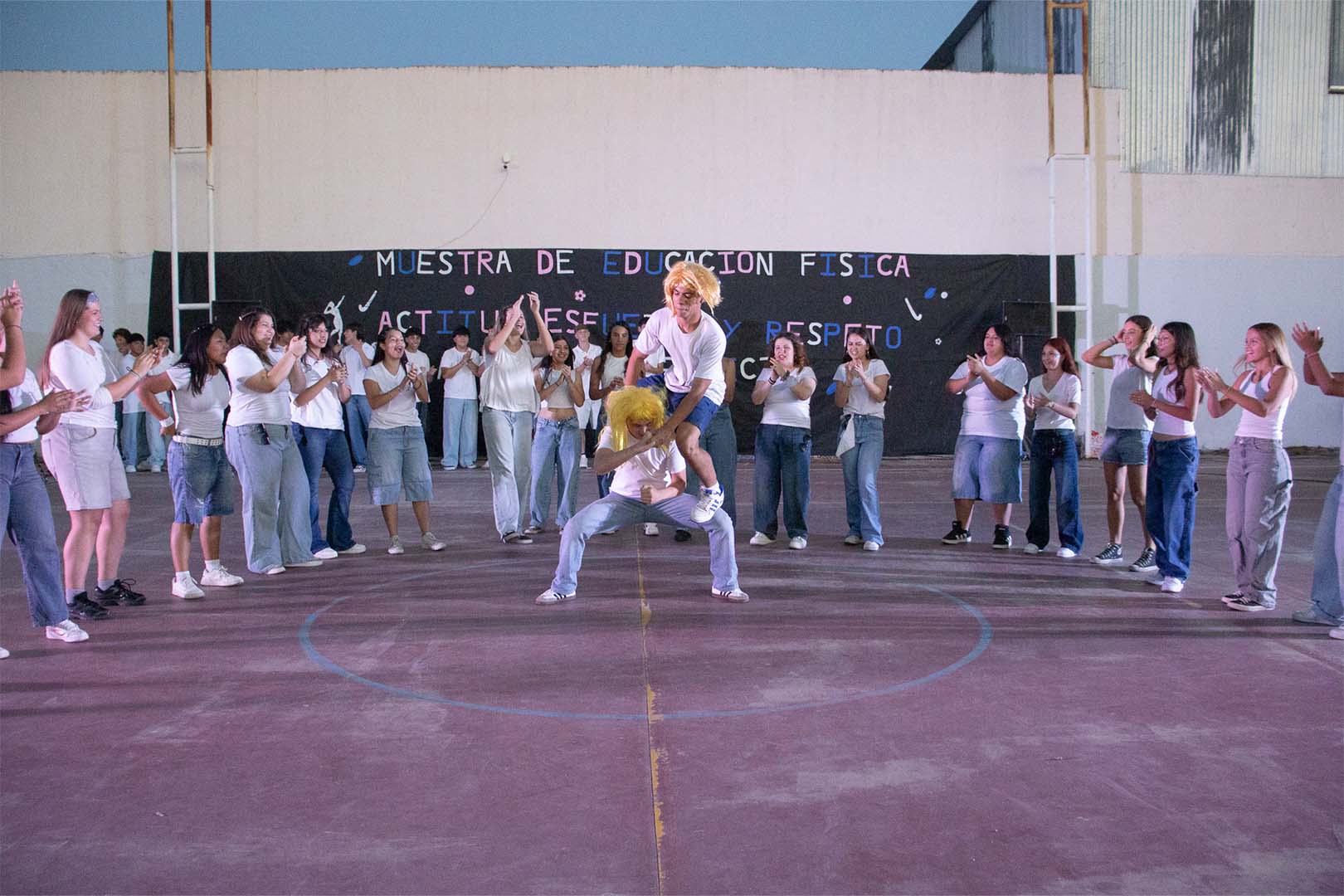 Los agrupamientos Aquarius, Columba, Phoenix, Pyxis, Orion y Lepus presentaron circuitos de carreras, saltos, coordinación, motricidad y habilidades con pelotas. El gran cierre estuvo a cargo de coreografías originales diseñadas entre docentes y alumnos, con una protagonista destacada: Nazarena Ávila. La estudiante de prepromo y profesora de baile tomó un rol central en la creación artística. “Ayudé a los profes a organizar las coreografías. Buscamos música bien pila y positiva para que la gente se enganche”, contó.