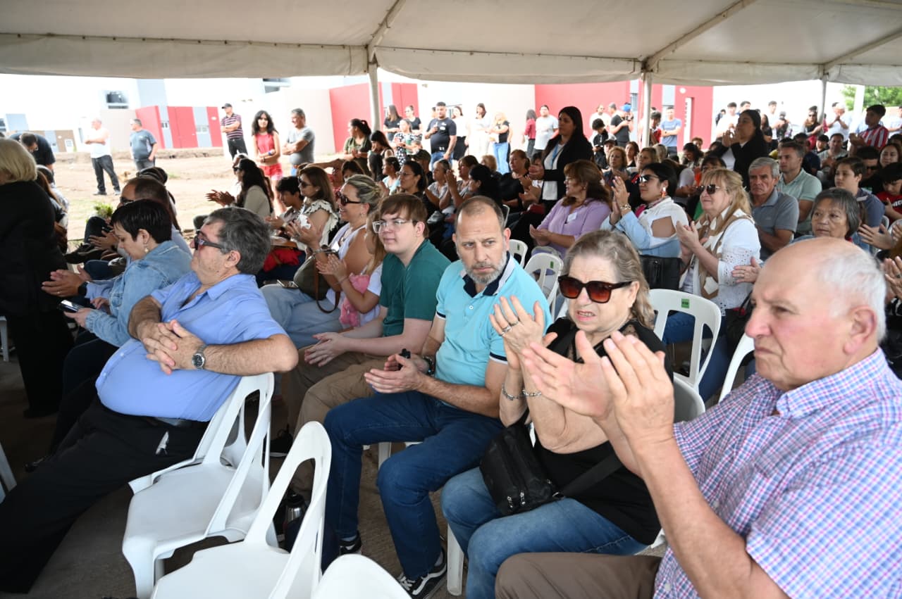 El gobernador Claudio Poggi encabezó el acto acompañado por el intendente Jorge ‘Toti’ Videla; el intendente electo, Pedro Tagliente, y legisladores del departamento Pueyrredón. El recibimiento fue cálido, entre aplausos, abrazos y lágrimas de familias que por fin vieron cumplido un sueño que quedó en suspenso durante casi una década.