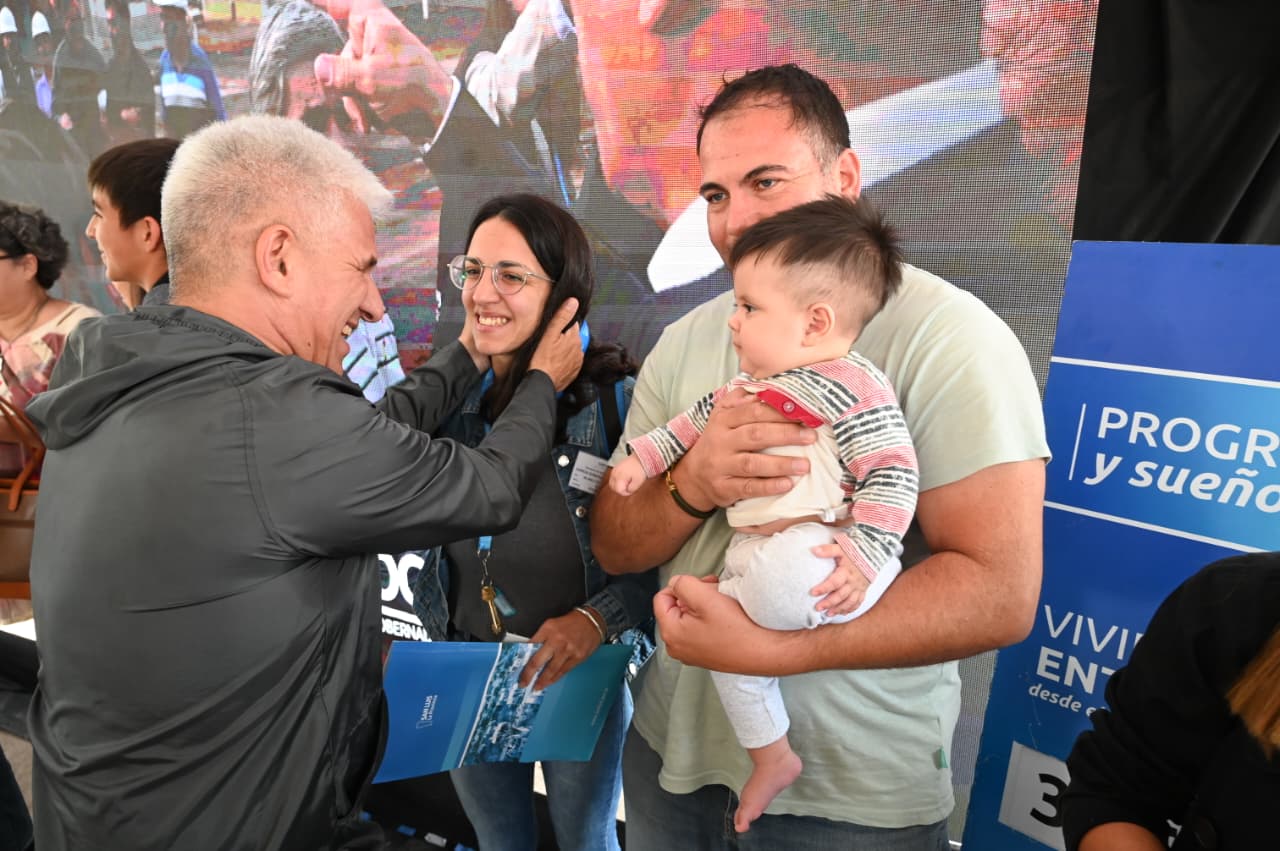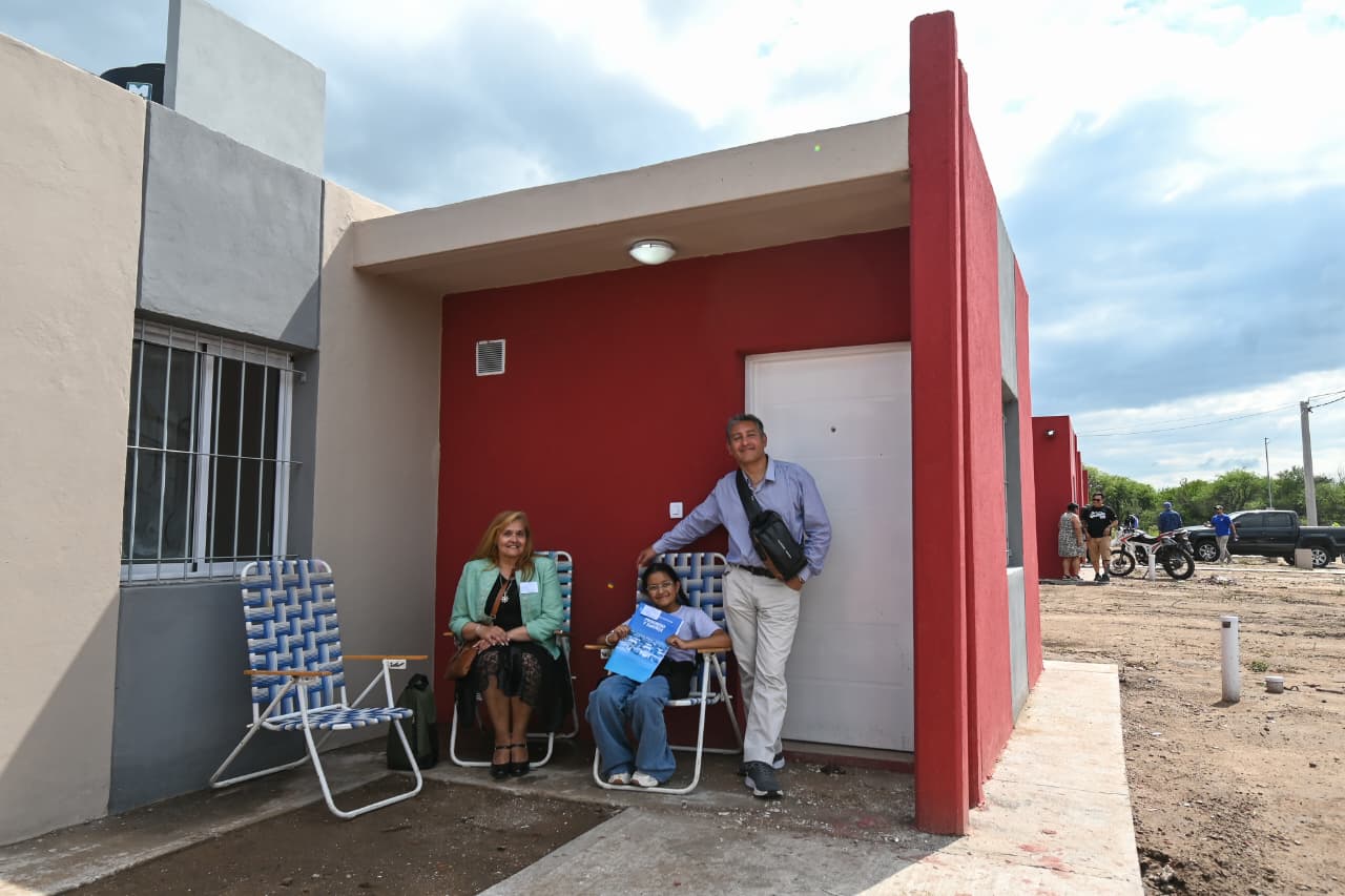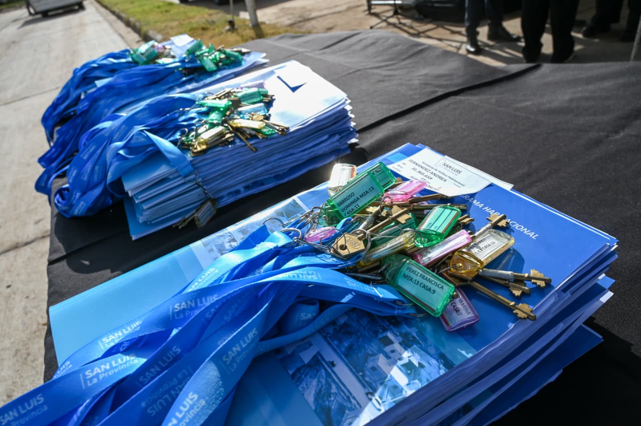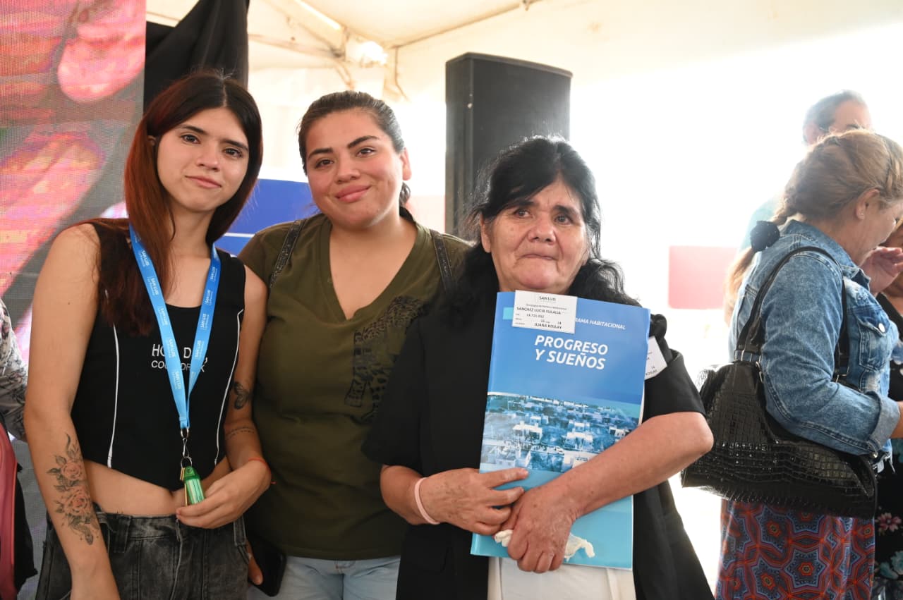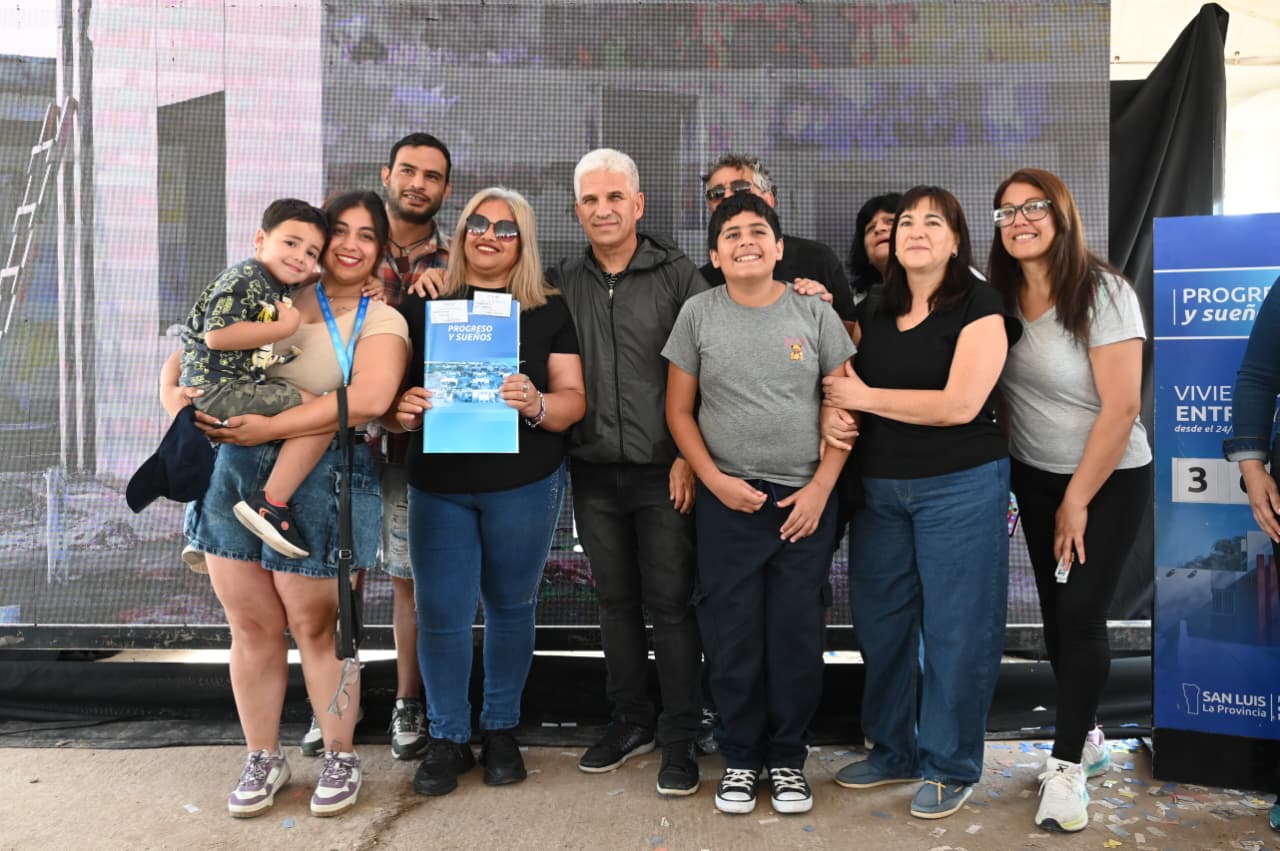Llaves en manos temblorosas, abrazos por doquier, lágrimas, camiones rebalsados de cocinas, heladeras y muebles, brindis y fotos en un acto desbordado de emociones en Juana Koslay.
