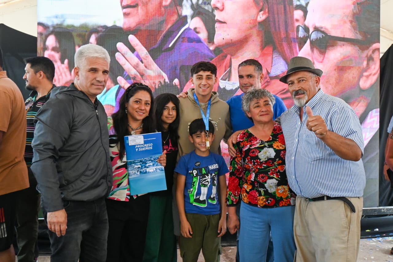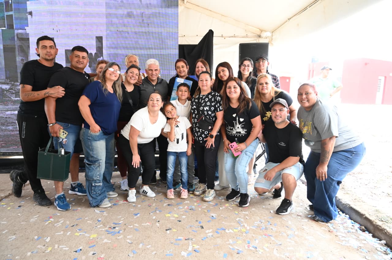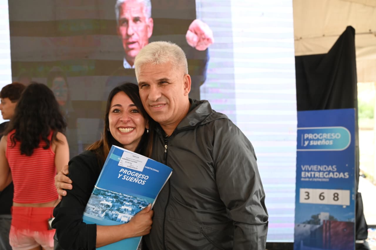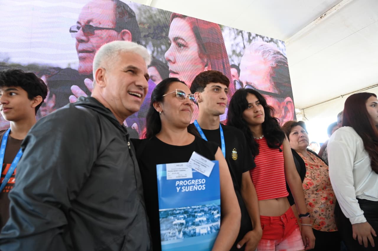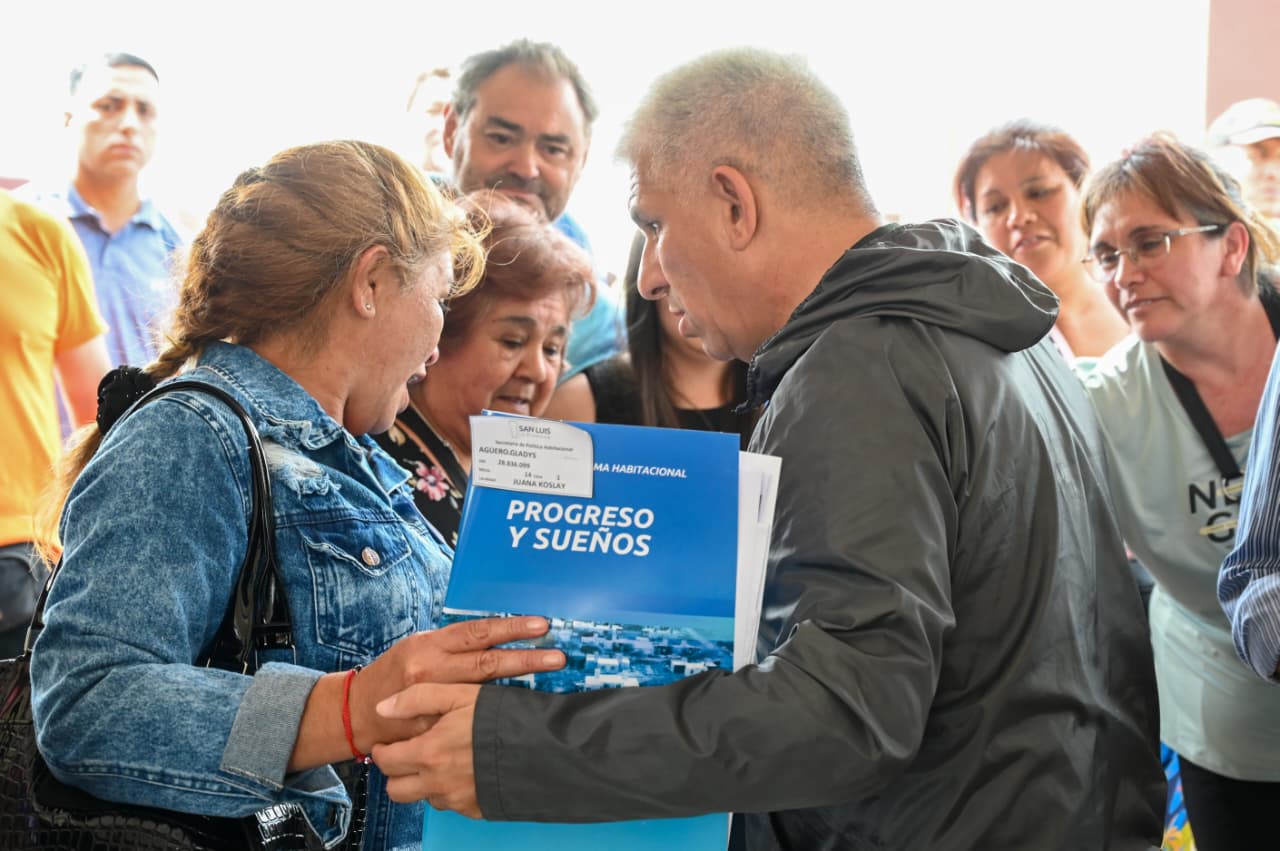 Llaves en manos temblorosas, abrazos por doquier, lágrimas, camiones rebalsados de cocinas, heladeras y muebles, brindis y fotos en un acto desbordado de emociones en Juana Koslay.