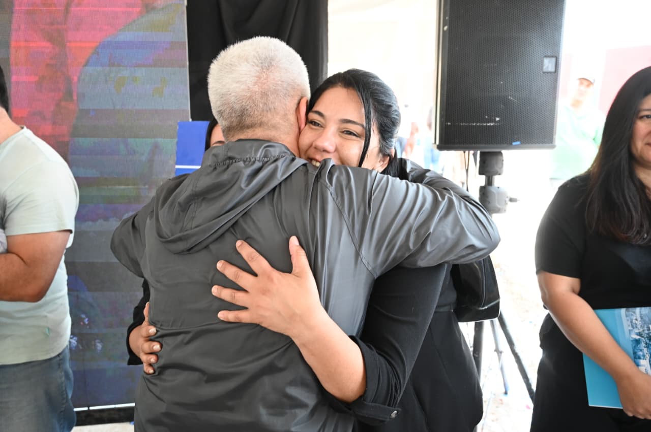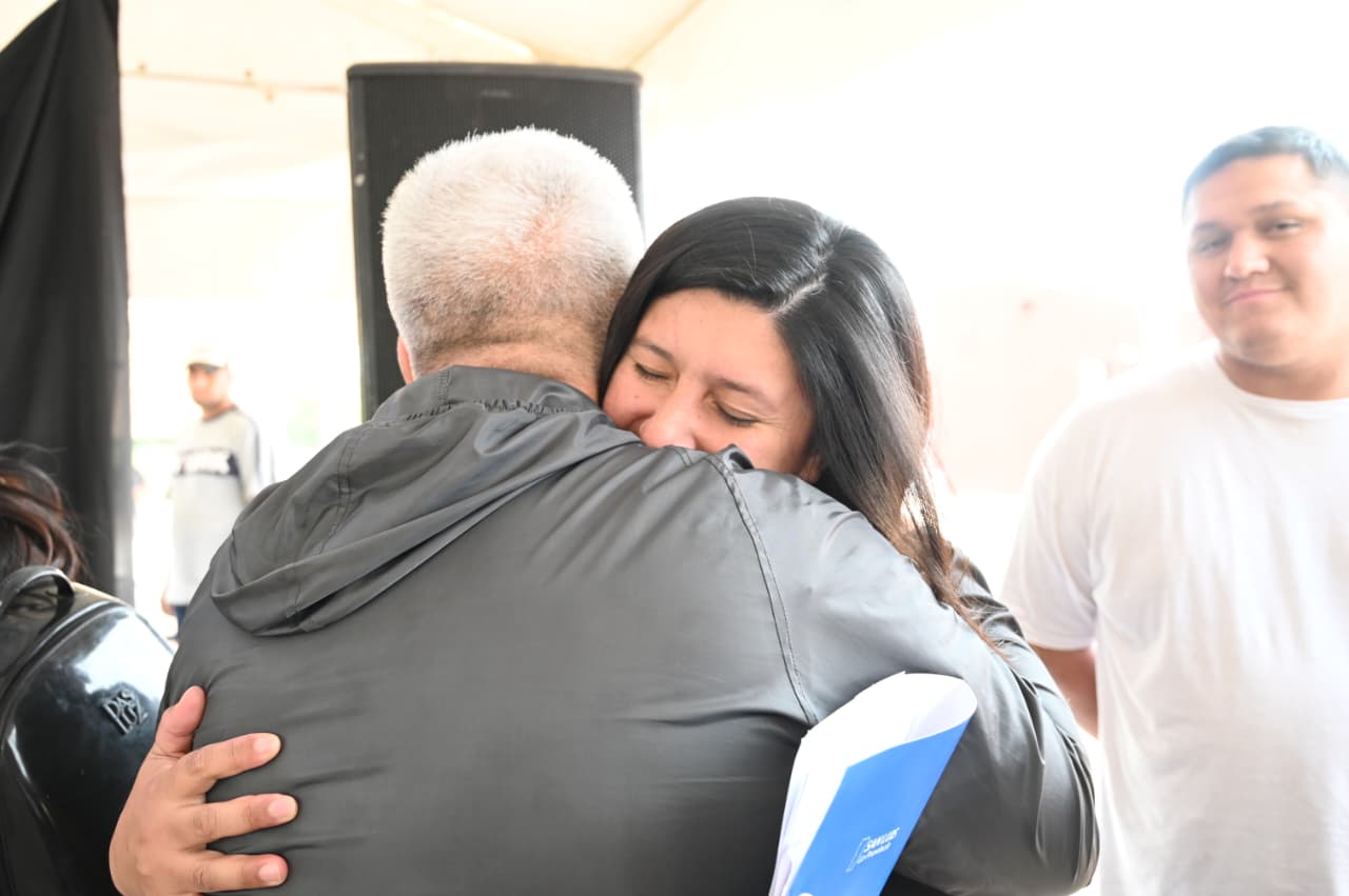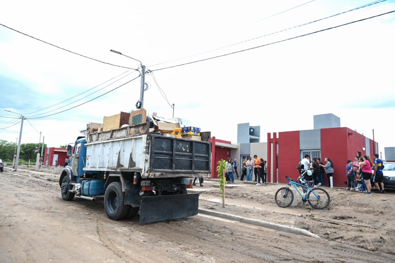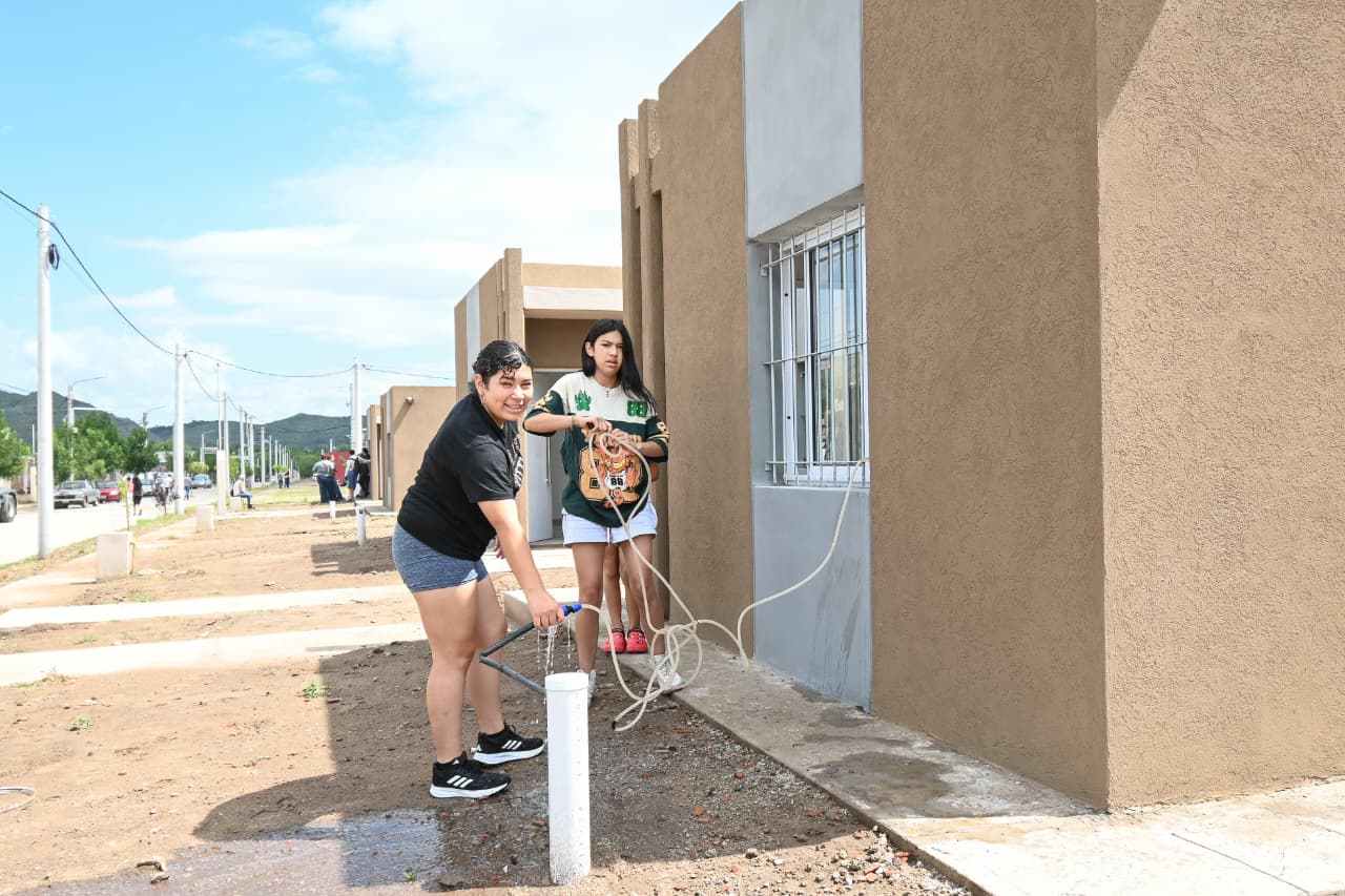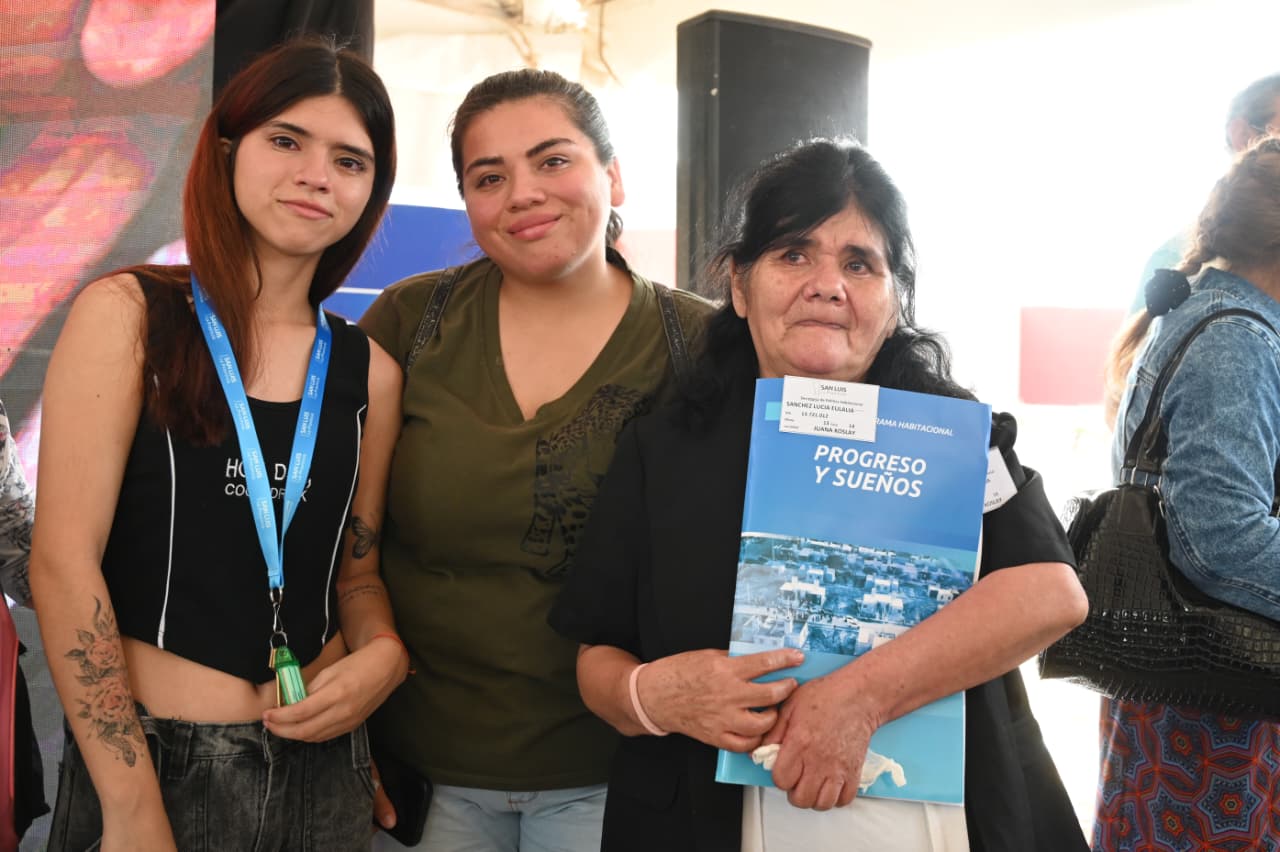 Llaves en manos temblorosas, abrazos por doquier, lágrimas, camiones rebalsados de cocinas, heladeras y muebles, brindis y fotos en un acto desbordado de emociones en Juana Koslay.