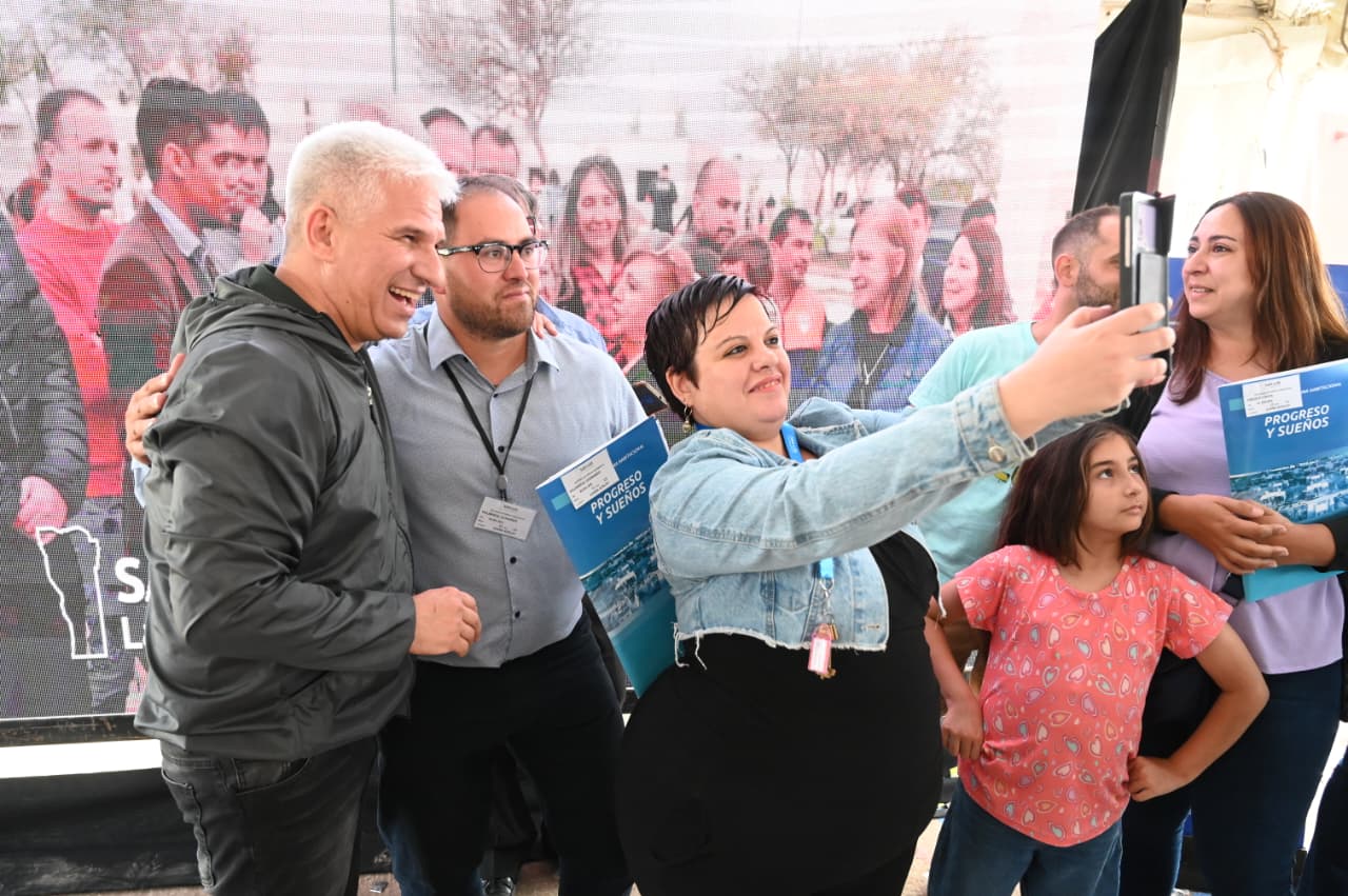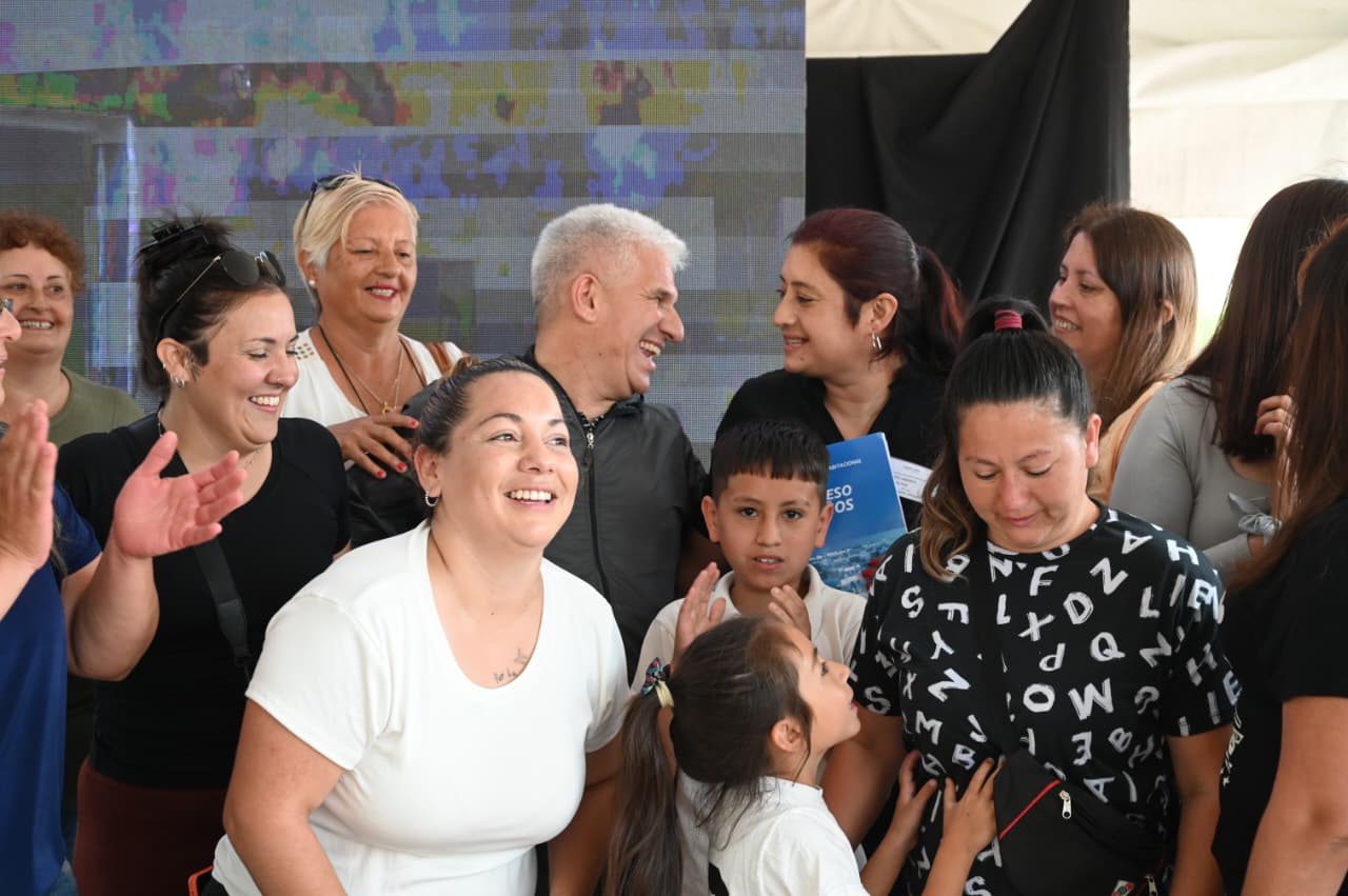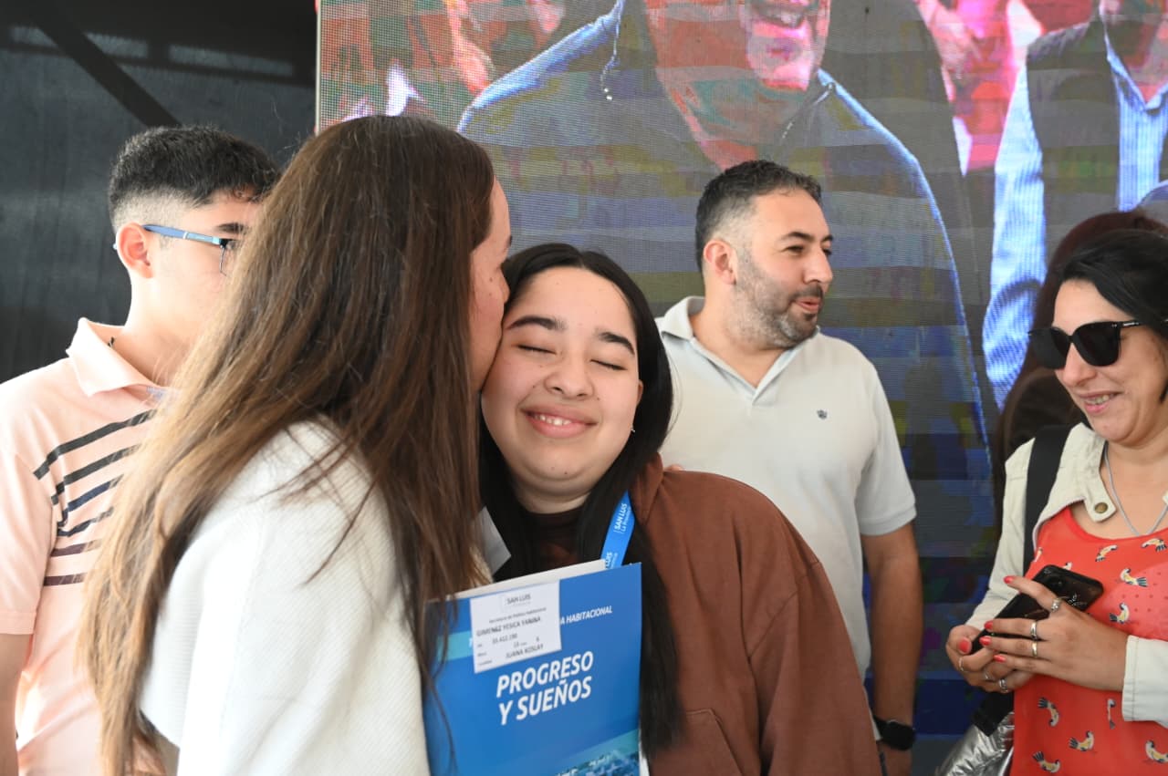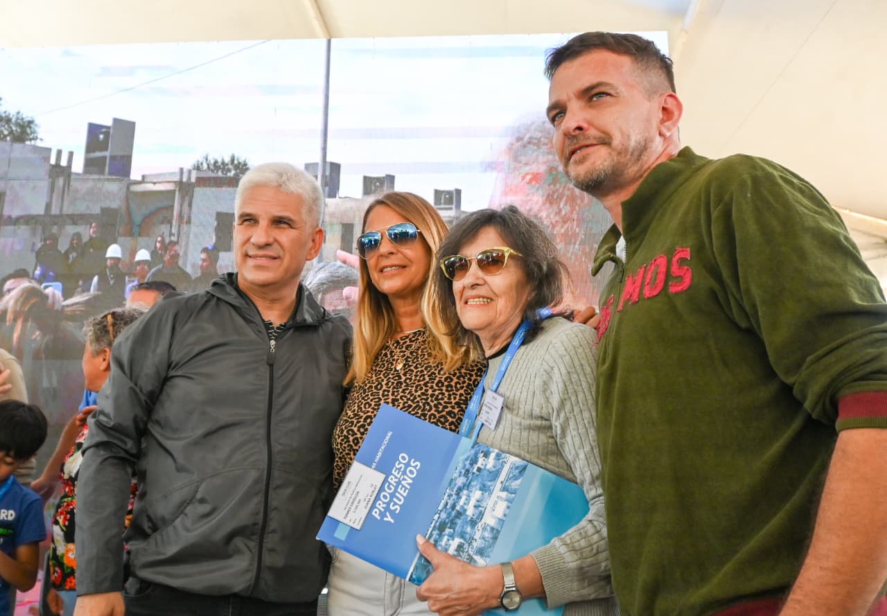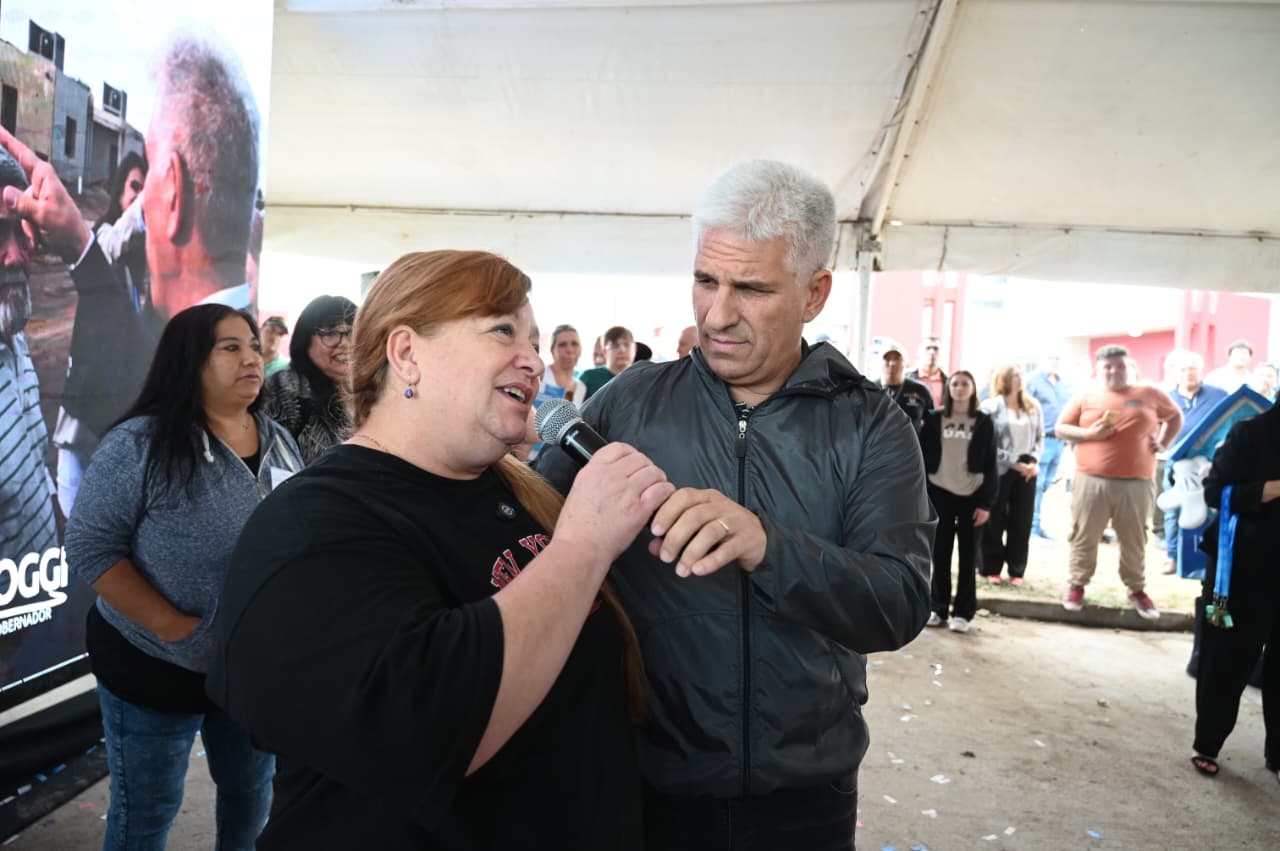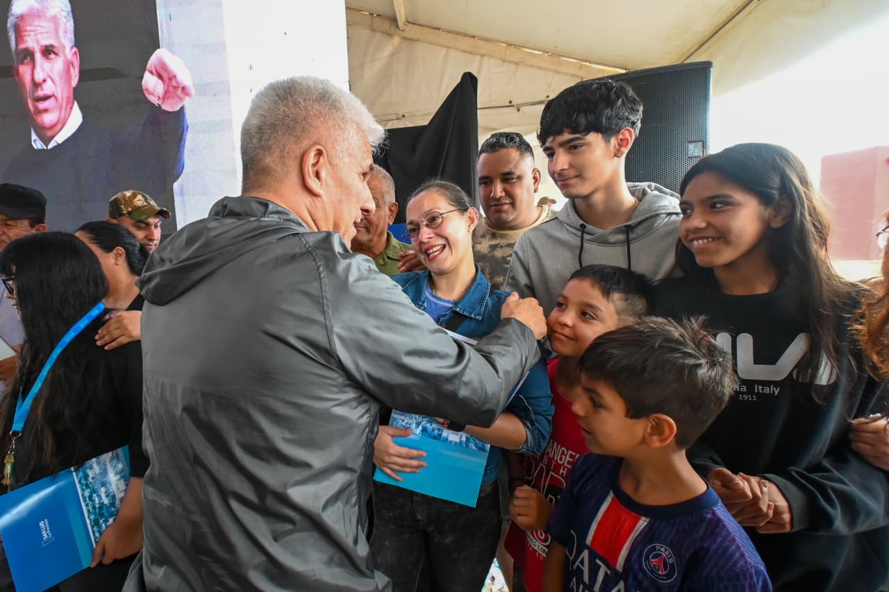 Llaves en manos temblorosas, abrazos por doquier, lágrimas, camiones rebalsados de cocinas, heladeras y muebles, brindis y fotos en un acto desbordado de emociones en Juana Koslay.