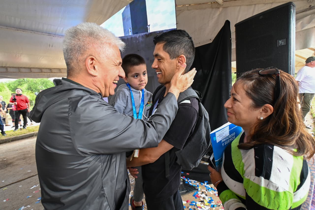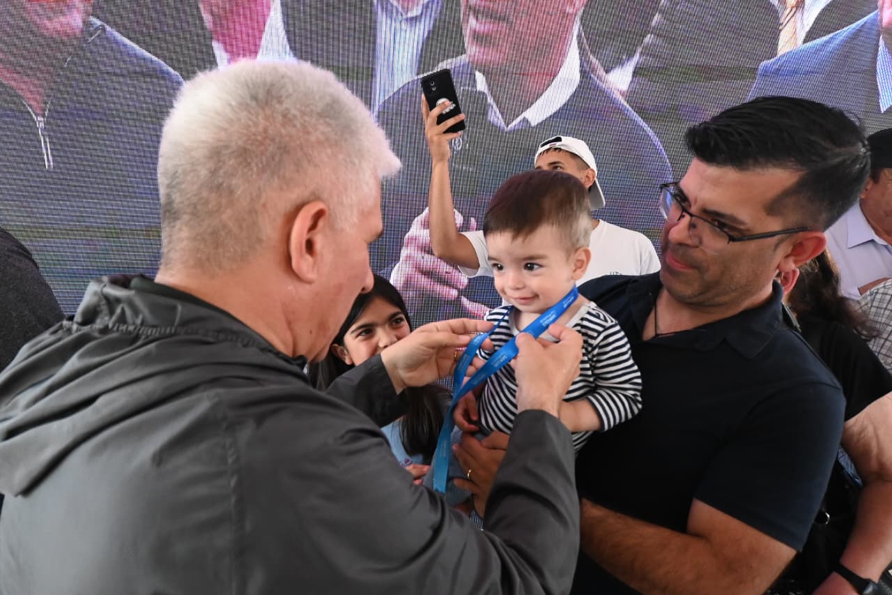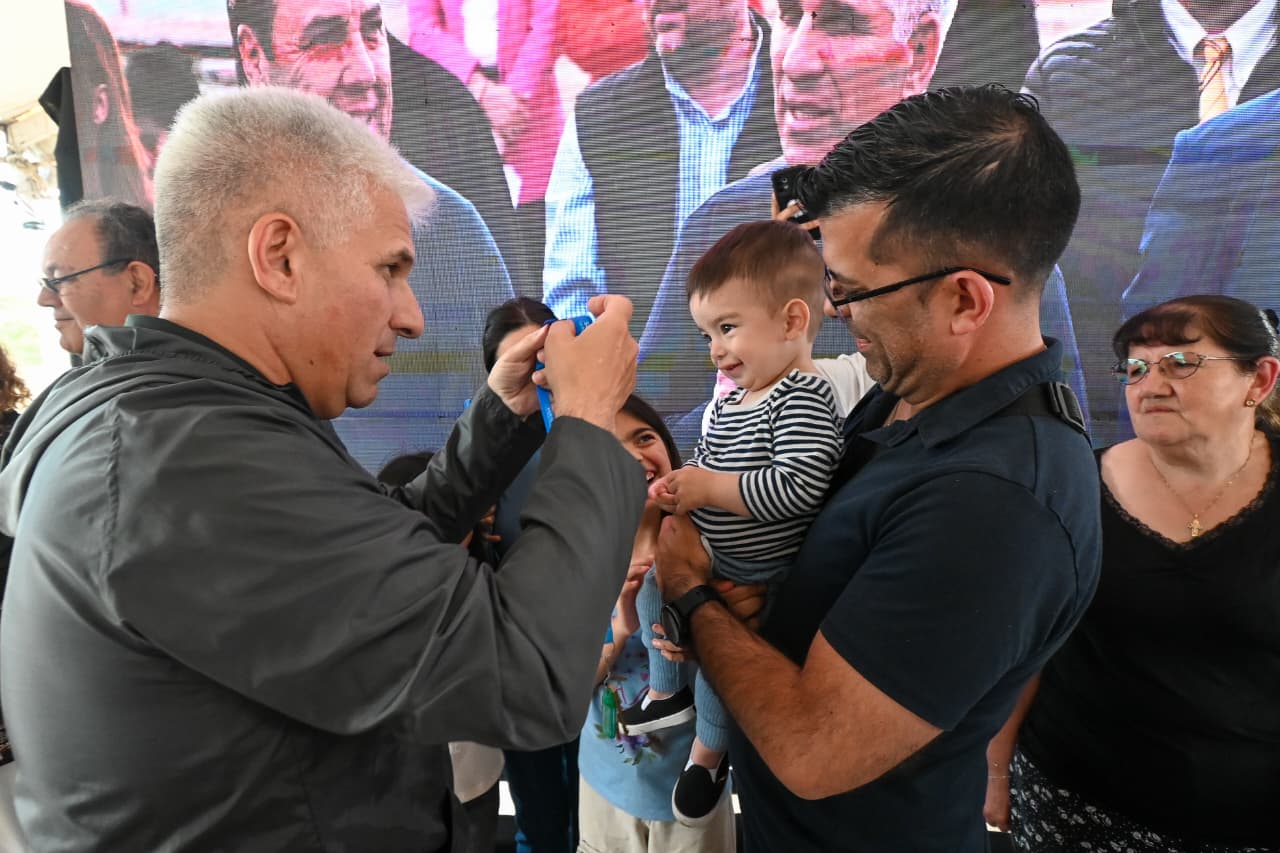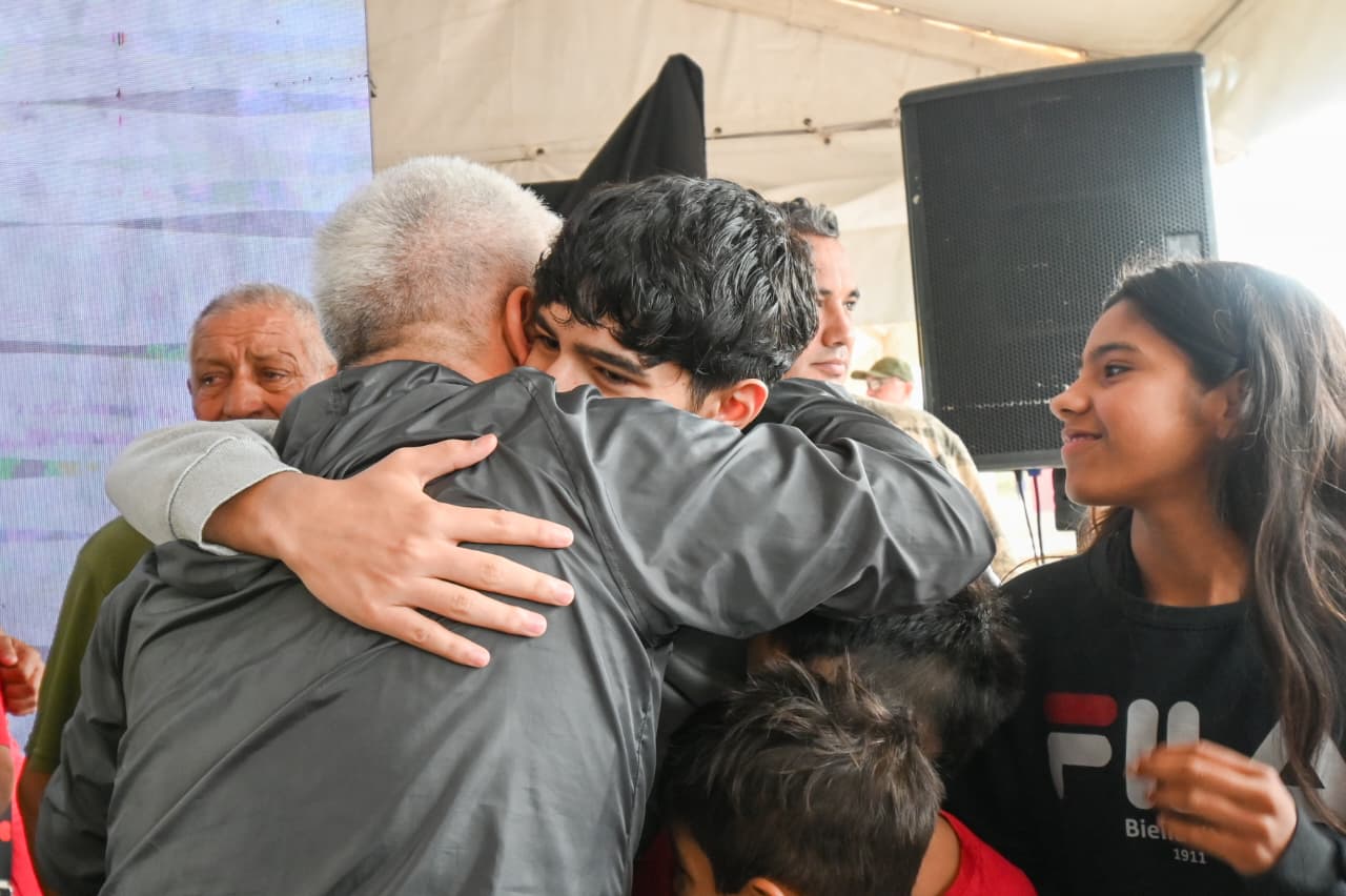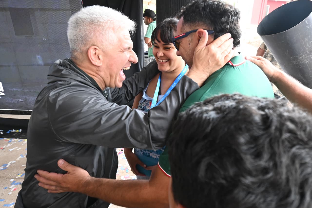 Llaves en manos temblorosas, abrazos por doquier, lágrimas, camiones rebalsados de cocinas, heladeras y muebles, brindis y fotos en un acto desbordado de emociones en Juana Koslay.