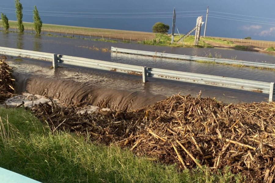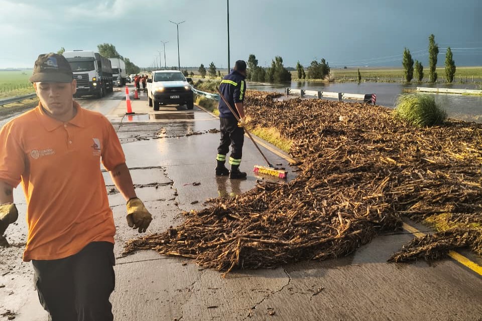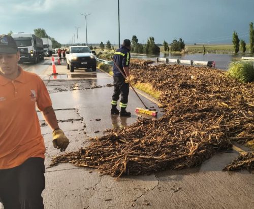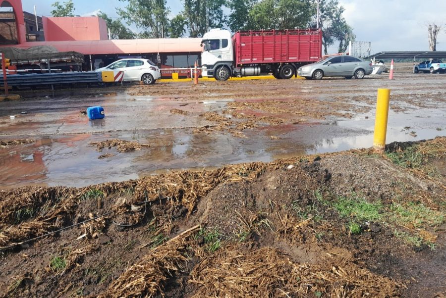 “En un periodo muy corto de tiempo, la caída de agua se intensificó enormemente, lo que provocó que desde los campos aledaños a la ruta y a la estación de peaje comenzara a drenarse agua con diversos elementos: desechos de siembras, dispositivos de cobertura de la producción, cañas de maíz, hojas, chalas. Todo fue arrastrado con barro, tapando las alcantarillas de la zona que deben evacuar el agua de lluvia”, describió.
