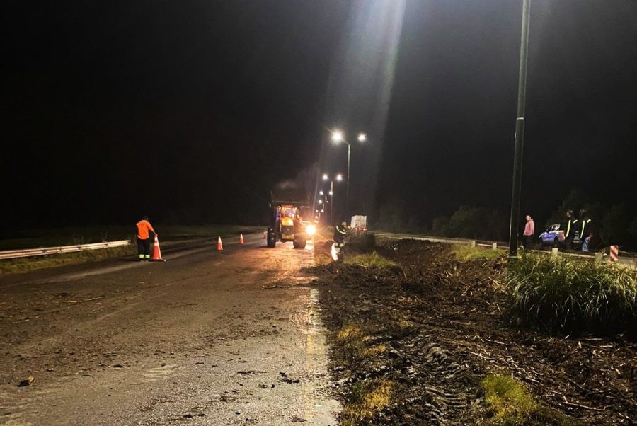 El funcionario indicó que la circulación se encuentra normalizada, no obstante, por la presencia de personal y maquinaria que siguen con las tareas de limpieza a lo largo de la vía se solicita a los usuarios circular con extrema precaución.