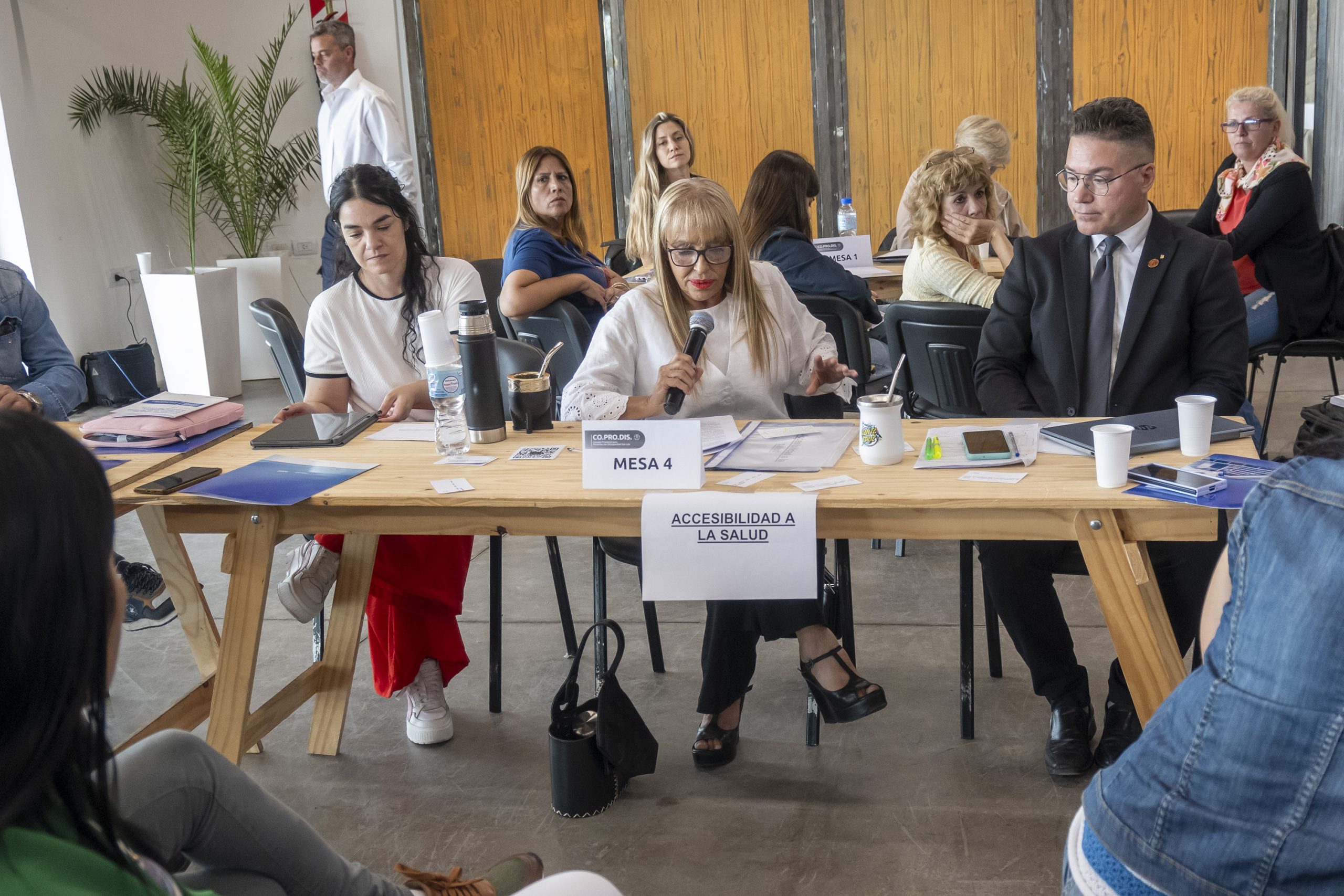 Luego de la exposición se conformaron cuatro mesas de trabajo: Derechos, comunicación y control institucional; Inclusión laboral, producción y sistemas de apoyo: Educación, cultura, deporte y participación comunitaria, y Accesibilidad, infraestructura, apoyos técnicos y salud.