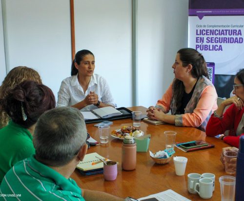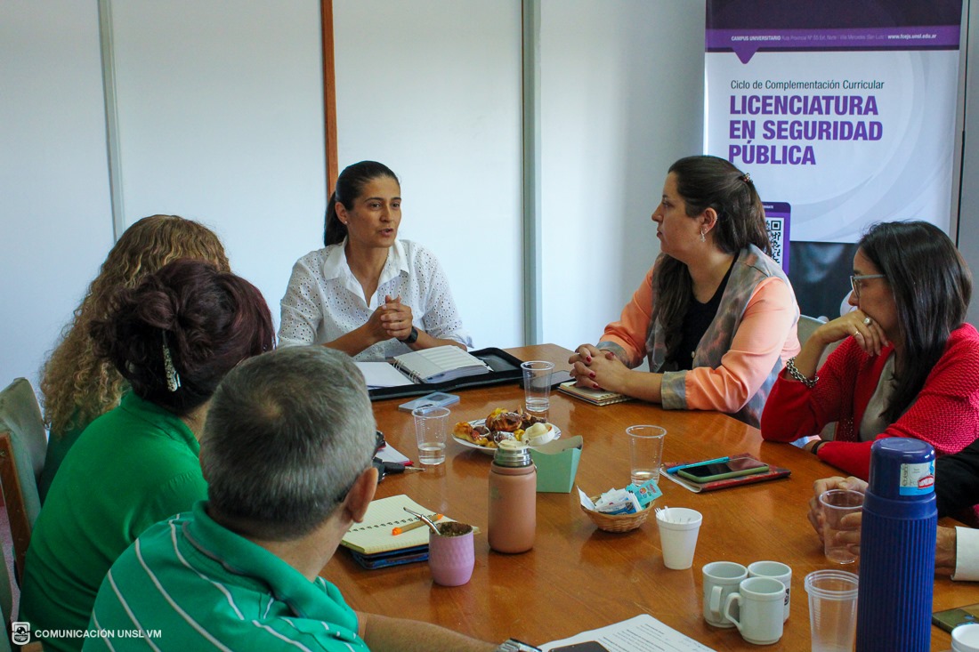 La ministro de Seguridad, Nancy Sosa, se reunió con autoridades y docentes de la Licenciatura en Seguridad Pública (LSP) de la Facultad de Ciencias Económicas, Jurídicas y Sociales (FCEJS) de Villa Mercedes, en el campus universitario, con el objetivo de realizar un balance del primer año de la propuesta académica. El encuentro permitió repasar los aspectos más relevantes del ciclo, así como escuchar las experiencias de los docentes y conocer la respuesta que tuvieron los estudiantes a lo largo del año.
