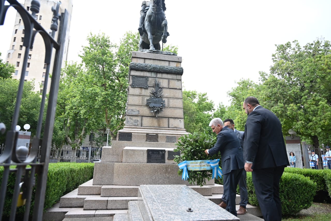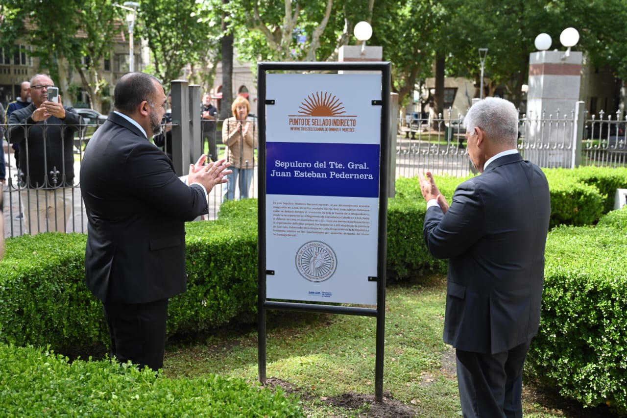 Finalizado el oficio religioso, las autoridades se trasladaron nuevamente a la plaza Pedernera, donde depositaron ofrendas florales en el sepulcro del general Juan Esteban Pedernera, en homenaje al héroe de la independencia. Allí, además, se descubrió el cartel que señaliza el sitio como ‘Sitio Sanmartiniano‘, reafirmando su valor histórico y cultural para la comunidad. En el acto estuvo presente el ministro de Turismo, Juan Álvarez Pinto.
