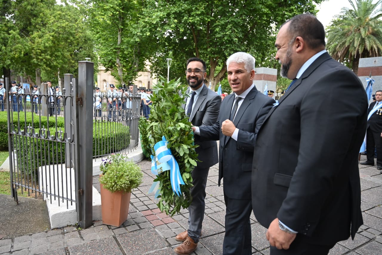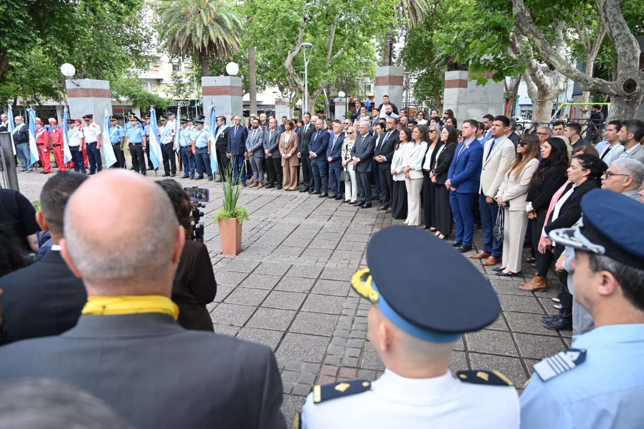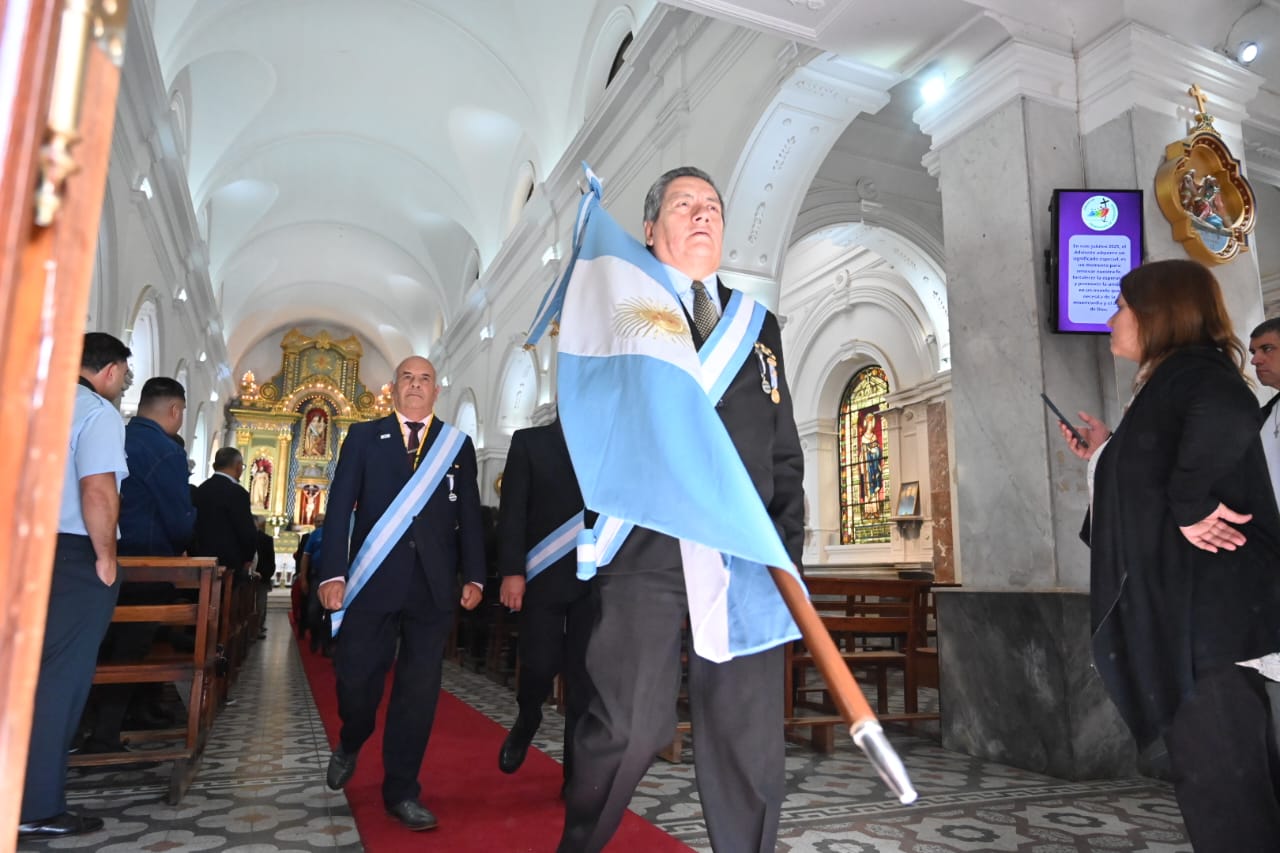 Previo al oficio religioso, se llevó adelante el izamiento de la Bandera Argentina en la plaza Pedernera, acompañado por la Banda ‘Teniente Manuel Félix Origone’ de la V Brigada Aérea. Luego, ingresaron al templo las autoridades, seguidas por las escoltas de la Base Militar, la Policía de la Provincia, Bomberos del cuartel ‘El Fortín’, Defensa Civil, la agrupación de Veteranos de Malvinas y la bandera de la Policía Federal, conformando un marco solemne y profundamente simbólico para el acto central.