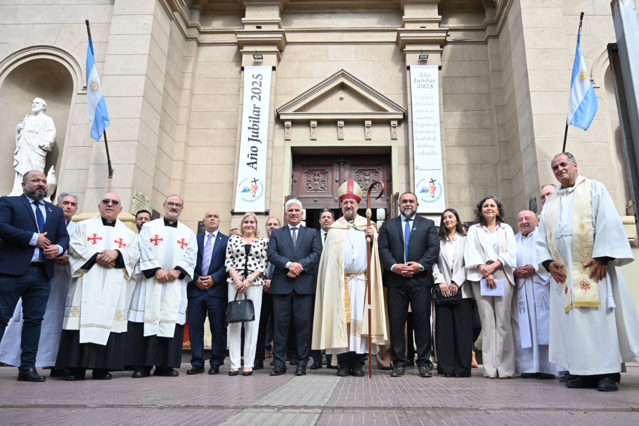 El gobernador Claudio Poggi asistió a la misa que se desarrolló en la Iglesia Nuestra Señora de la Merced, acompañado por su esposa, Sandra Correa, junto con el intendente Maximiliano Frontera. El obispo, Monseñor Barba, invitó a la comunidad a “construir una sociedad de manos tendidas y de respeto”.