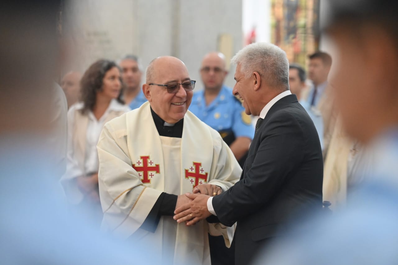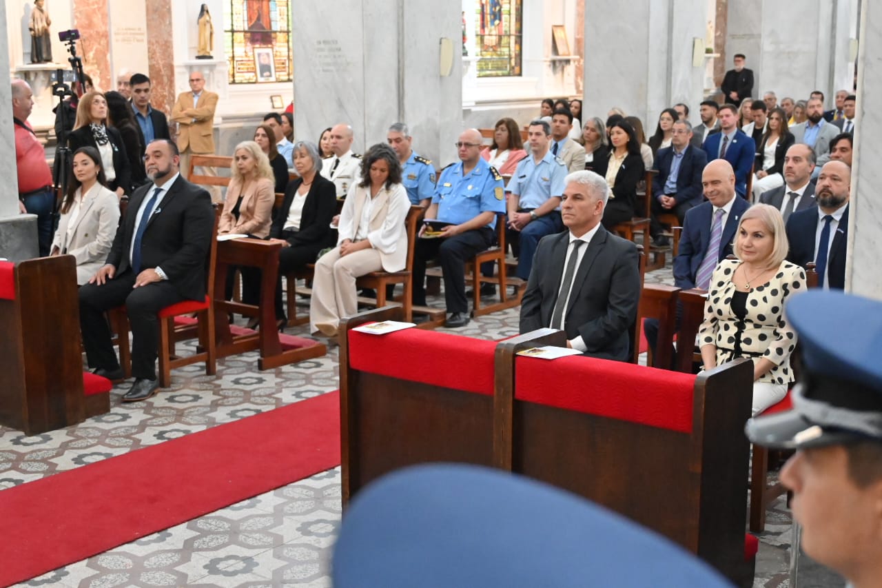 El gobernador Claudio Poggi asistió acompañado por su esposa, Sandra Correa, junto al intendente, Maximiliano Frontera, y autoridades provinciales y municipales. También participaron representantes de instituciones civiles y Fuerzas de Seguridad, en una ceremonia que combinó fe, identidad y memoria.