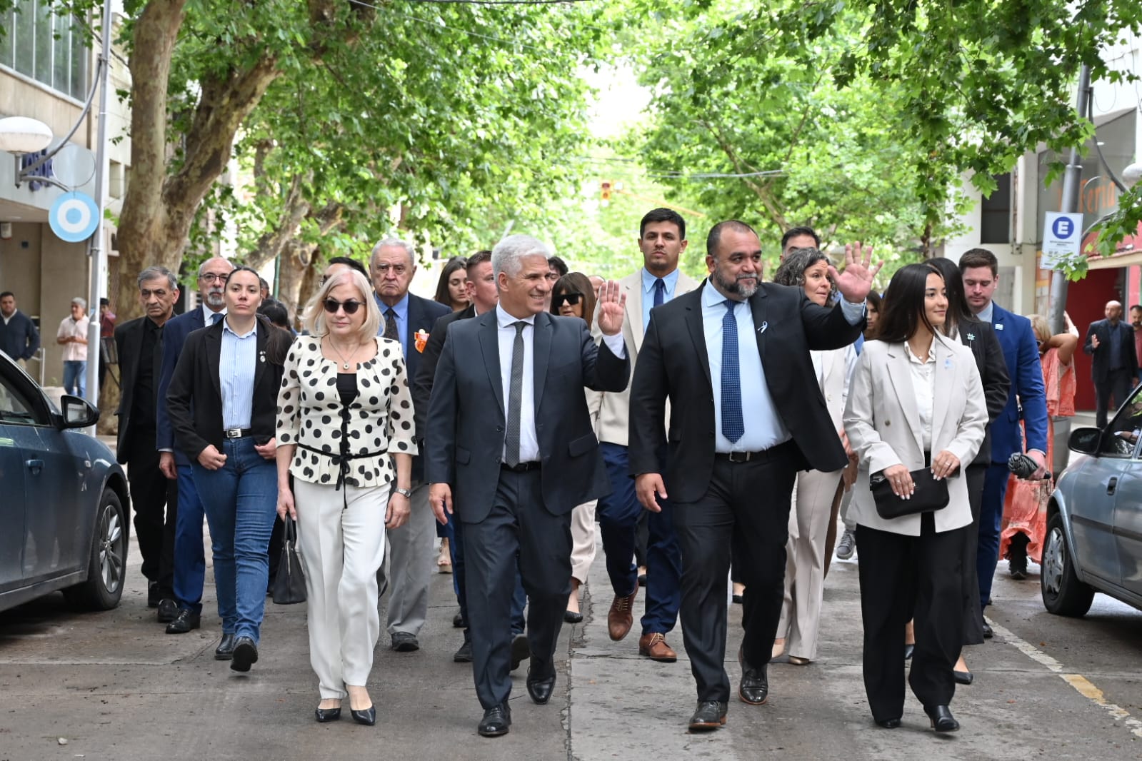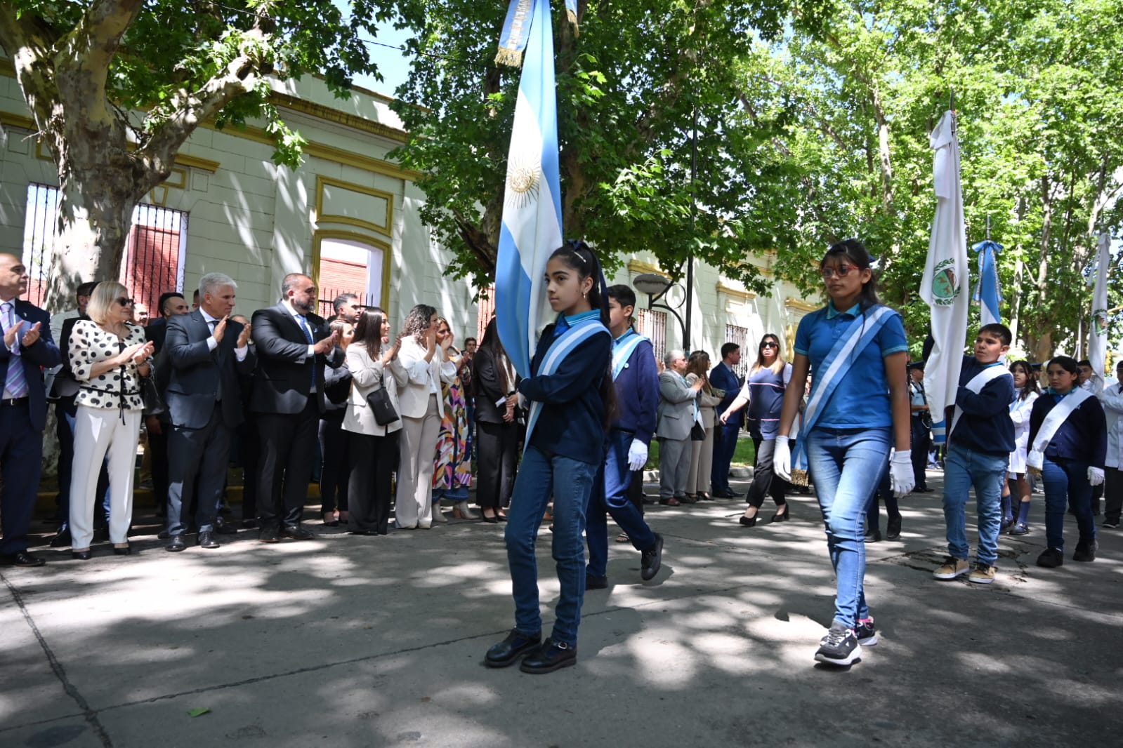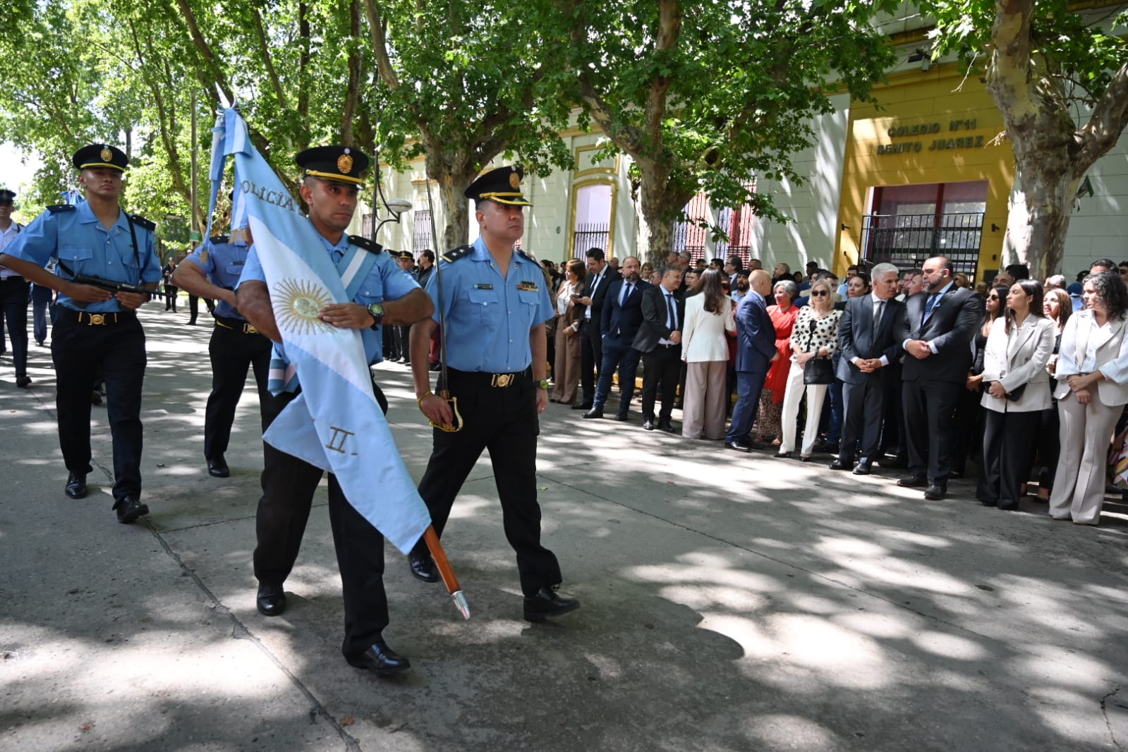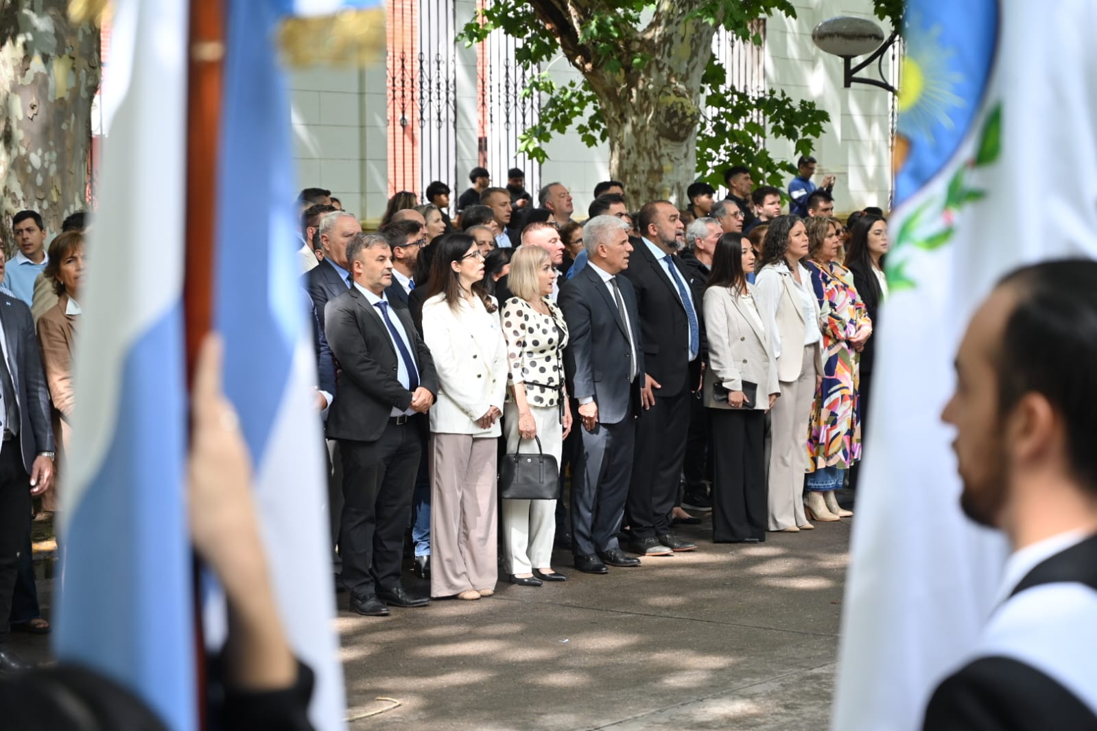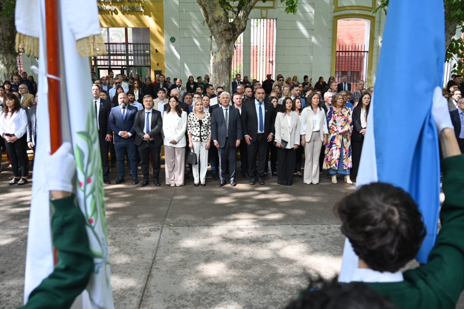 El acto central por el 169° aniversario de Villa Mercedes se desarrolló sobre calle Ayacucho, entre Belgrano y Balcarce, frente al Colegio de Comercio ‘Benito Juárez’ y la plaza Juan Crisóstomo Lafinur, con la presencia de autoridades locales, representantes de los poderes legislativos, instituciones intermedias, delegaciones escolares y una numerosa concurrencia de vecinos.