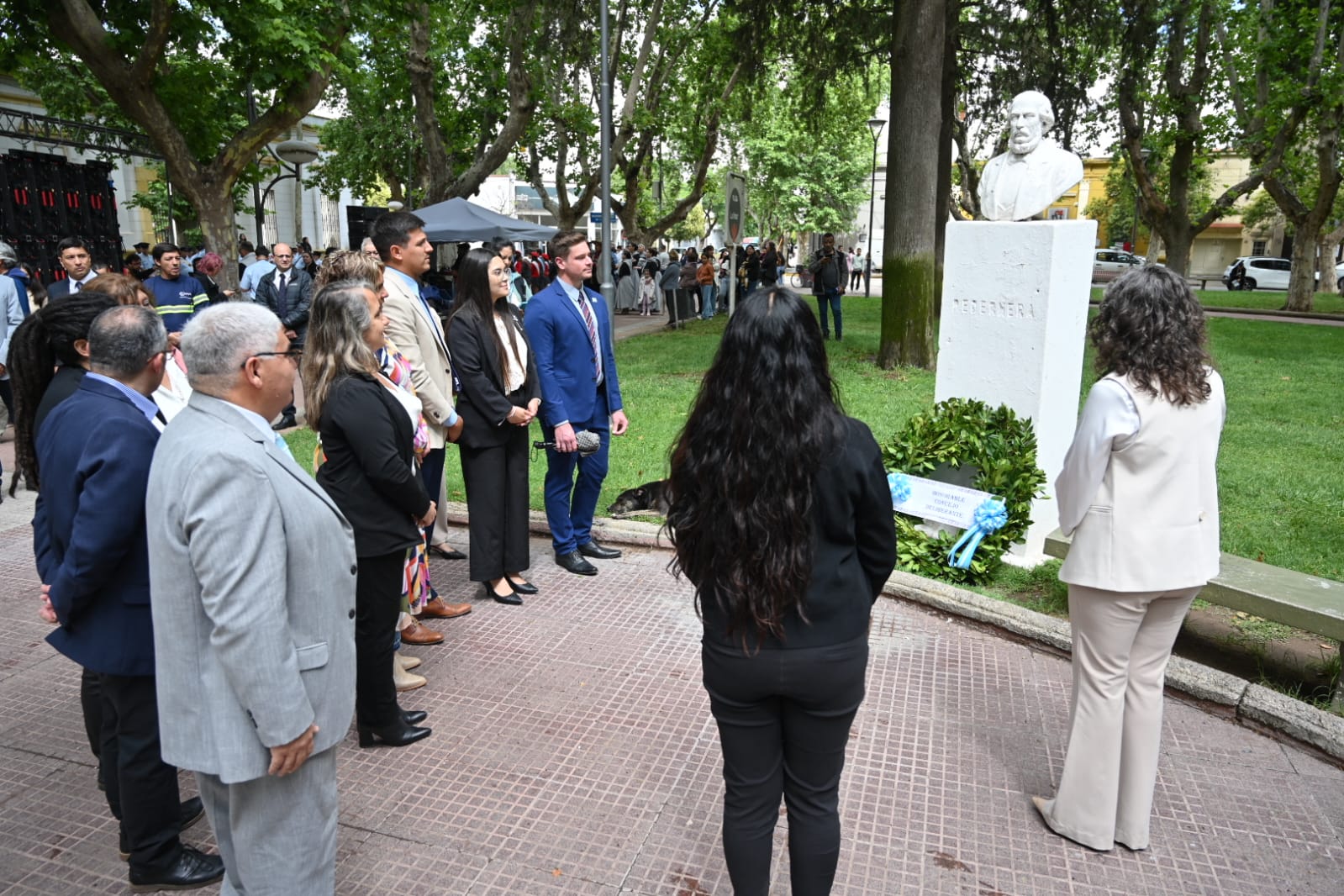 Como parte del homenaje a la historia local, se colocaron ofrendas florales al pie de los bustos del gobernador Justo Daract; del filósofo y pensador Juan Crisóstomo Lafinur, y del general Juan Esteban Pedernera, héroe de la Independencia y figura central en la historia mercedina. Además, se proyectó un video institucional que sintetizó, de forma alegórica, el recorrido histórico, el presente pujante y los desafíos futuros de la ciudad.