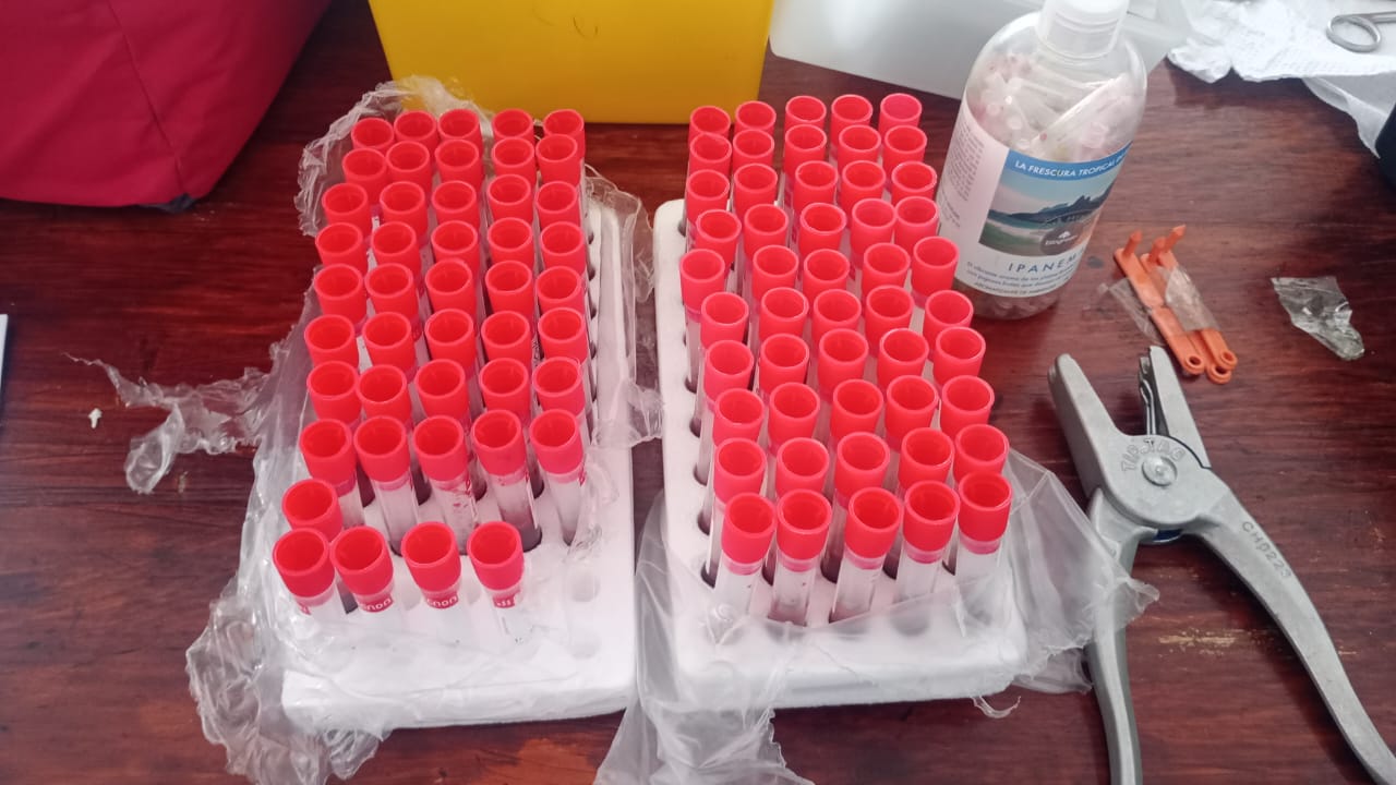 Finalmente, en el establecimiento La Nona, ubicado en el paraje El Descanso de la localidad de Villa Larca, se desarrollaron actividades de caravaneo y sangrado para el diagnóstico de brucelosis en 90 cabras y cinco chivatos. Además, se realizaron tratamientos sanitarios en un chivito con infección umbilical y en una cabra que presentaba miasis.