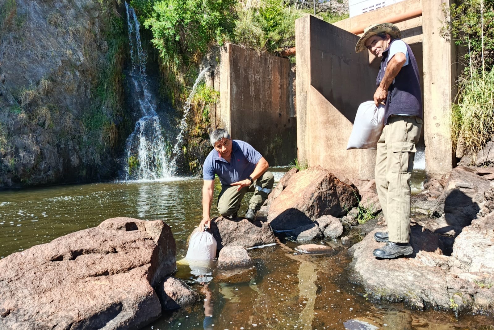 El equipo de la Estación de Piscicultura de La Florida confirmó la primera siembra de alevines de trucha en tres puntos en el río Pancanta, y en el río Grande, en su desembocadura próxima al dique Esteban Agüero.