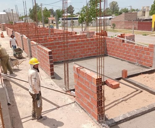El proyecto también registra avances en las bases sanitarias y de cloacas, y continúa la elevación de mampostería y la ejecución de contrapisos en el sector de consultorios. Ya se observan definidos los distintos espacios interiores gracias al progreso en la construcción de las estructuras y la elevación de paredes de ladrillo hueco. Los equipos trabajan en la colocación de columnas y armaduras metálicas, junto con la nivelación y el llenado de hormigón en los pisos.