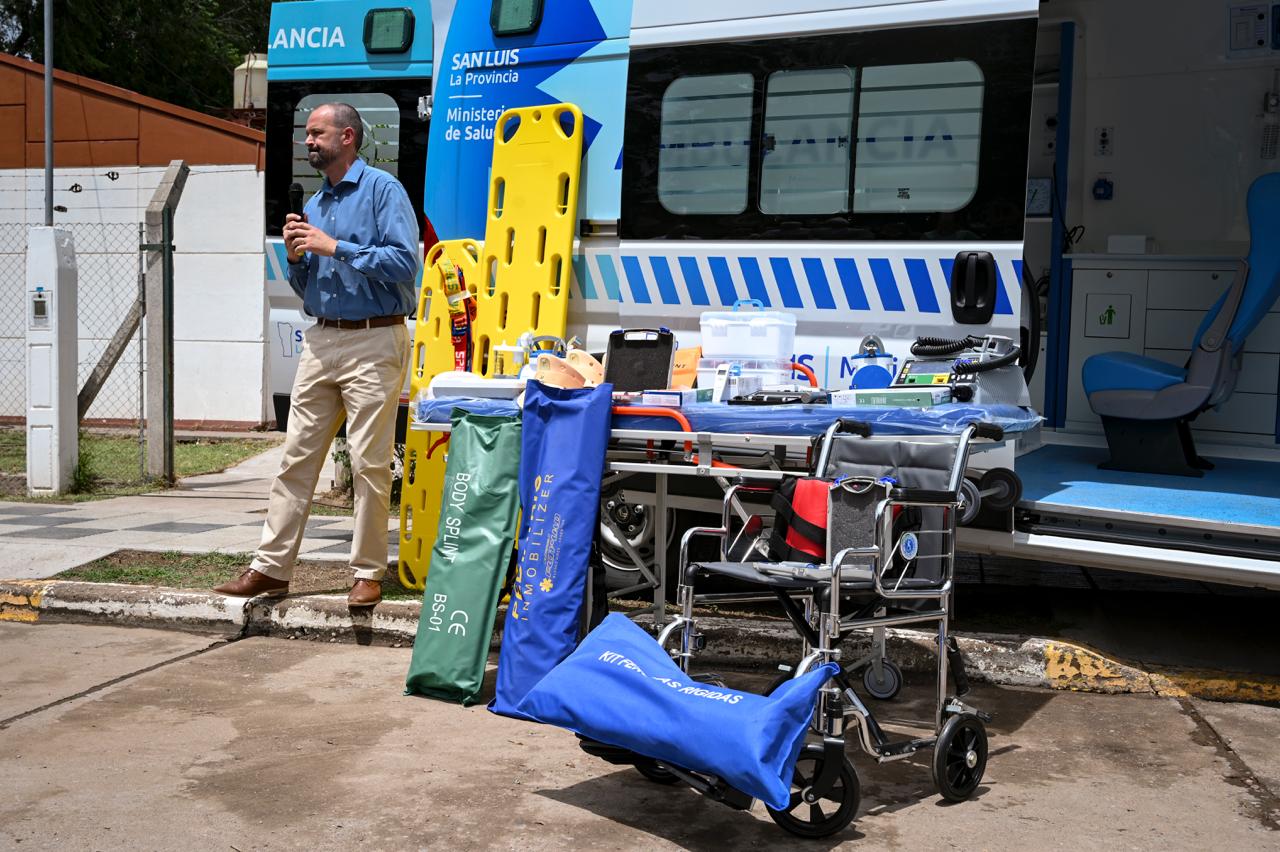 El director de Infraestructura Hospitalaria, Luciano Rambaudi, brindó detalles sobre el aparato tecnológico con el que cuenta la ambulancia y aseguró que la inversión que hizo el Gobierno en ella fue aproximadamente $130 millones. “La ambulancia fue fabricada bajo los estándares nacionales cumpliendo con toda la normativa y equipada con la alta tecnología que así lo requiere. Esto va a beneficiar a la población local para dar una mejor respuesta ante una emergencia o también para acudir a un vecino que no se sientan bien y no se puede trasladar hacia el Centro de Salud o que se encuentra en una ubicación lejana y no tiene medios para venir”, señaló el funcionario.