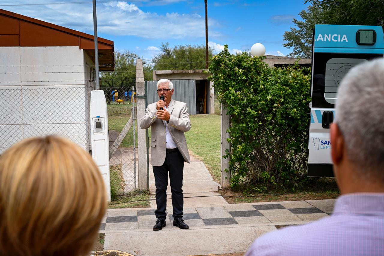 El gobernador Claudio Poggi visitó este martes la localidad de Navia, donde encabezó la entrega de una ambulancia de mediana complejidad al Centro de Salud Nº98. De esta manera, la localidad ya cuenta con movilidad para realizar traslados y respuestas rápidas a emergencias sanitarias.