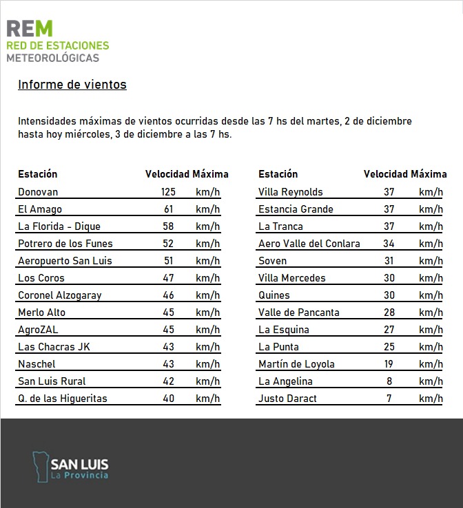 Si de viento hablamos, Donovan marcó un récord con ráfagas que soplaron a 125 kilómetros por hora, sumado a que la localidad estuvo octava en el ranking de lluvias. Para este miércoles, la Red de Estaciones Meteorológicas (REM) pronostica un día caluroso y a pleno sol.