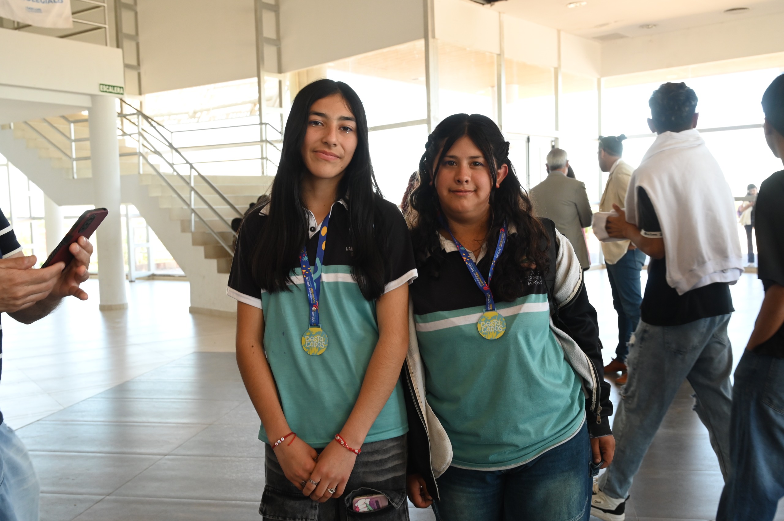 Las alumnas Milagros Pedraza (2° año) y Leticia Palacio (3° año) asisten a la Escuela N°409 de Bajo de Véliz, obtuvo el segundo lugar por una canción original e inédita, de género folclórico, íntegramente creada por los alumnos. “Ganamos una medalla en la categoría Canto. Se llama ‘Gatito del turista'”, contó Milagros, quien disfrutó mucho del acto de cierre. “Fue muy lindo compartir con otros chicos. Estamos muy contentos”, sumó su compañera, Leticia.