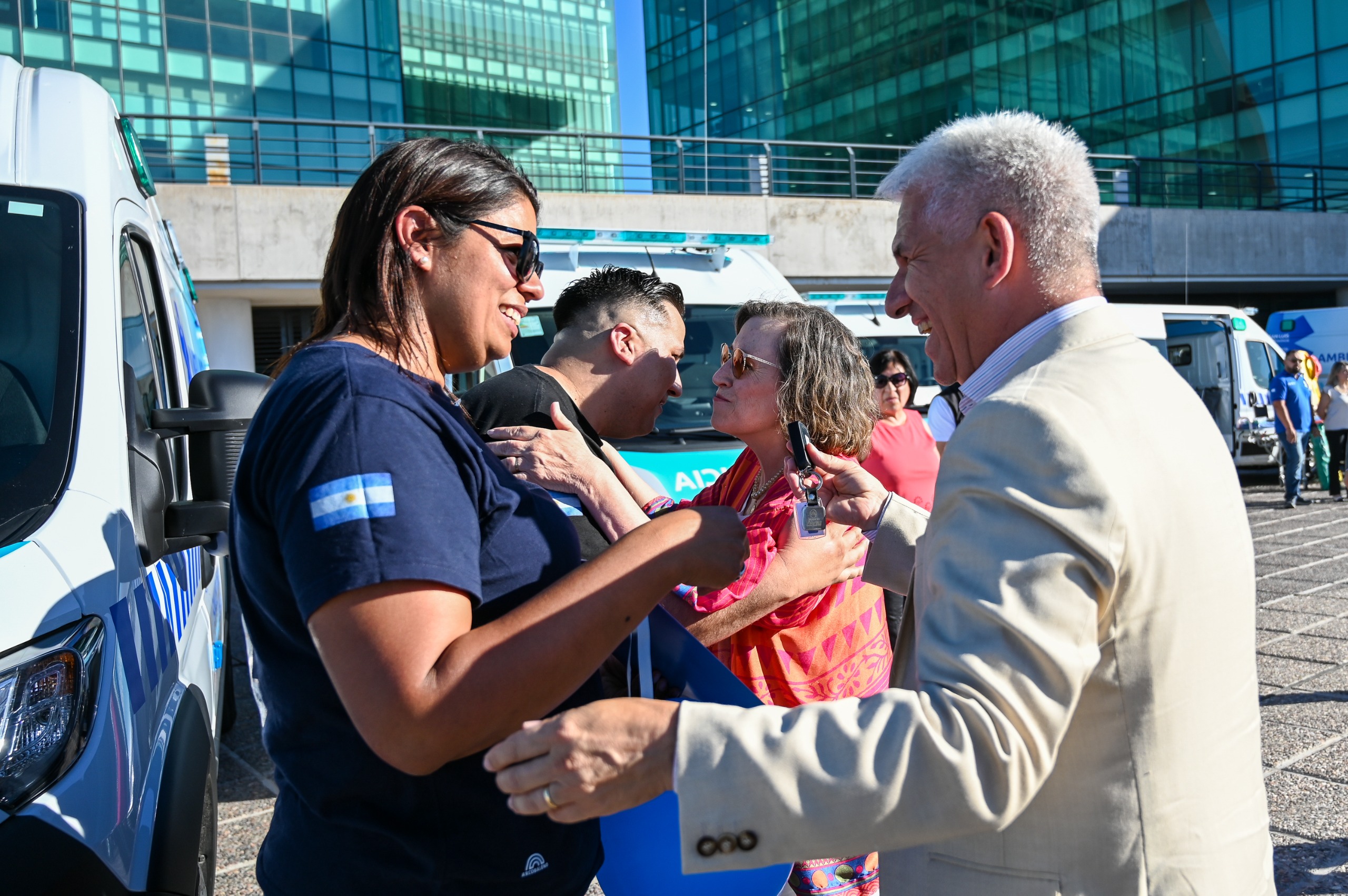 Uno a uno, el Gobernador entregó las llaves y documentación correspondiente a cada vehículo a los directivos de los hospitales y centros de salud. “Cada vehículo de mediana complejidad tiene un costo de $120 millones y los de alta complejidad $140 millones. Todos cuentan además con equipamiento de alta tecnología”, detalló Nigra, remarcando la importante inversión que realizó la Provincia para adquirir las ambulancias.