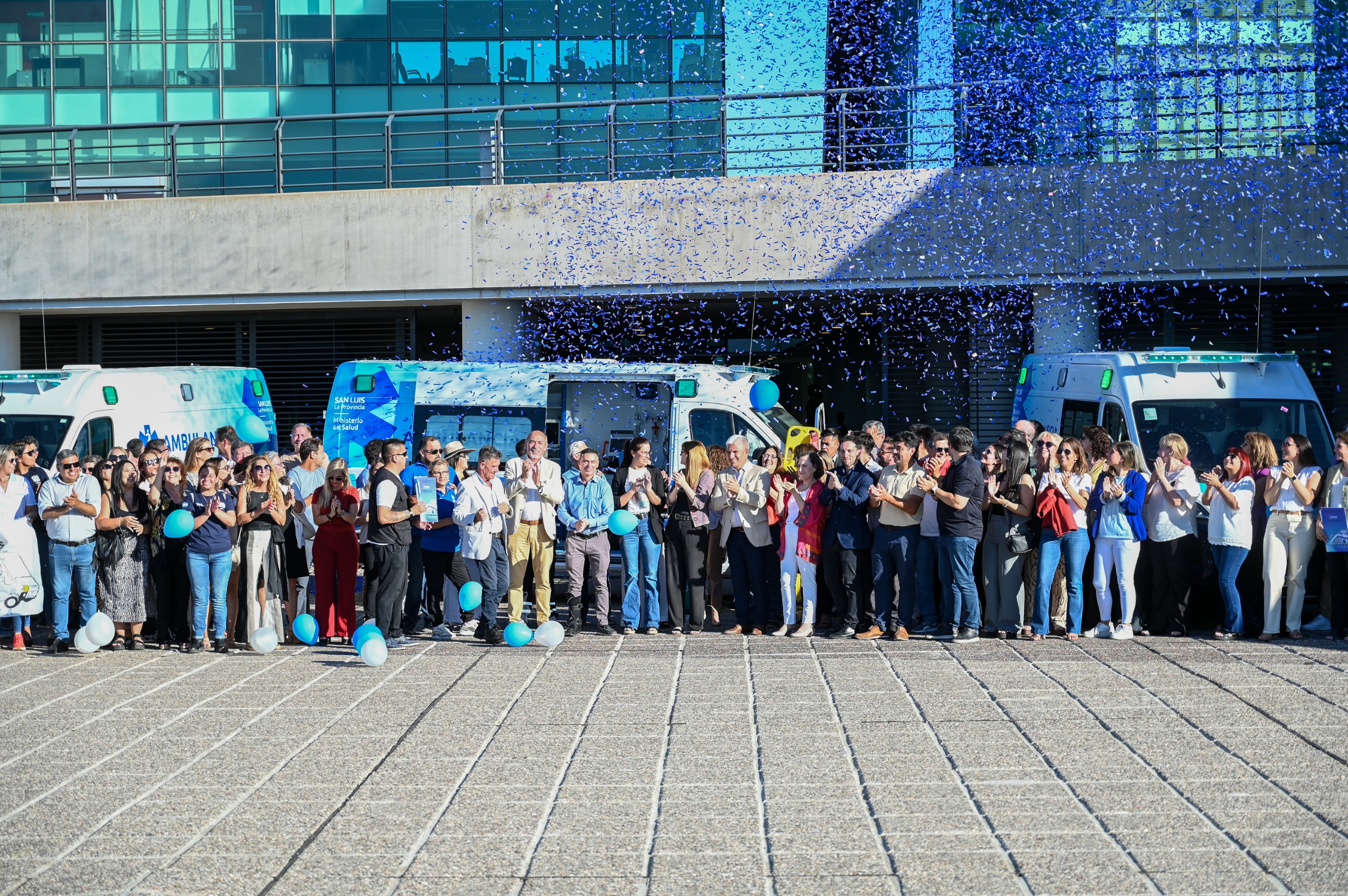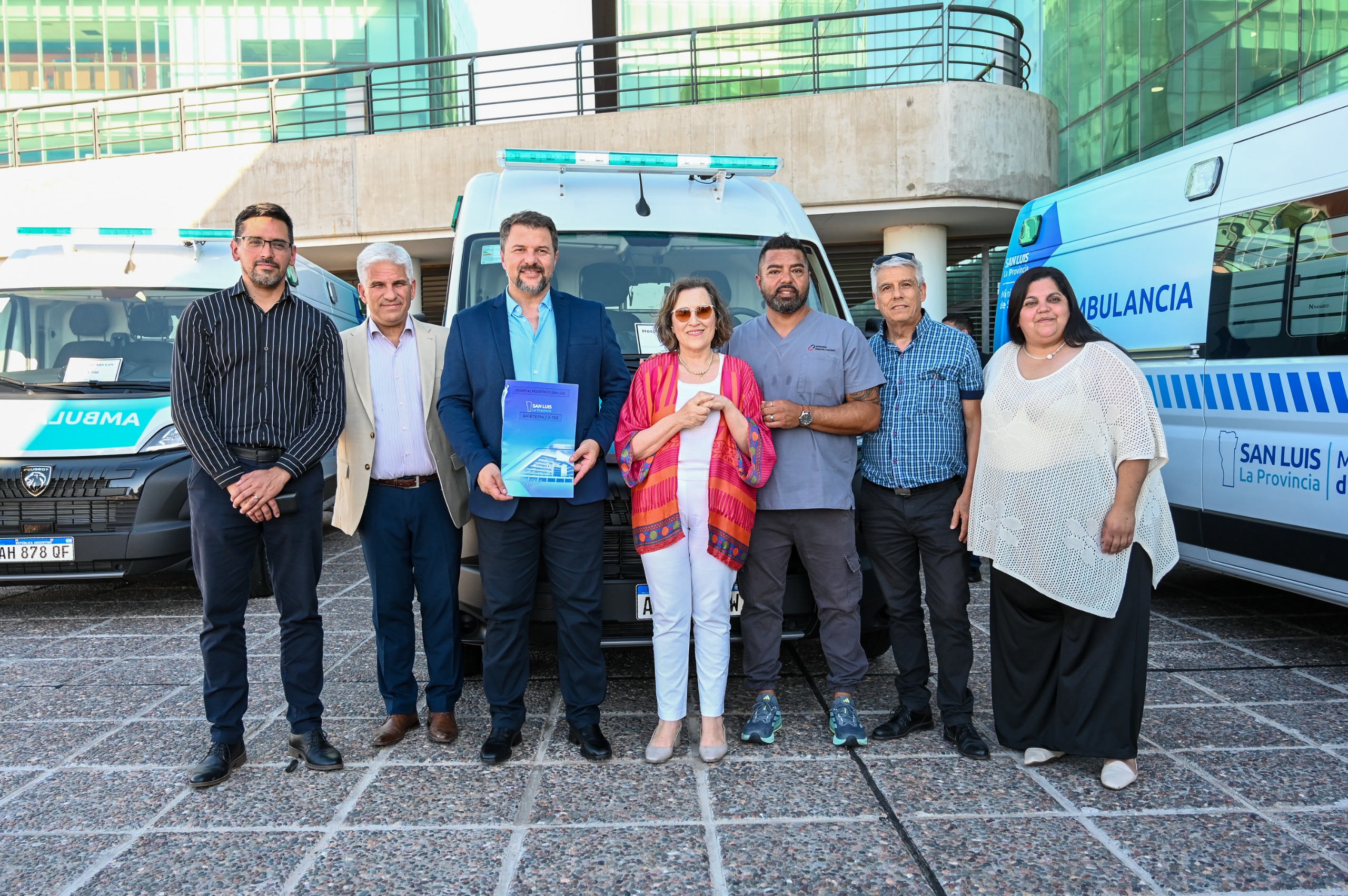 Poggi estuvo acompañado por la titular de la cartera sanitaria, Teresa Nigra. Además, participaron representantes del Hospital de Salud Mental, de los centros de atención primaria (CAPS) de La Calera y La Carolina, del Sistema de Emergencias Provincial (Sempro), del Hospital Pediátrico de San Luis y de la Maternidad Provincial ‘Teresita Baigorria’, todas instituciones que recibieron ambulancias.