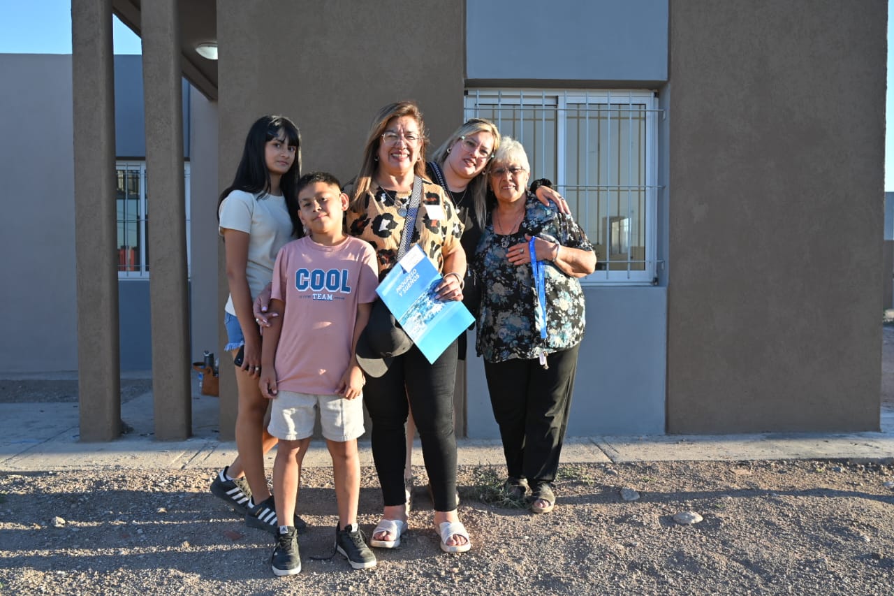 Las familias, verdaderas protagonistas de la jornada, subieron al escenario con carteles, emoción y lágrimas contenidas. Con la carpeta en la mano y la llave apoyada en el pecho, el sueño de la casa propia nuevamente tomó forma en la ciudad de San Luis.