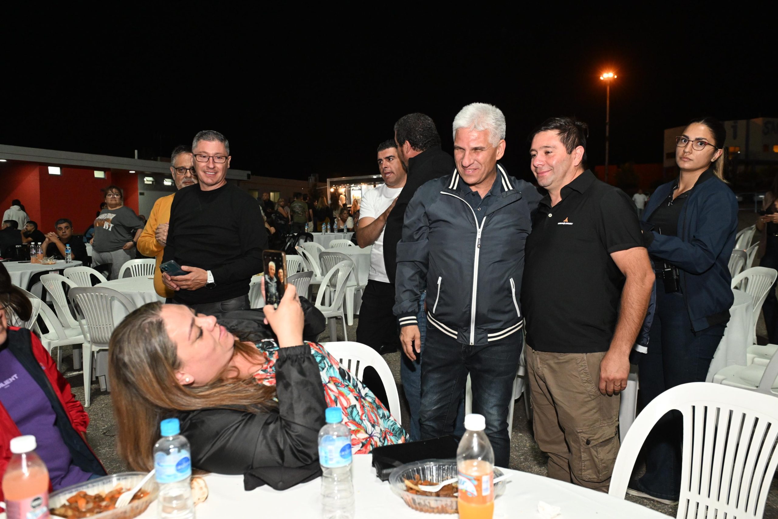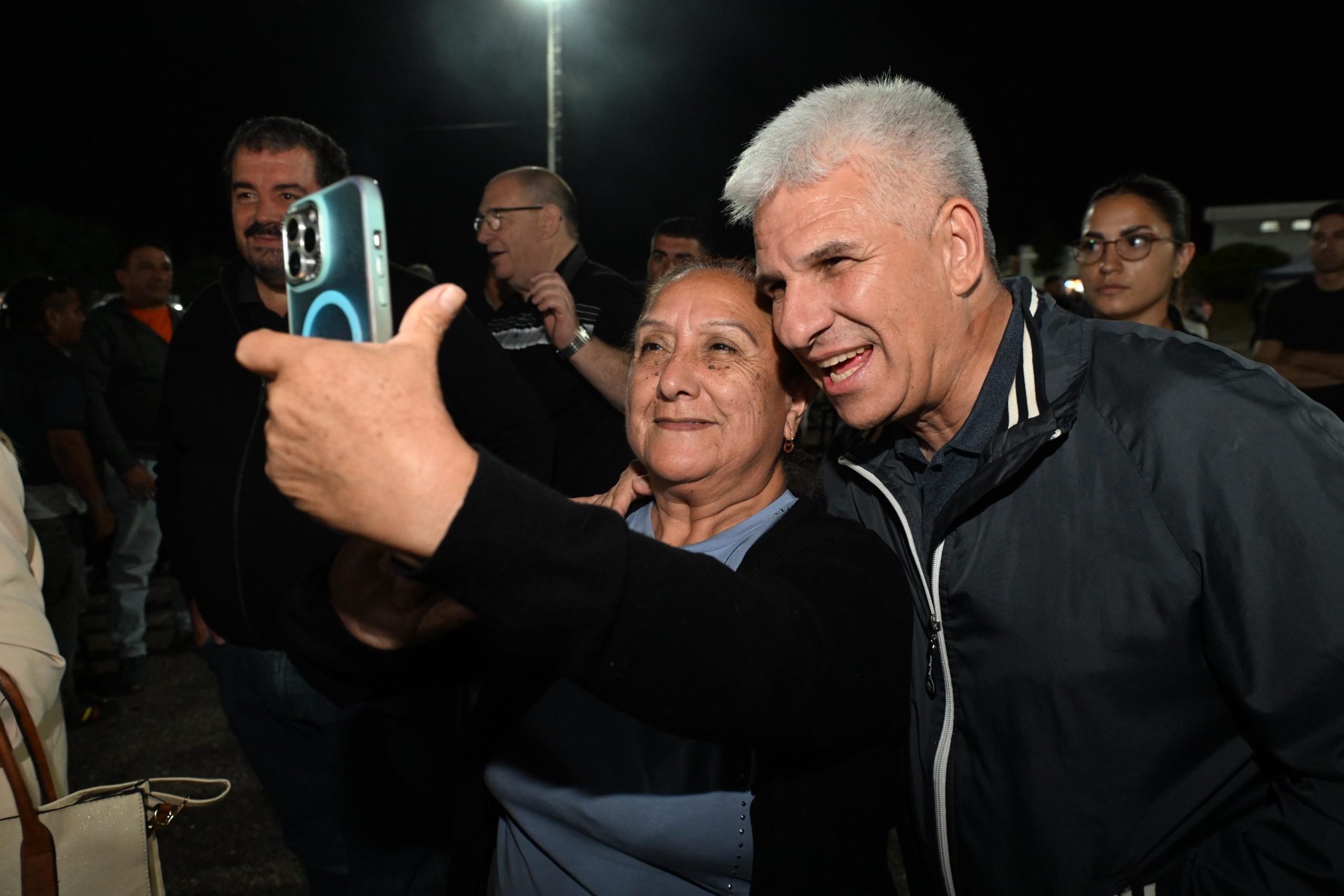 El gobernador Claudio Poggi llegó al predio pasadas las 23:00 para saludar a cada uno de los trabajadores que estaban ubicados en las mesas que coparon boxes. Lo acompañaron su esposa Sandra Correa; el vicegobernador Ricardo Endeiza y el intendente electo de Potrero, Ignacio Olagaray, entre otras autoridades.