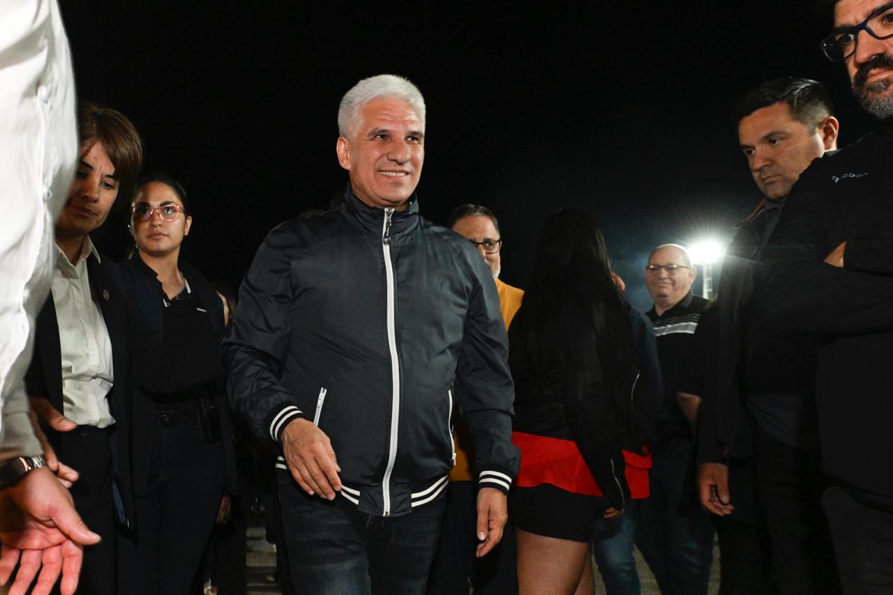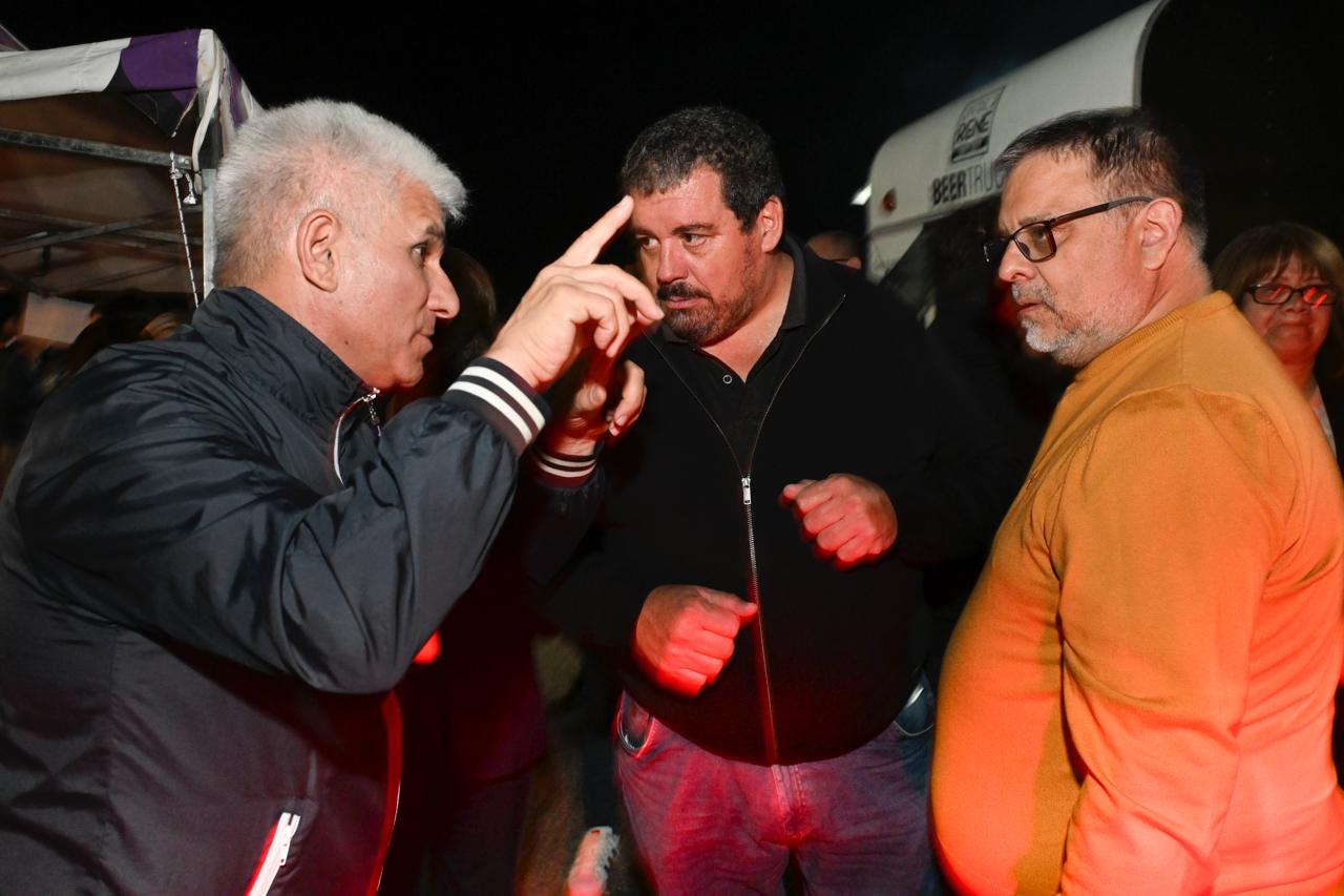 El gobernador Claudio Poggi llegó al predio pasadas las 23:00 para saludar a cada uno de los trabajadores que estaban ubicados en las mesas que coparon boxes. Lo acompañaron su esposa Sandra Correa; el vicegobernador Ricardo Endeiza y el intendente electo de Potrero, Ignacio Olagaray, entre otras autoridades.