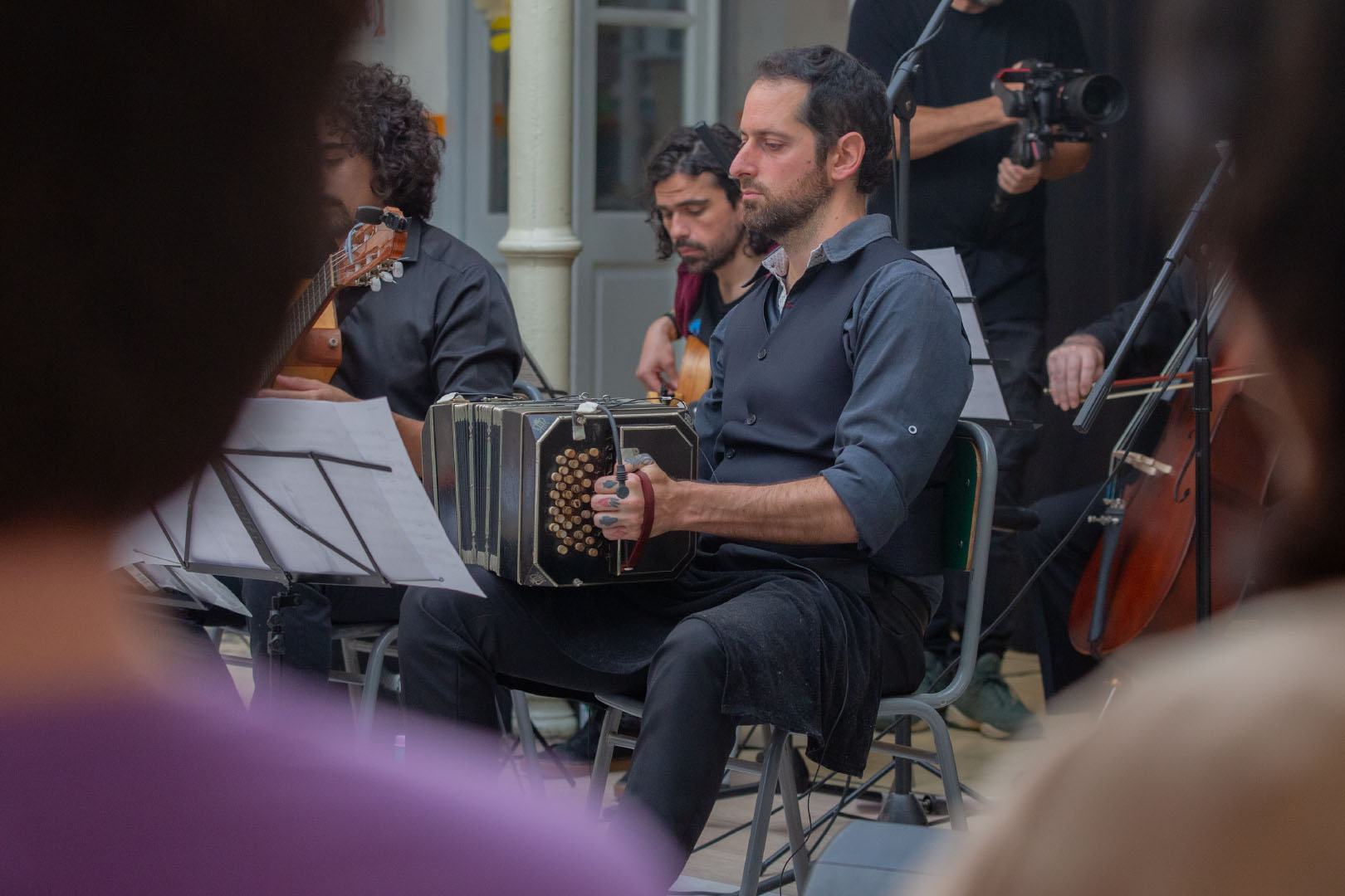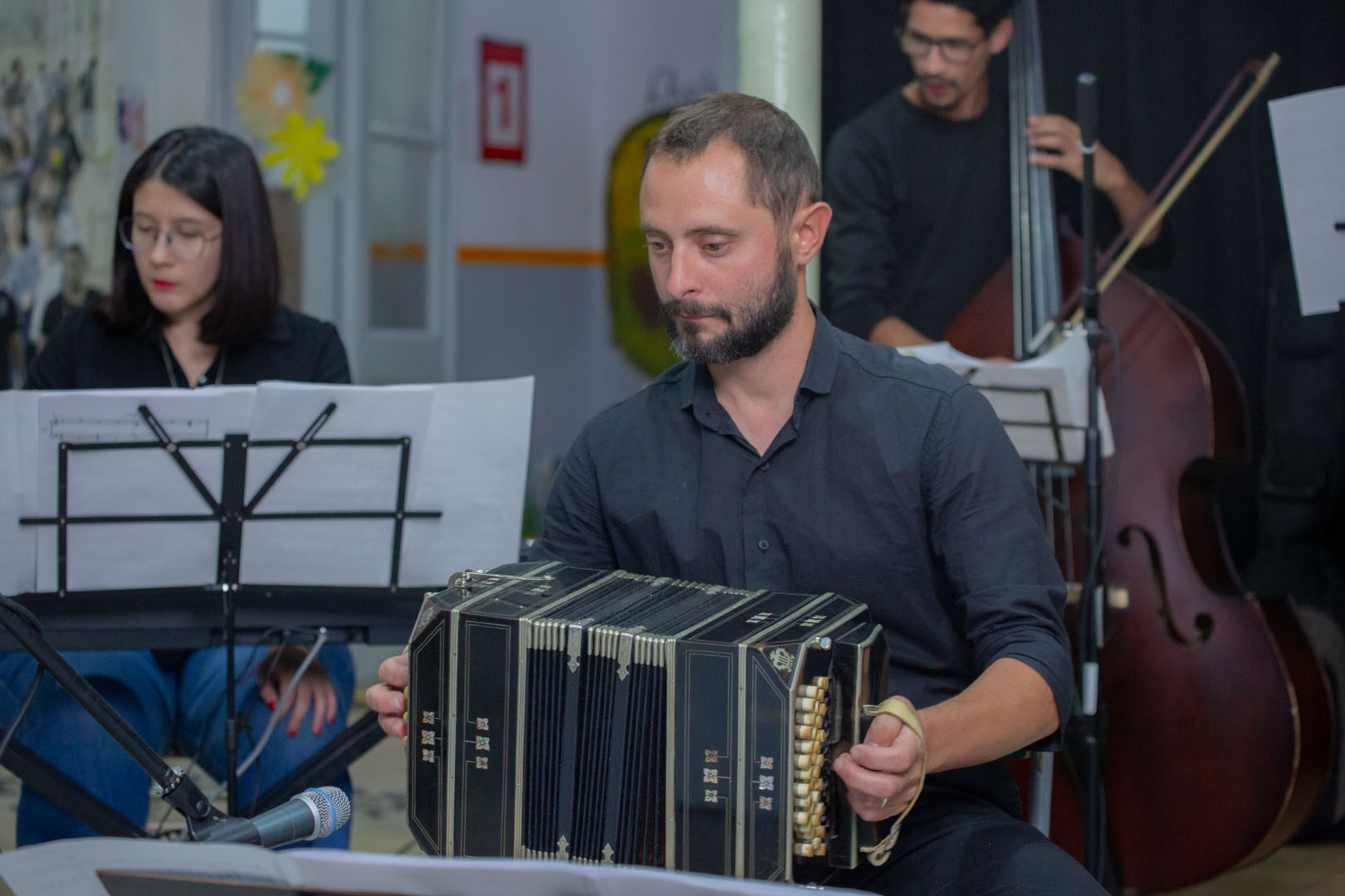 “Como cierre de actividades de los ensambles, aprovechamos este espacio de Micrófono Abierto y organizamos una milonga en vivo junto al Ensamble Mayor y la Orquesta Atípica. Estamos muy contentos, salió muy bien”, expresó el bandoneonista y director.